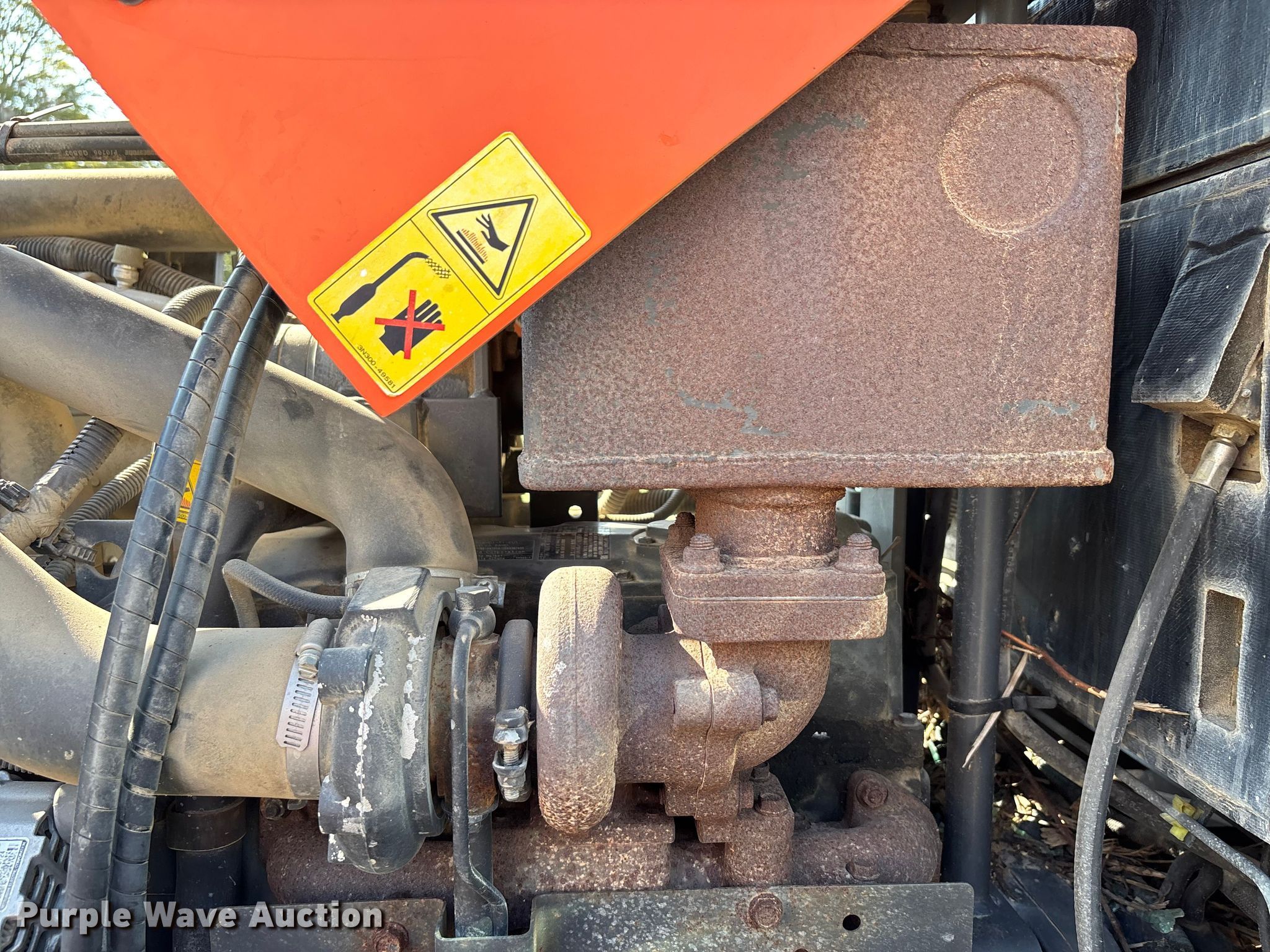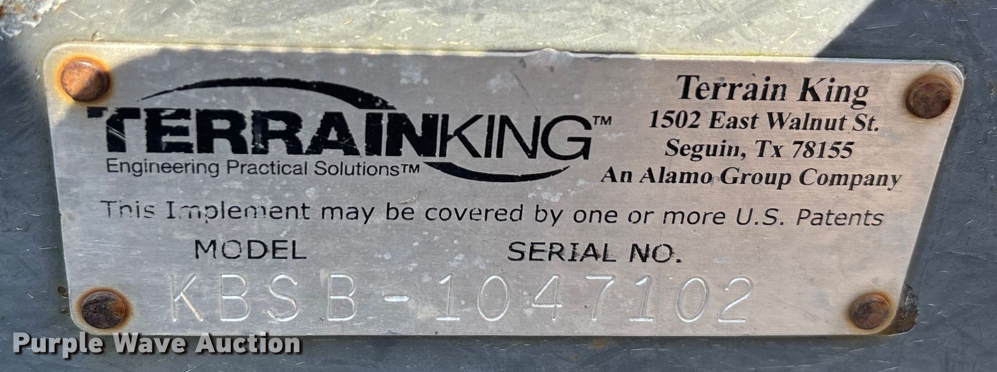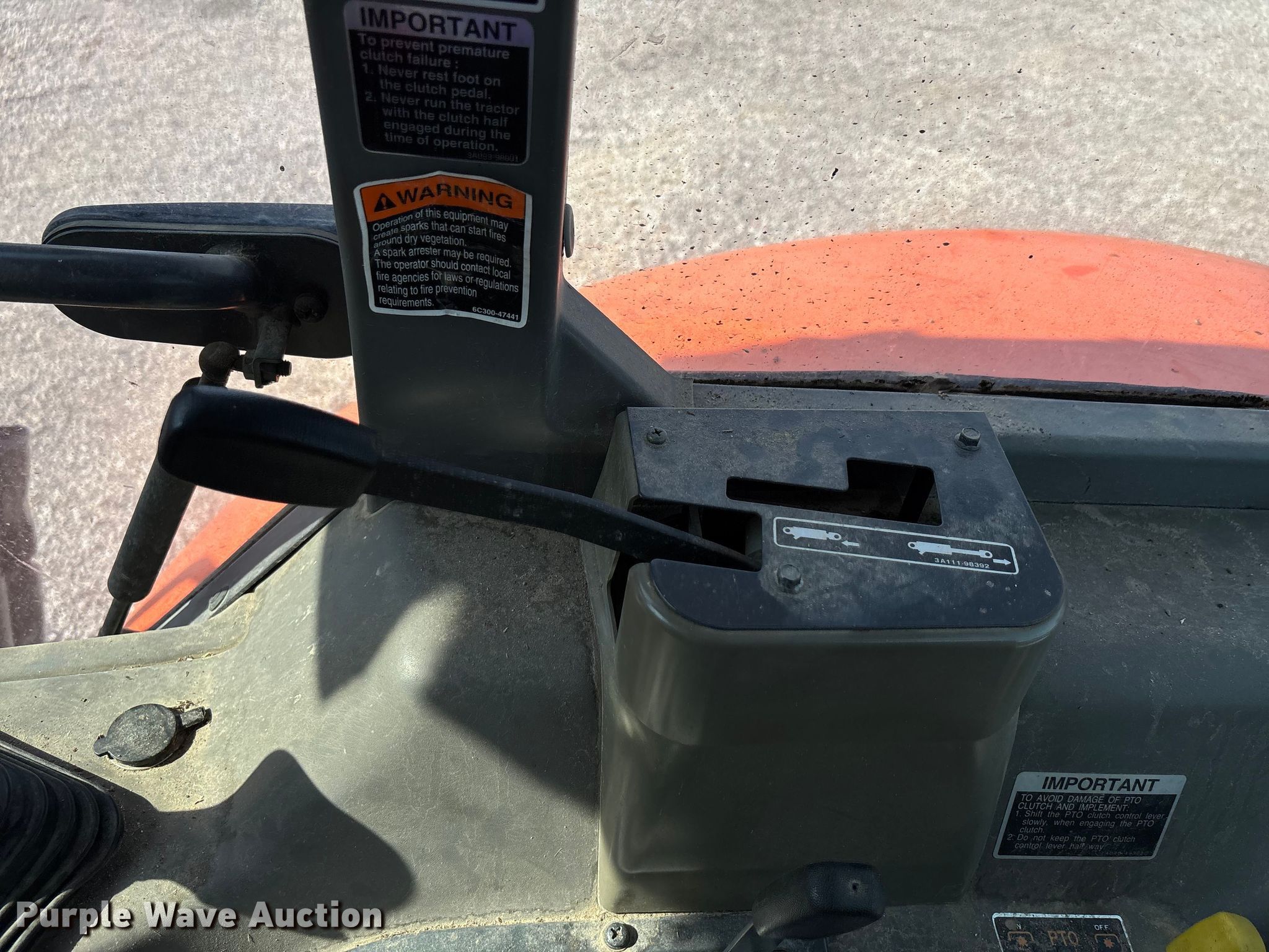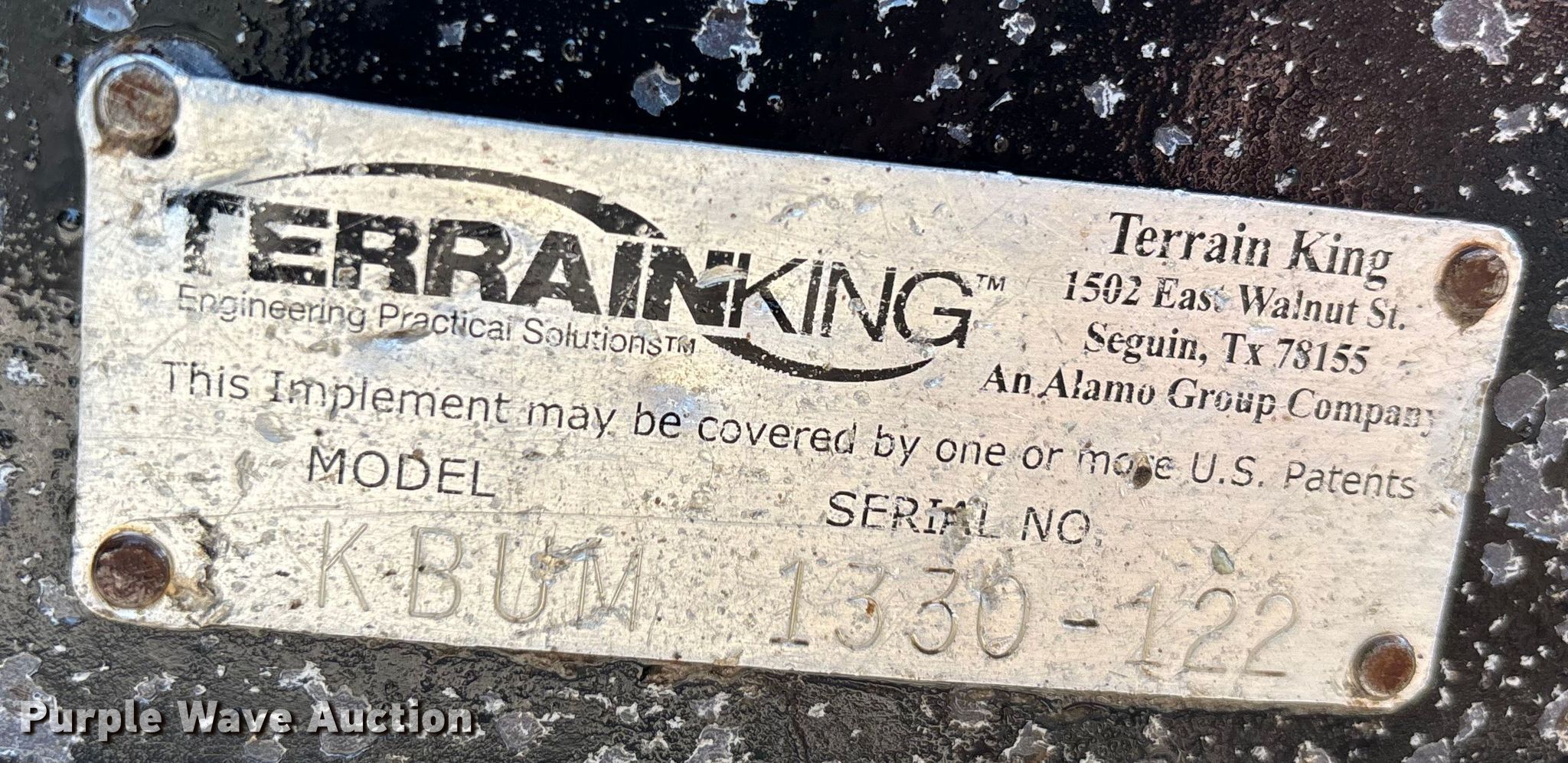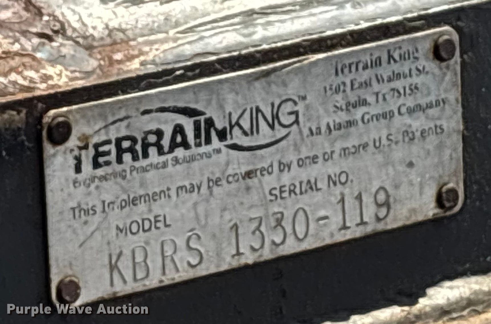 Kubota M108S MFWD tractor. Hours: 2,903 on meter. Engine Kubota V3800-di-ti-et01, Displacement: 3.8L, Cylinders: 4, Fuel type: Diesel. Transmission Synchro, 24F - 24R, Left hand reverser, Differential lock. Operators station AC, Heat. Features PTO: 540, Three point, Seven pin outlet, Hydraulic remote sets Rear: 1, Terrain King KB2200 side boom mower Serial: 1330-119, Width: 60", KBSB circular saw cutter Serial: 1047102, Width: 90". Tires Front: 13.6R24, Rear: 18.4R34, Wheel weights: 1, Wheelbase: 96". Notes Roof panel missing, Exhaust issues, bent, Hydraulic boom cylinder seal issues, leaks. Pontotoc County District 3. Stonewall, OK 74871