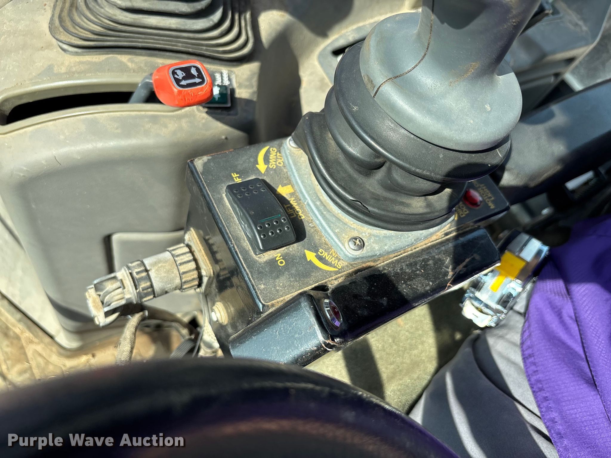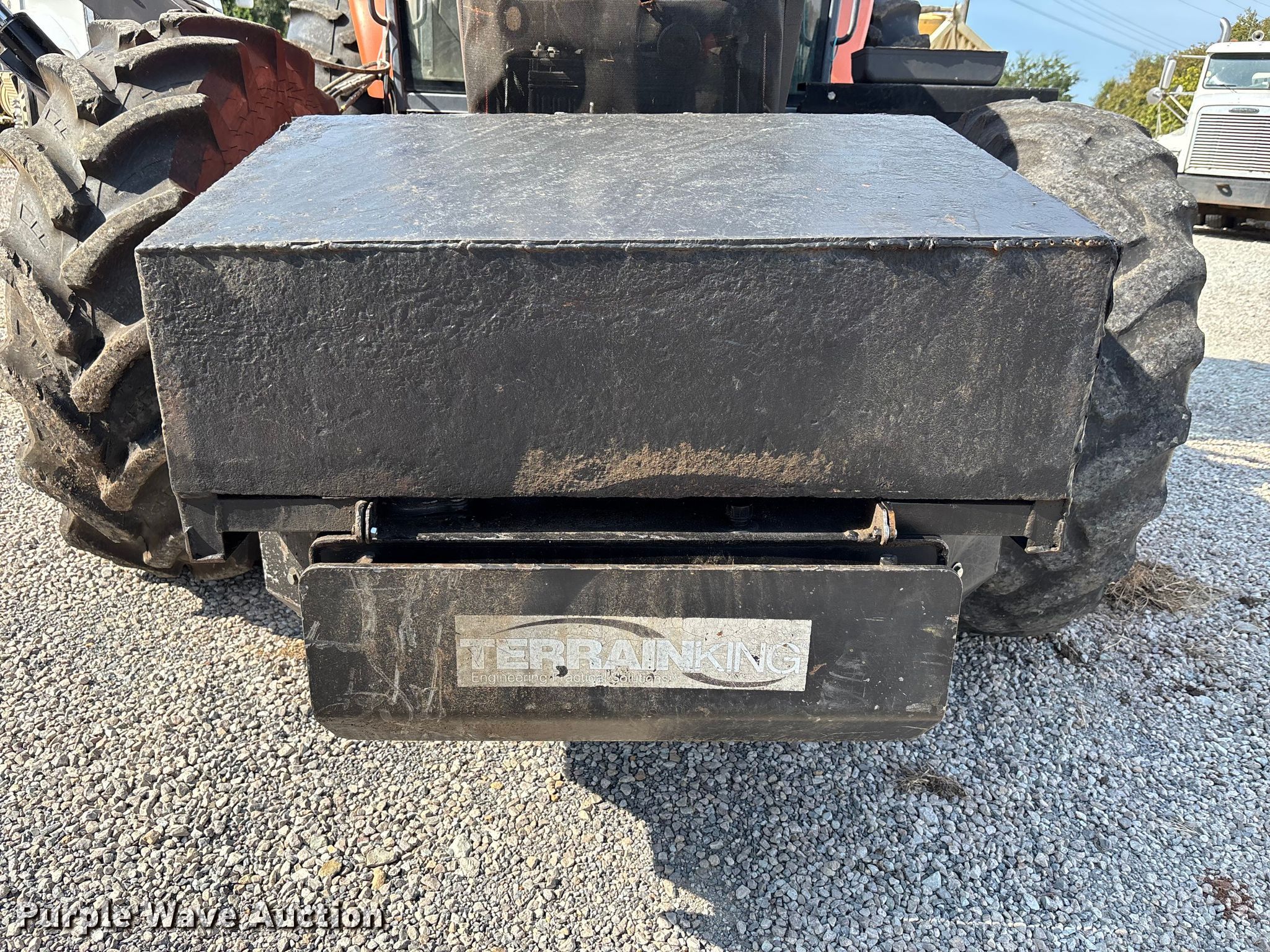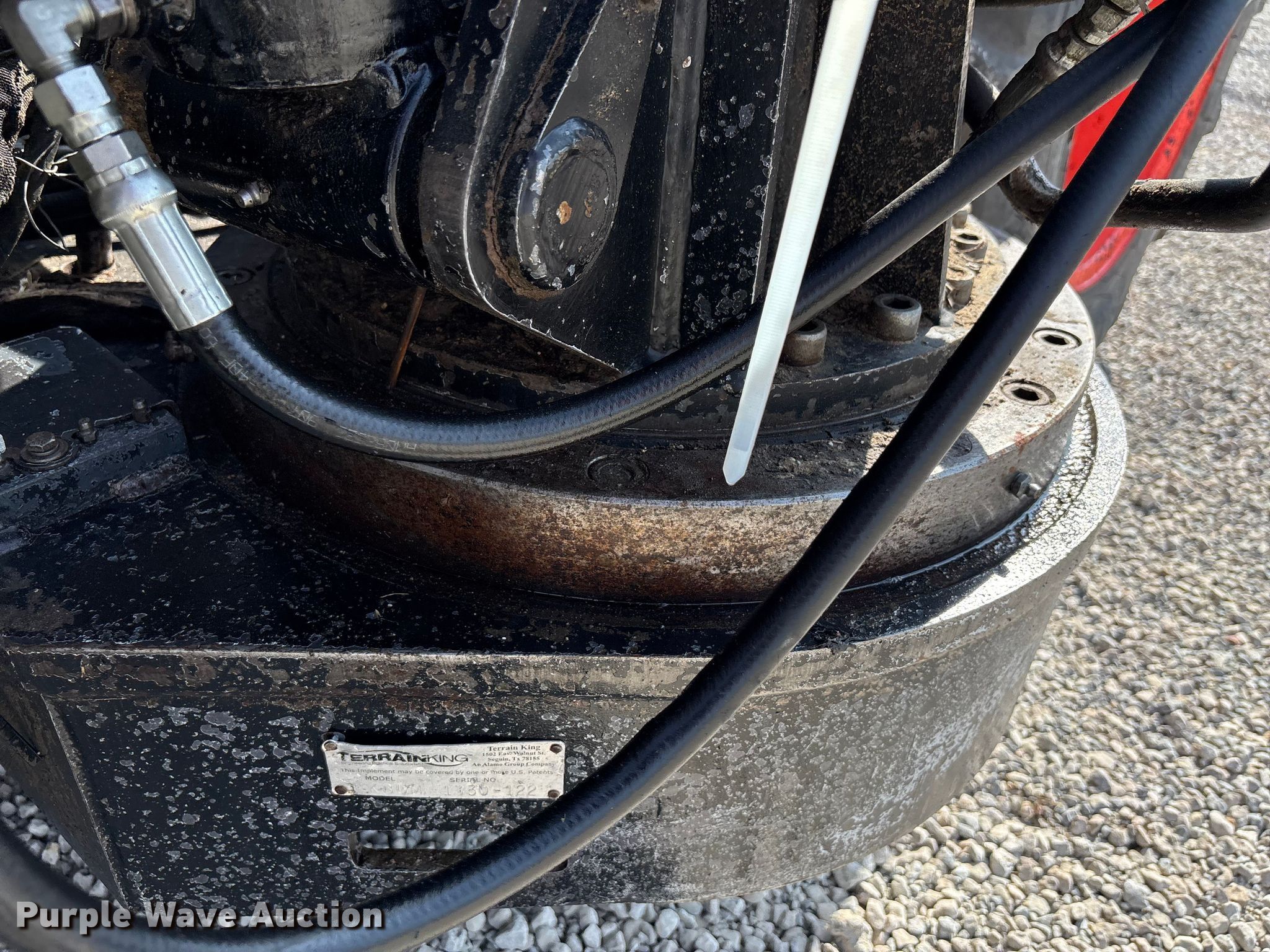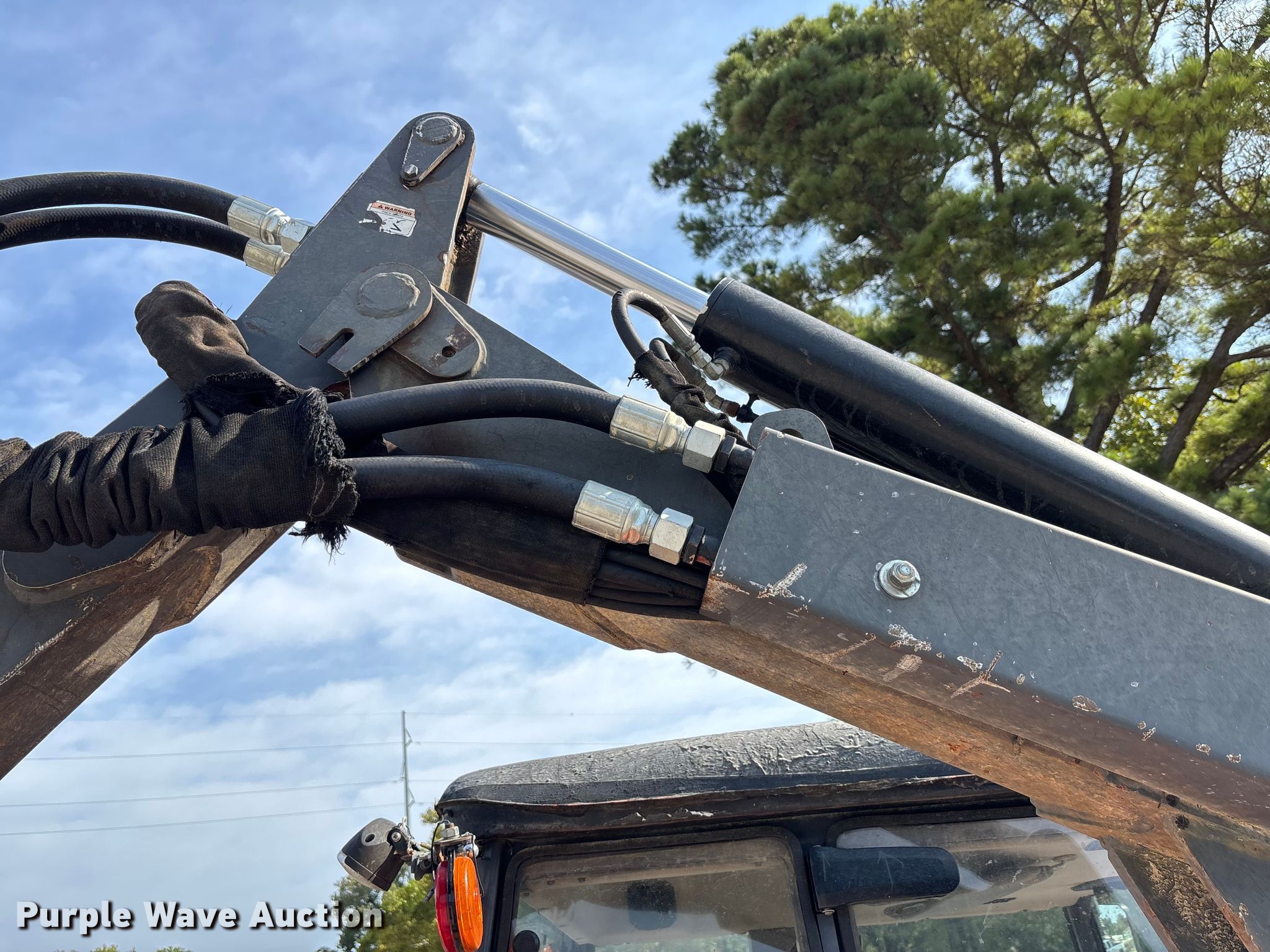 Kubota M108S MFWD tractor. Hours: 2,903 on meter. Engine Kubota V3800-di-ti-et01, Displacement: 3.8L, Cylinders: 4, Fuel type: Diesel. Transmission Synchro, 24F - 24R, Left hand reverser, Differential lock. Operators station AC, Heat. Features PTO: 540, Three point, Seven pin outlet, Hydraulic remote sets Rear: 1, Terrain King KB2200 side boom mower Serial: 1330-119, Width: 60", KBSB circular saw cutter Serial: 1047102, Width: 90". Tires Front: 13.6R24, Rear: 18.4R34, Wheel weights: 1, Wheelbase: 96". Notes Roof panel missing, Exhaust issues, bent, Hydraulic boom cylinder seal issues, leaks. Pontotoc County District 3. Stonewall, OK 74871