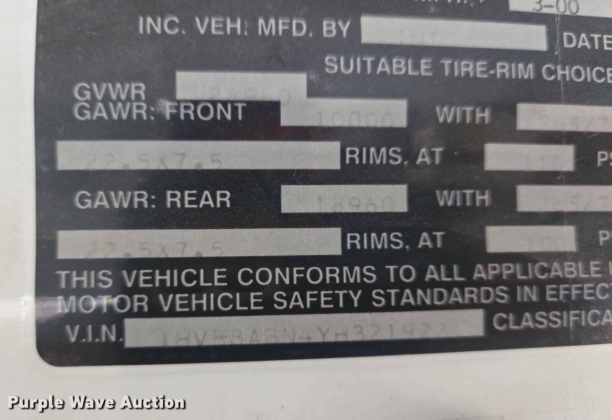 - VIN: 1HVBBABN4YH321922