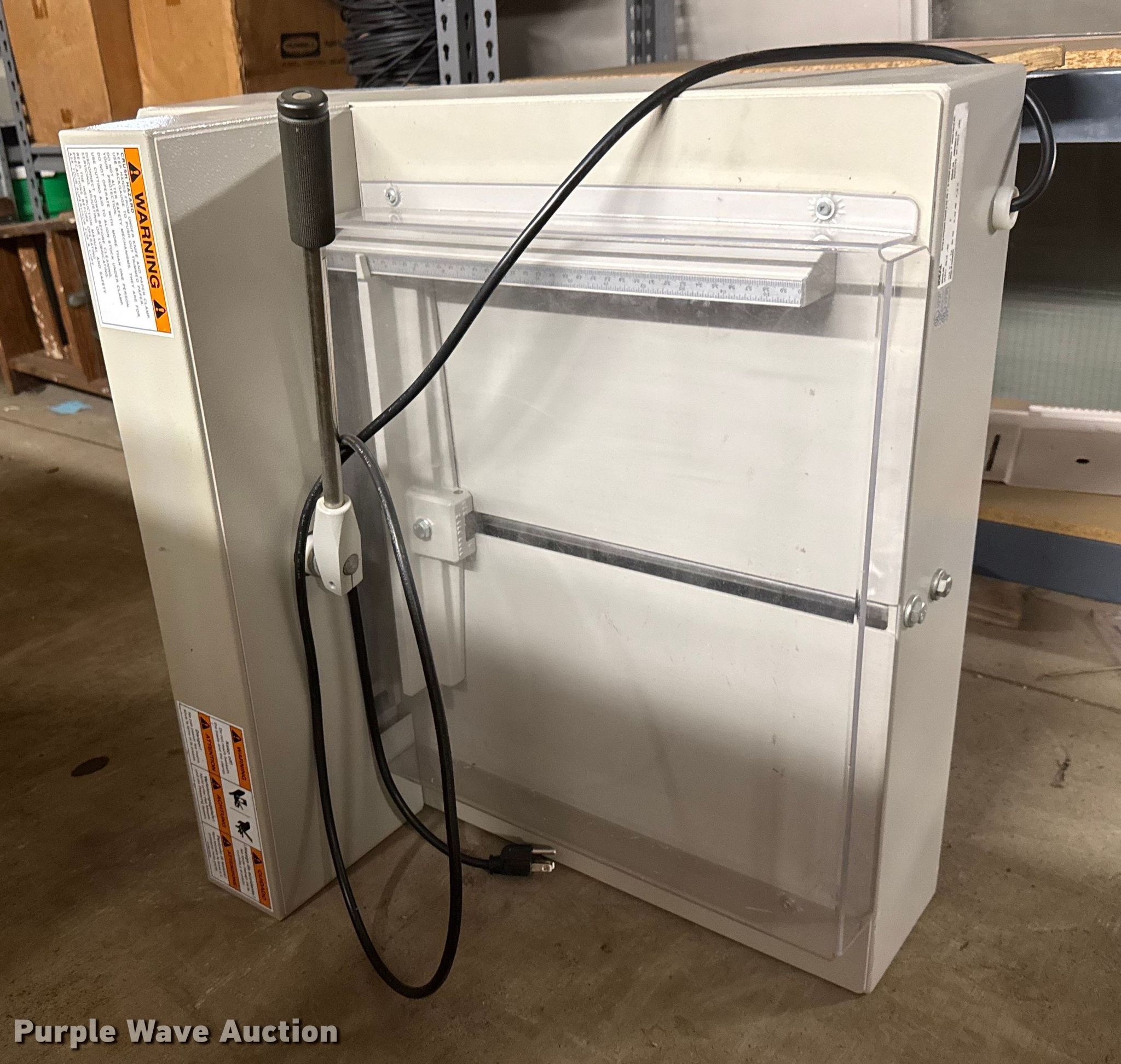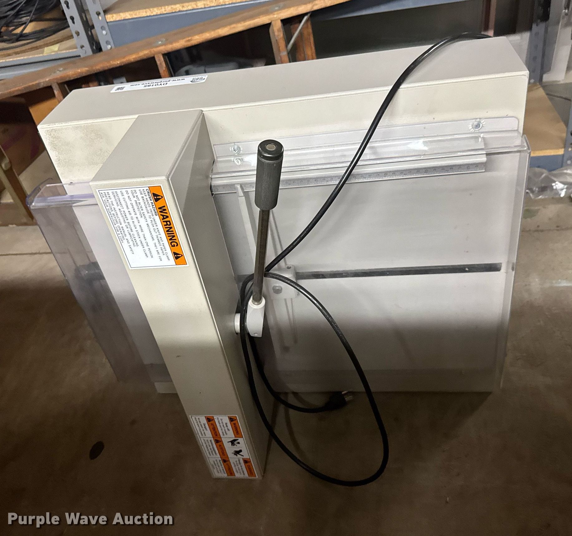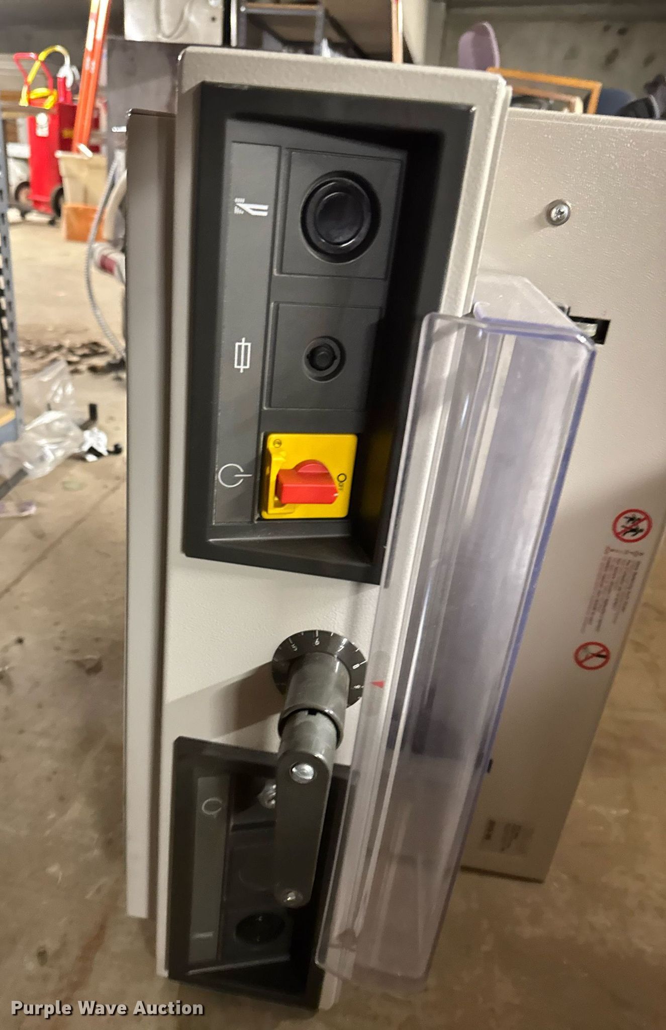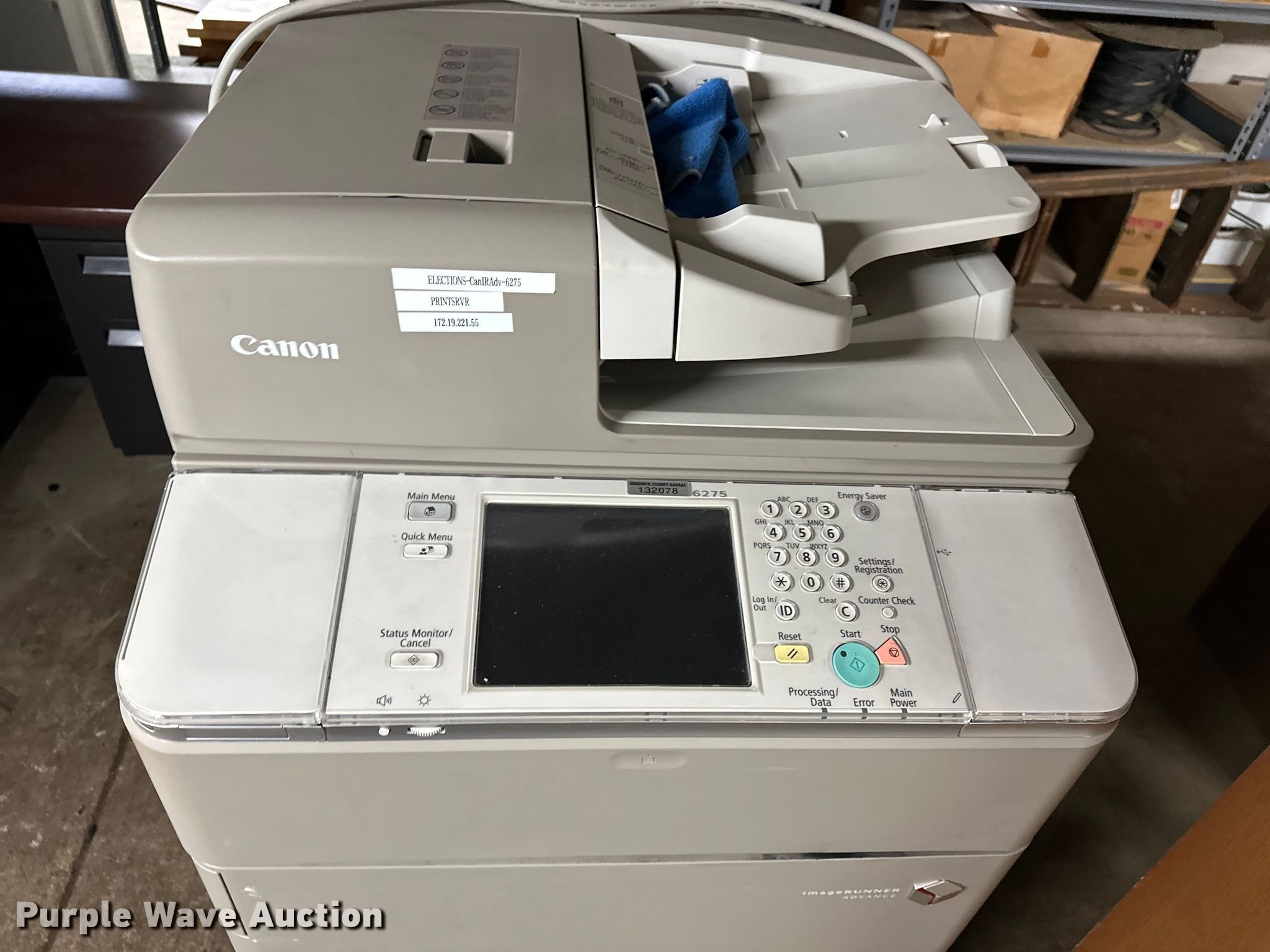 Purple Wave is selling a used Office Supplies and Equip. in Kansas. This item is a Office supplies with the following: Desks, (3) tables, Triumph Ideal 3915-95 paper cutter, Cannon Imagerunner Advance 6275 printer, Book case, (3) cubby shelves