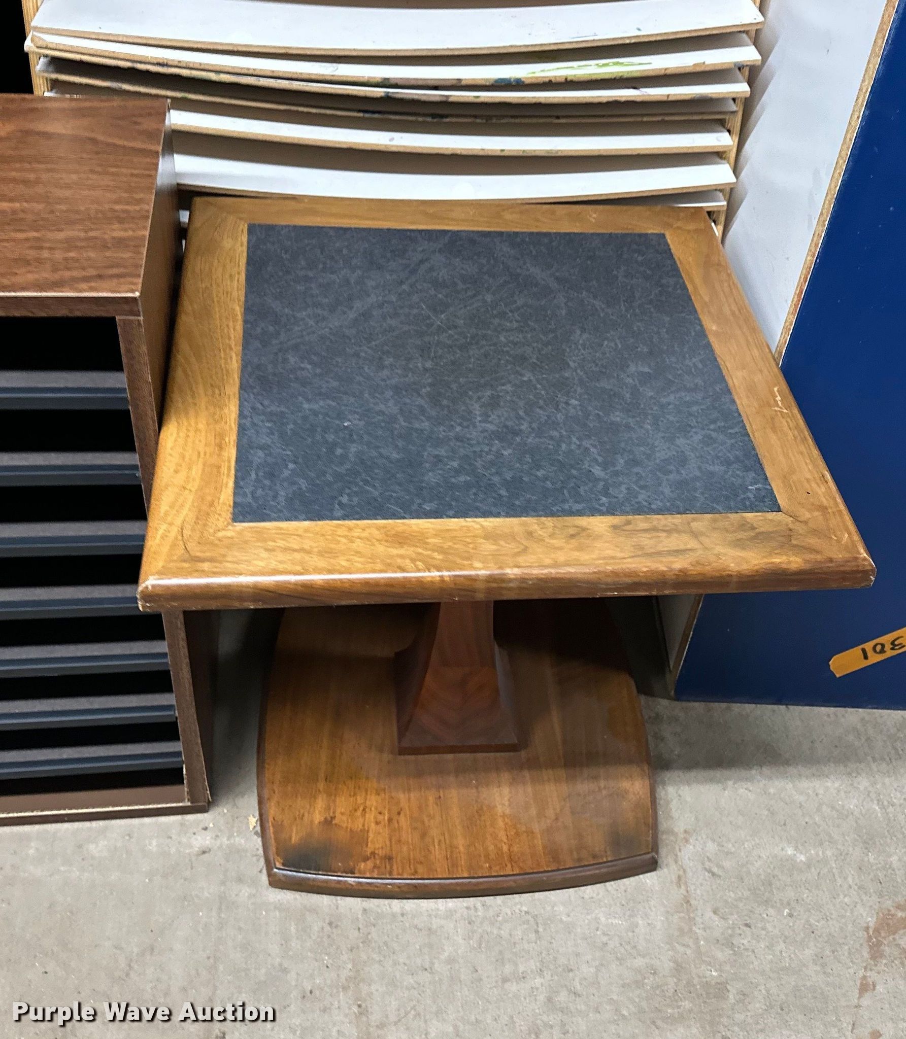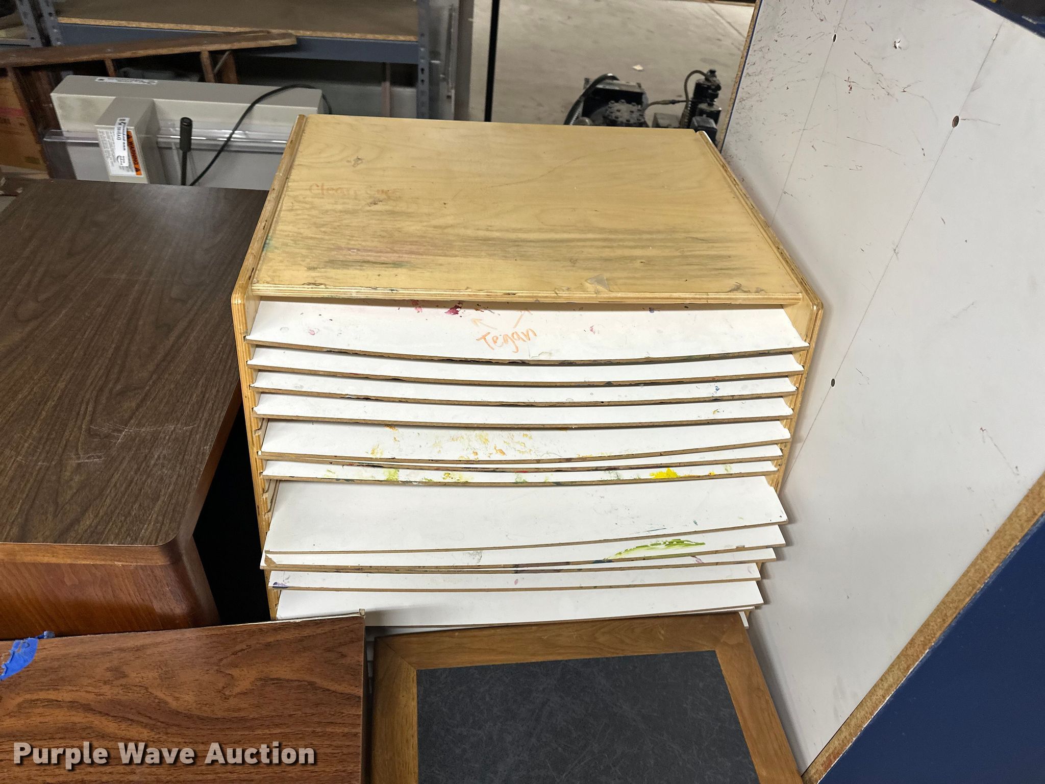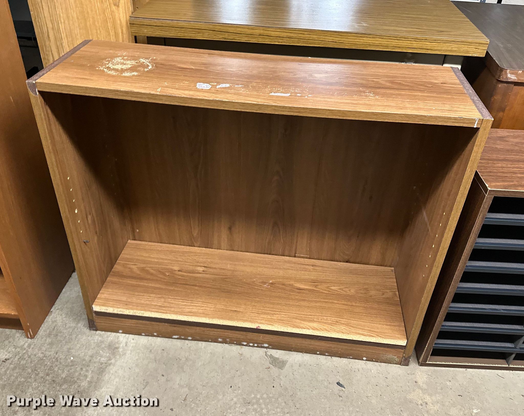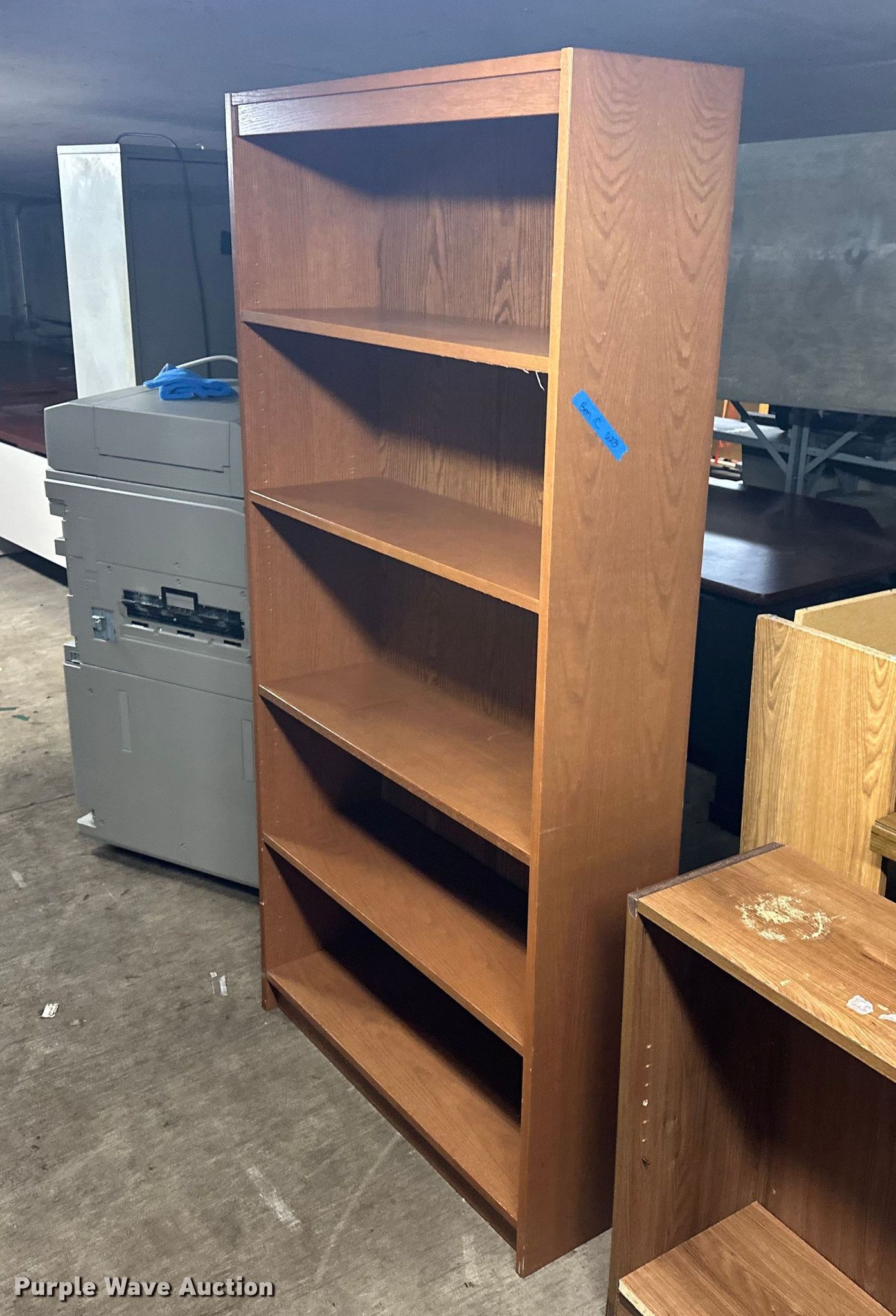 Office supplies. Desks, (3) tables, Triumph Ideal 3915-95 paper cutter, Cannon Imagerunner Advance 6275 printer, Book case, (3) cubby shelves. Sedgwick County. Wichita, KS 67203