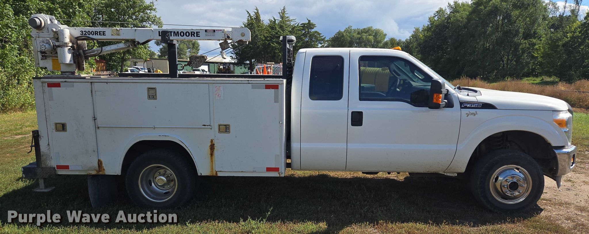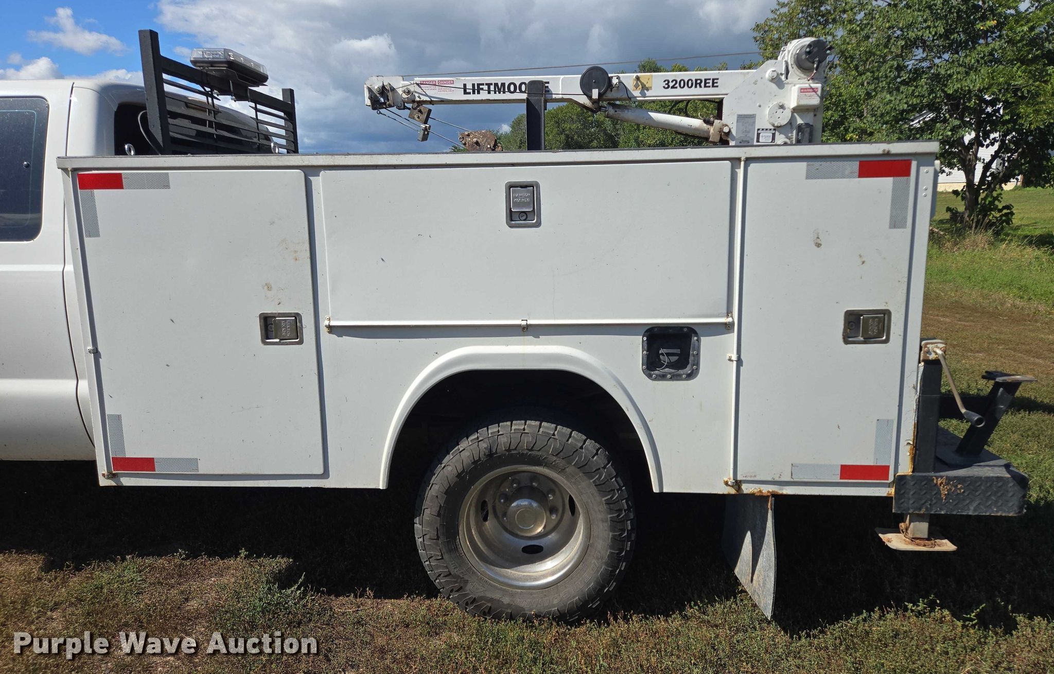 2012 Ford F350 Super Duty SuperCab utility bed pickup truck. Miles: 110,286 on odometer, VIN: 1FD8X3H69CEA68910. Engine Displacement: 6.2L V8 DOHC, Cylinders: 8, Fuel type: Gas. Transmission Automatic. Chassis Four wheel drive. Interior AC, Heat, Heated mirrors, Power windows, Power locks, Cruise control, Auxiliary controls. Features Bed Utility bed, Ransom Koeing, Length: 10' 2", Width: 94", Crane Liftmoore 3200REE, Maximum boom length: 16' Maximum lift capacity: 3,200 lbs.. Tires Size: LT265/70R17. Notes Grille damaged, Bed rust damage. South Dakota title. Title distribution may be delayed up to 14 days from verification of funds. City of Brandon, SD. Brandon, SD 57005