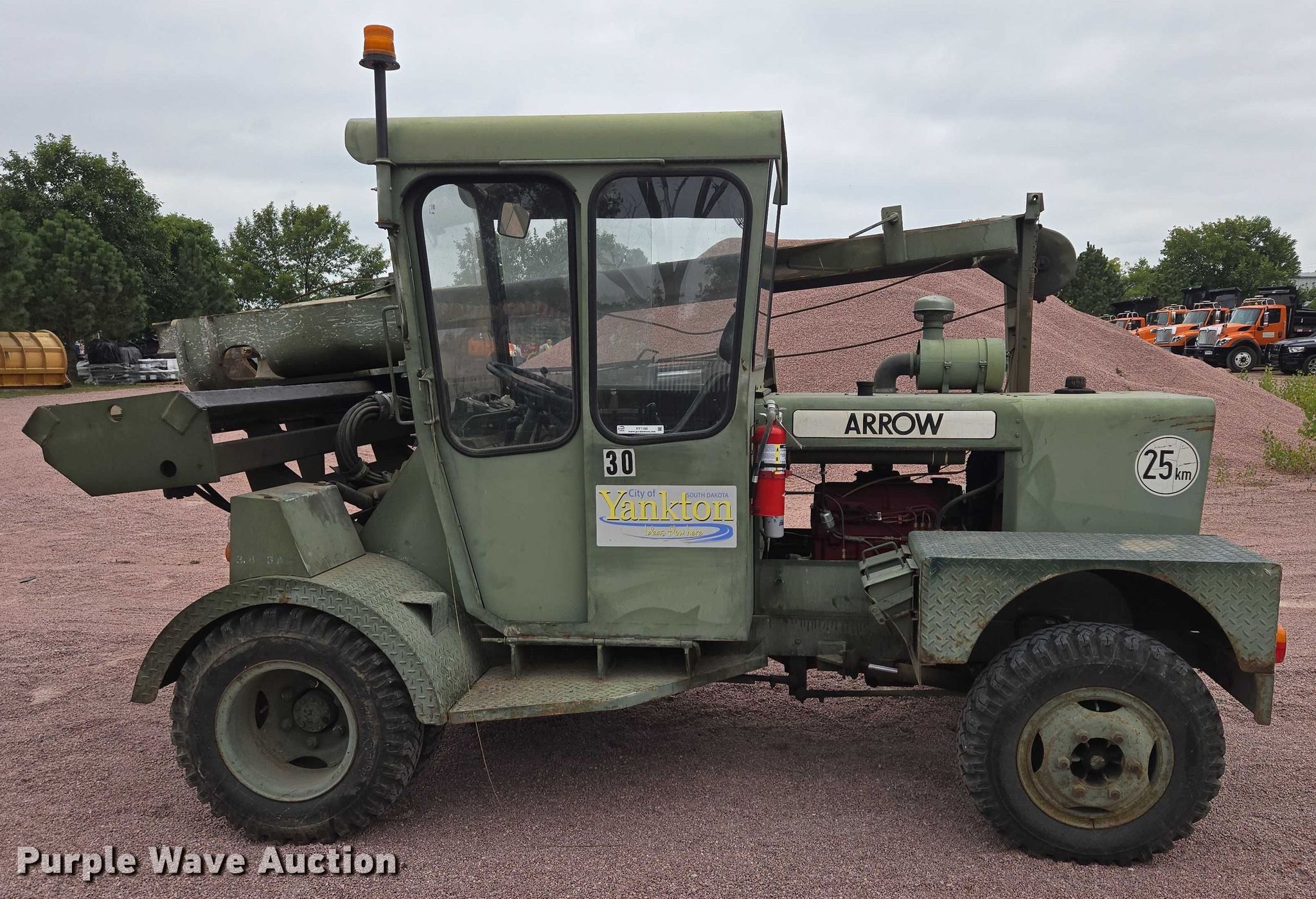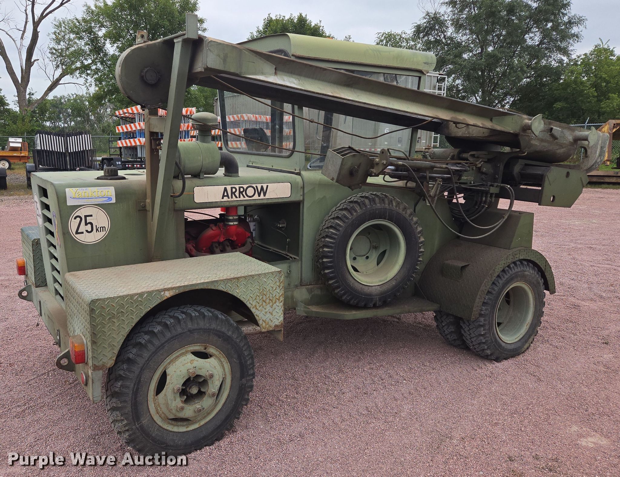 1988 Arrow D500 drop hammer. Miles: 414 on odometer, Hours: 190 on meter, Serial: F601266. Engine Ford, Serial: 30120, Displacement: 4.15L, Cylinders: 4, Fuel type: Diesel. Transmission Manual, 4F - 1R. Tires Size: 7.5-16C. Notes Jump start required during on-site data collection. City of Yankton. Yankton, SD 57078