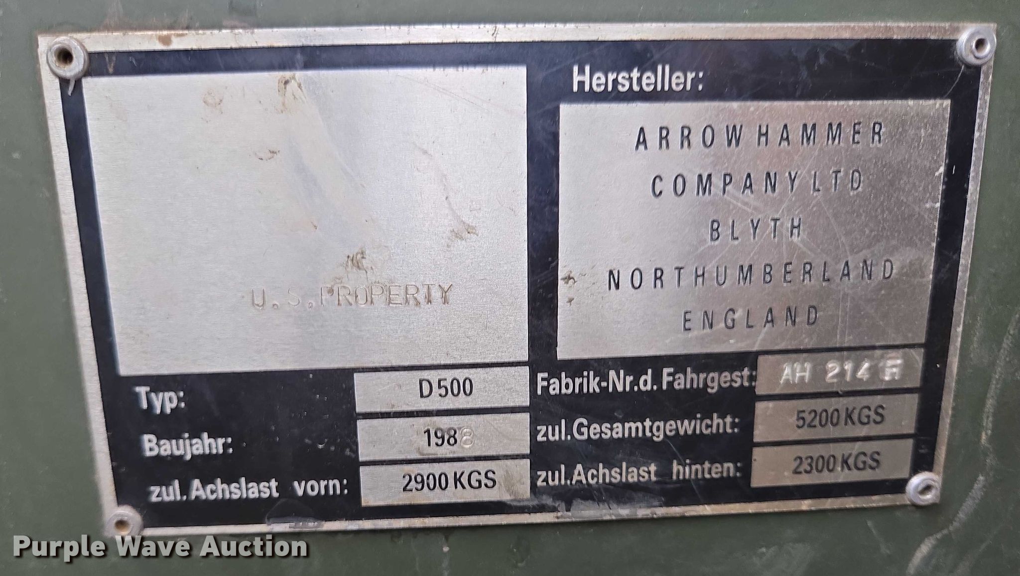 Purple Wave is selling a used Breaker or Hammer in South Dakota. This item is a 1988 Arrow D500 drop hammer with the following: Miles: 414 on odometer, Hours: 190 on meter, Serial: F601266