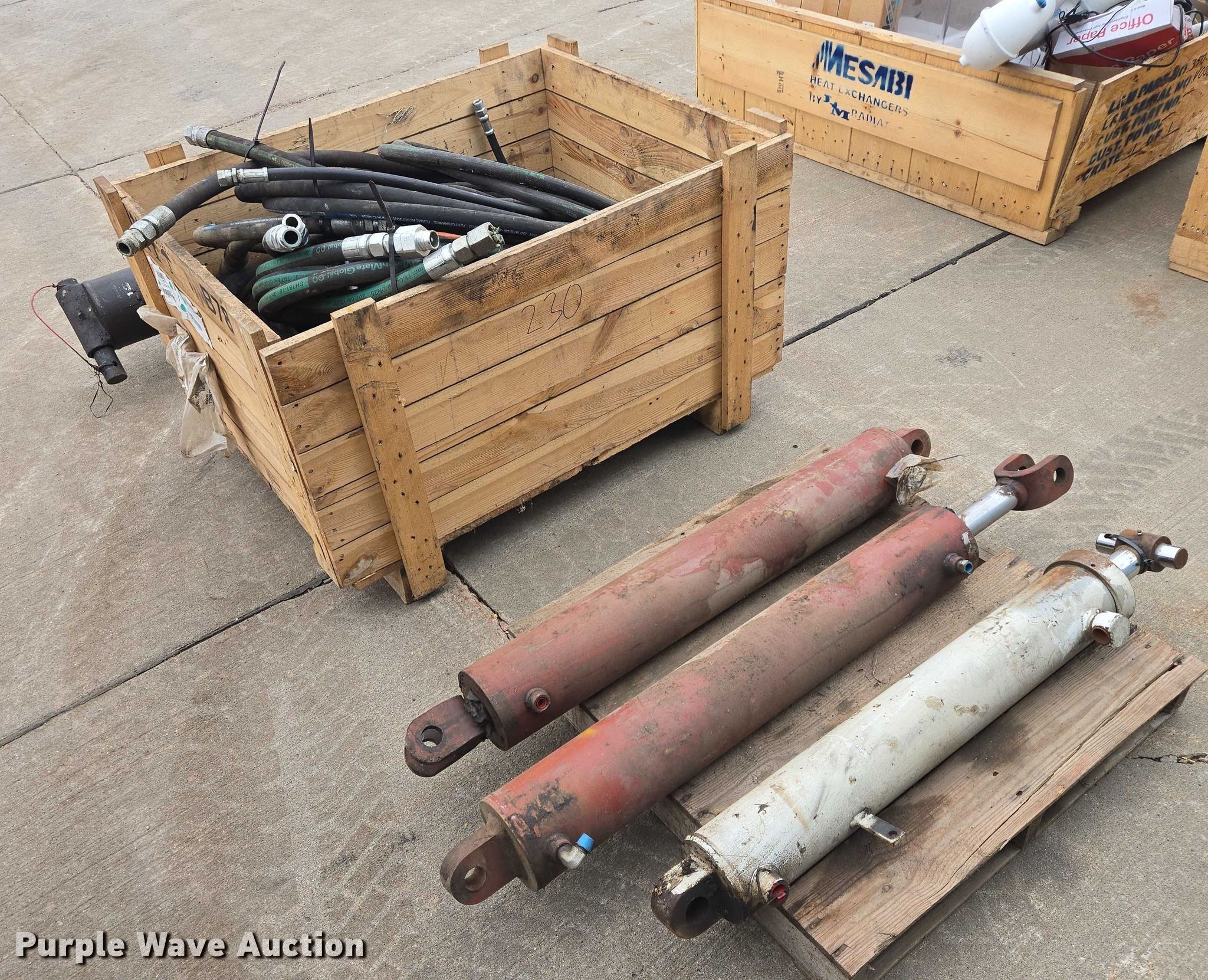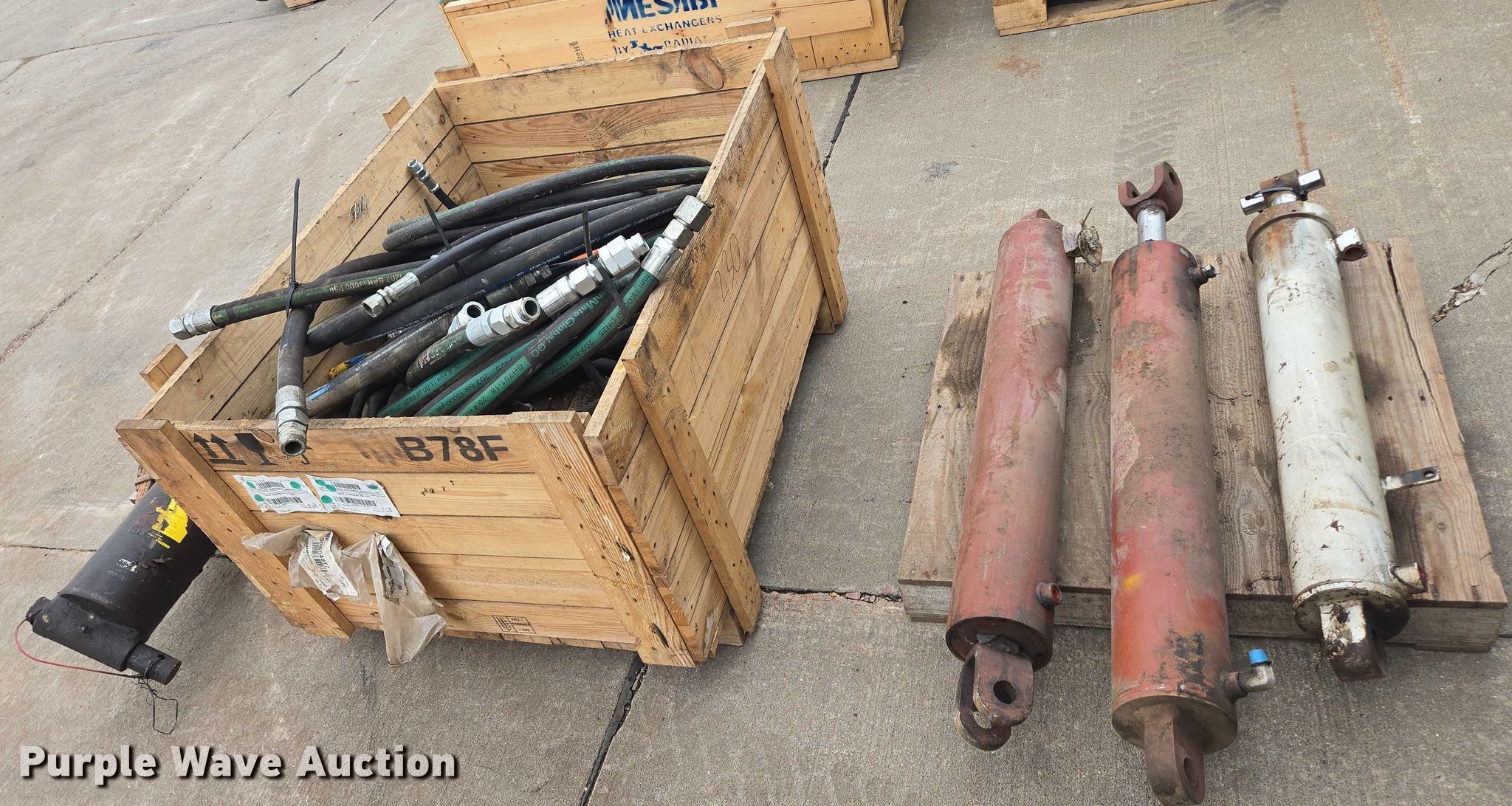 Purple Wave is selling a used Ag Equip. Other in South Dakota. This item is a (4) hydraulic cylinders with the following: Crate of hydraulic hoses