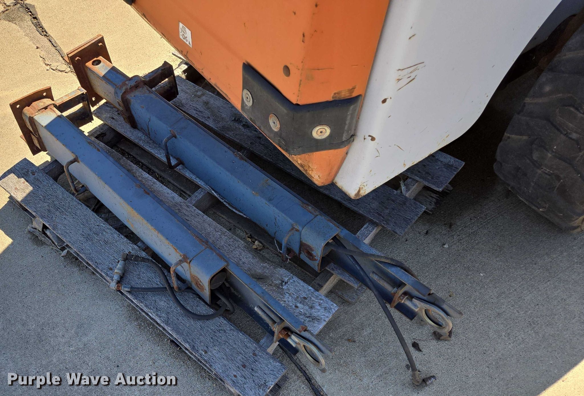 1997 Bobcat 863H skid steer loader. Hours: 799 on meter, Serial: 514611122. Engine Deutz BF4M1011, Cylinders: 4, Fuel type: Diesel. Transmission Hydrostatic. Operators station Enclosed cab, Heat, Bucket control: Foot. Features Auxiliary hydraulics, Auxiliary electrical outlet, Quick coupler: Manual. Tires Size: 12-16.5. Notes Parts missing , No battery, Head gasket issue, needs replaced, Turbo has been removed, Lug nuts missing, Flat tires, Door missing, Outriggers removed but included, Unit must be towed or hauled , Key not included, Non-operational unit. South Dakota BOA Federal Surplus Property. Huron, SD 57350