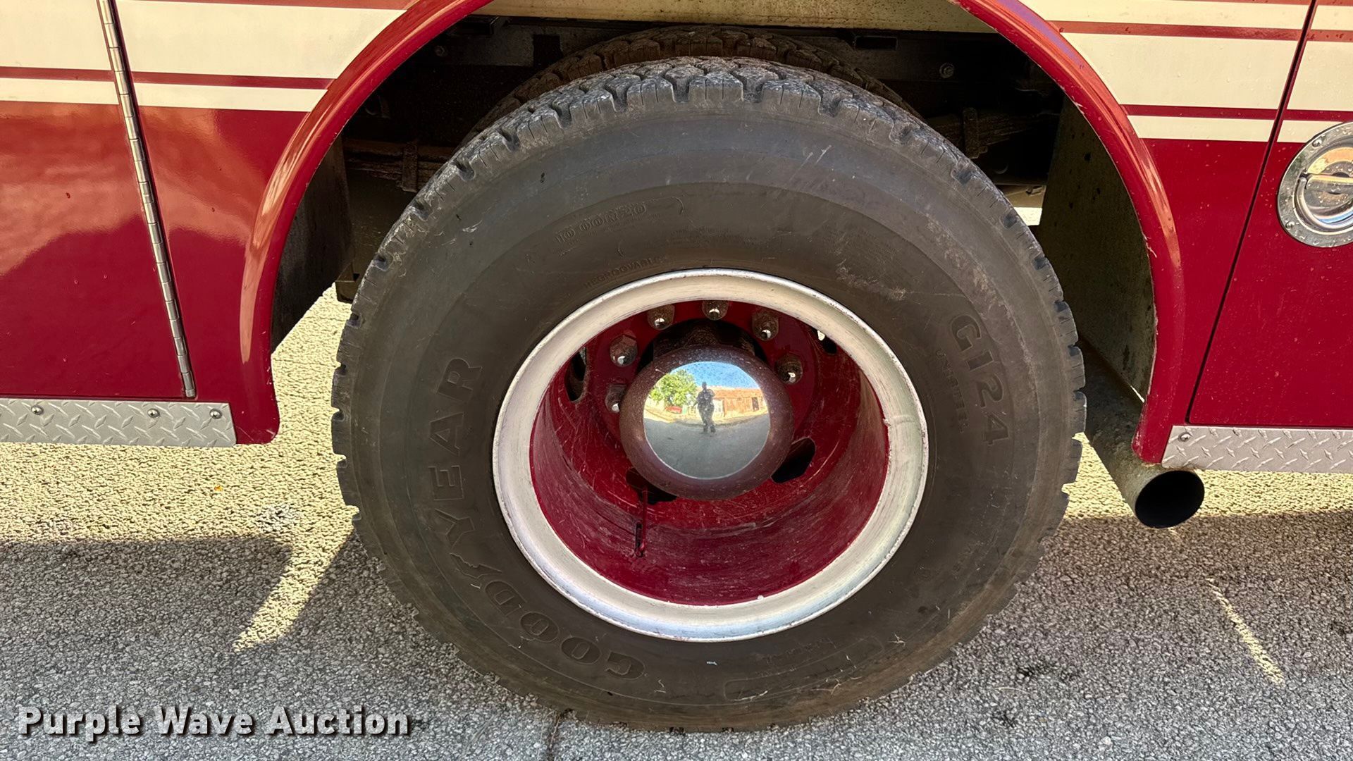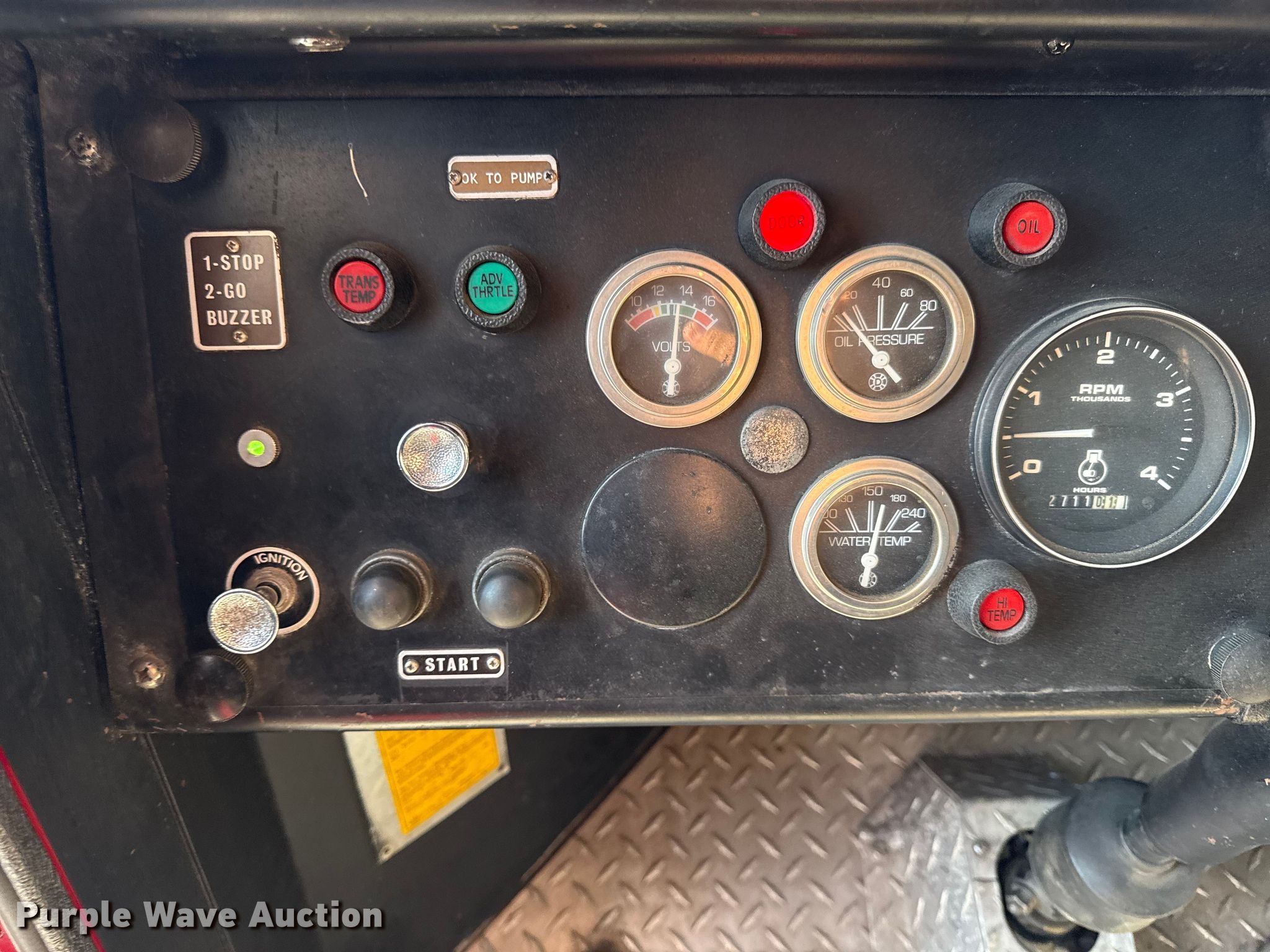1982 American LaFrance pumper fire truck. Miles: 13,900 on odometer, Hours: 2,711 on meter, VIN: 1AFAE1187C1A17588. Engine Detroit Diesel, Cylinders: 6, Fuel type: Diesel. Transmission Automatic. Chassis Axles: Single, Suspension: Spring, Brakes: Air, GVWR: 36,167 lbs. Features Fire truck body Elevated deck gun, Tank Capacity: 1,000 gallons, Pump 1,000 gpm.. Tires Size: 10.00R20. Notes Air tank issues, may need replaced, Dead battery. Kansas title. Title distribution may be delayed up to 14 days from verification of funds. City of Elk City. Elk City, KS 67344