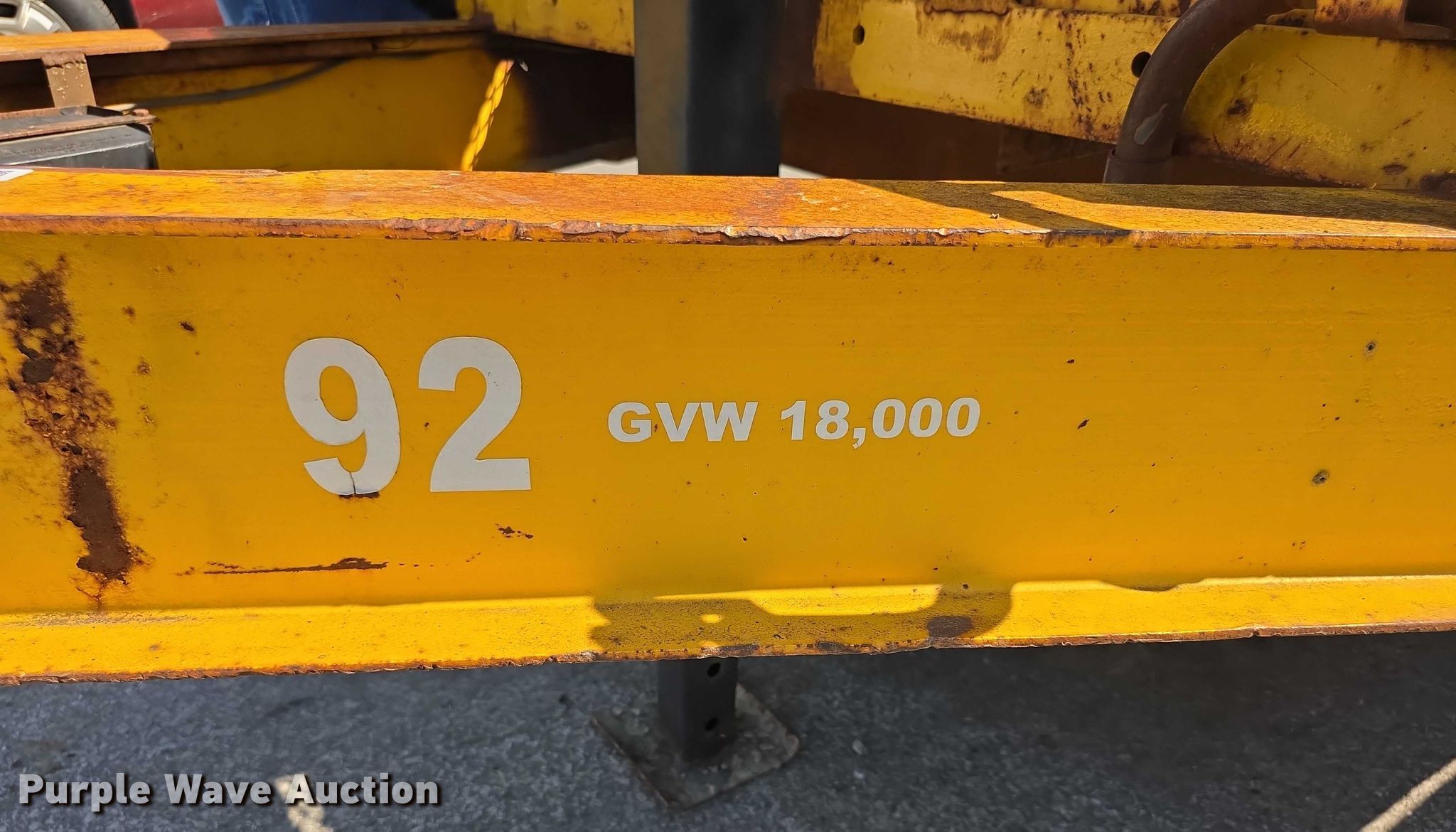 1982 JFW W3 equipment trailer. VIN: 7169, Unit #: 92. Dimensions Overall Length: 28' 6", Width: 8', Deck Length: 18', Width: 8', Tail length: 4' 6", Ramps: Manual Length: 4'. Features Deck type: Wood. Chassis Hitch: Pintle, Landing gear: Single, Suspension: Spring, Axles: Triple, GVWR: 18,000 lbs. Tires Steel wheels, Size: 235/80R16. Kansas title. Title distribution may be delayed up to 14 days from verification of funds. City of Merriam. Merriam, KS 66203
