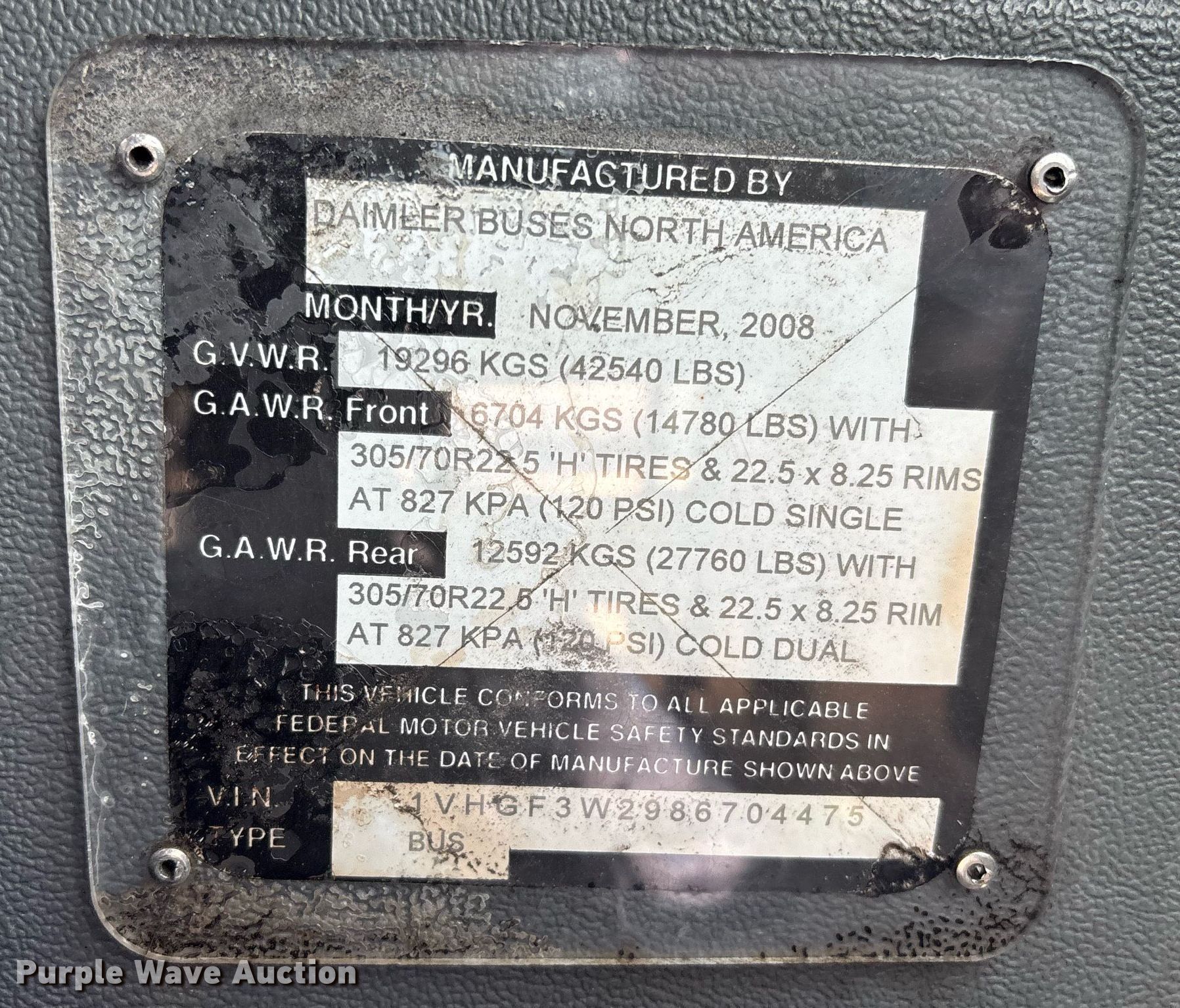 Purple Wave is selling a used Bus in California. This item is a 2008 Orion bus with the following: Miles: Unknown, VIN: 1VHGF3W2986704475