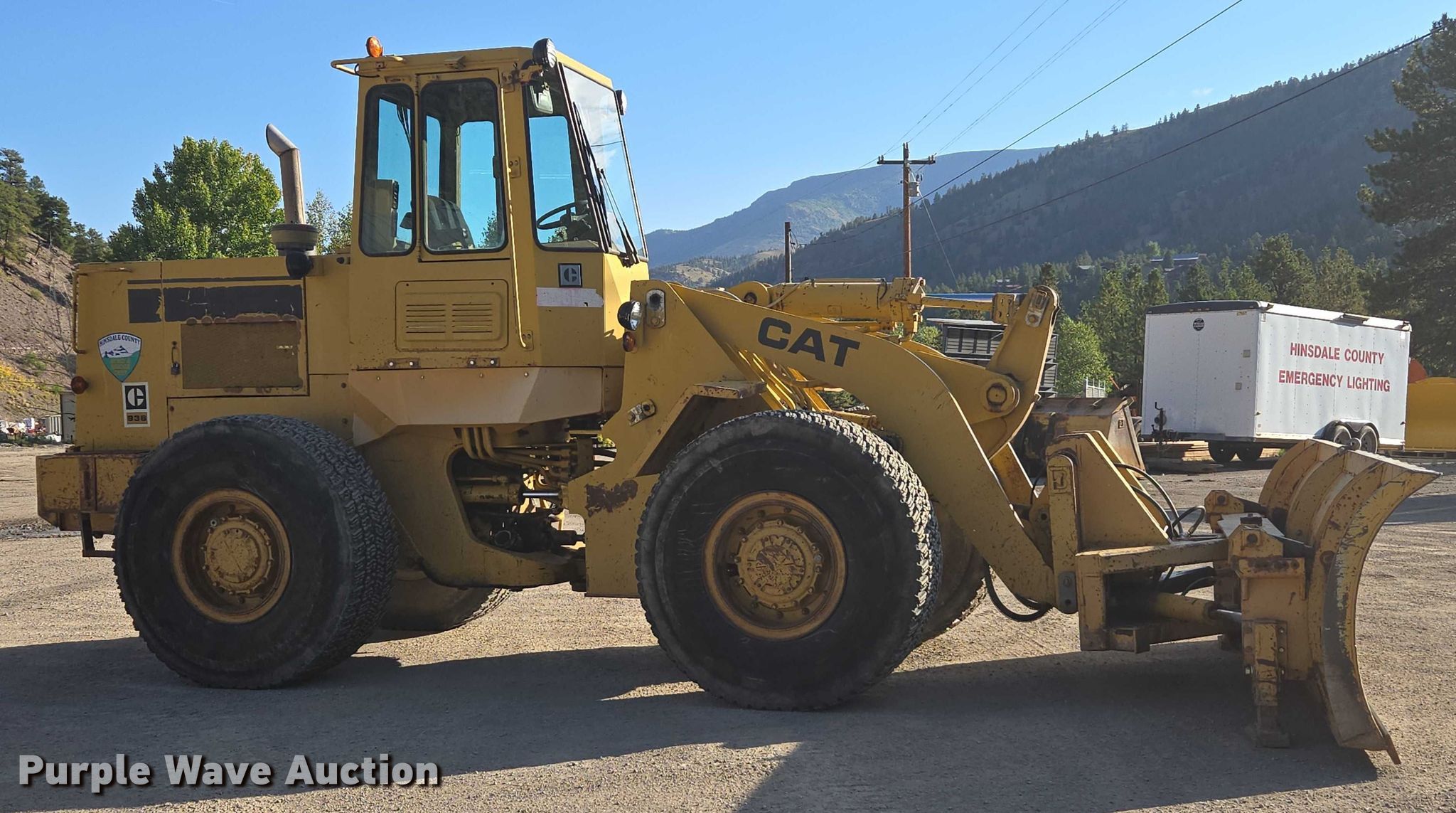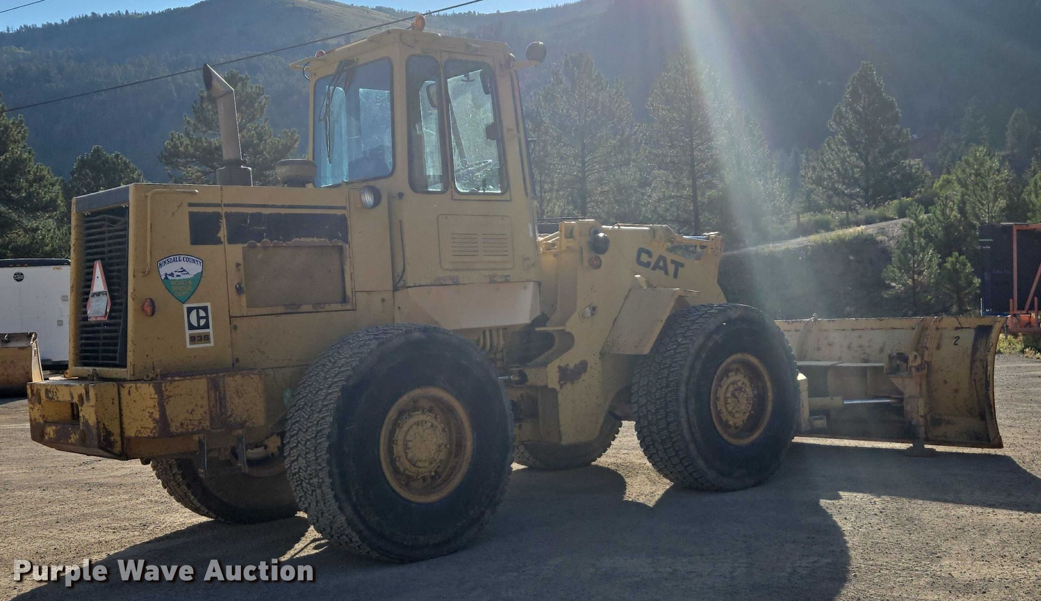 1988 Caterpillar 936E wheel loader. Hours: 10,687 on meter, Miles or hours may vary, unit still in use, Serial: 33Z03176. Engine Caterpillar, Cylinders: 4, Fuel type: Diesel, HP: 125. Transmission Powershift, 4F - 4R, Differential lock. Operators station Enclosed cab, AC, Heat, Bucket controls: Two-lever. Features Auxiliary hydraulics: Front, Counter weights, Bucket Width: 104", Cutting edge: Bolt-on. Tires Size: 20.5R25. Lake City, CO 81235