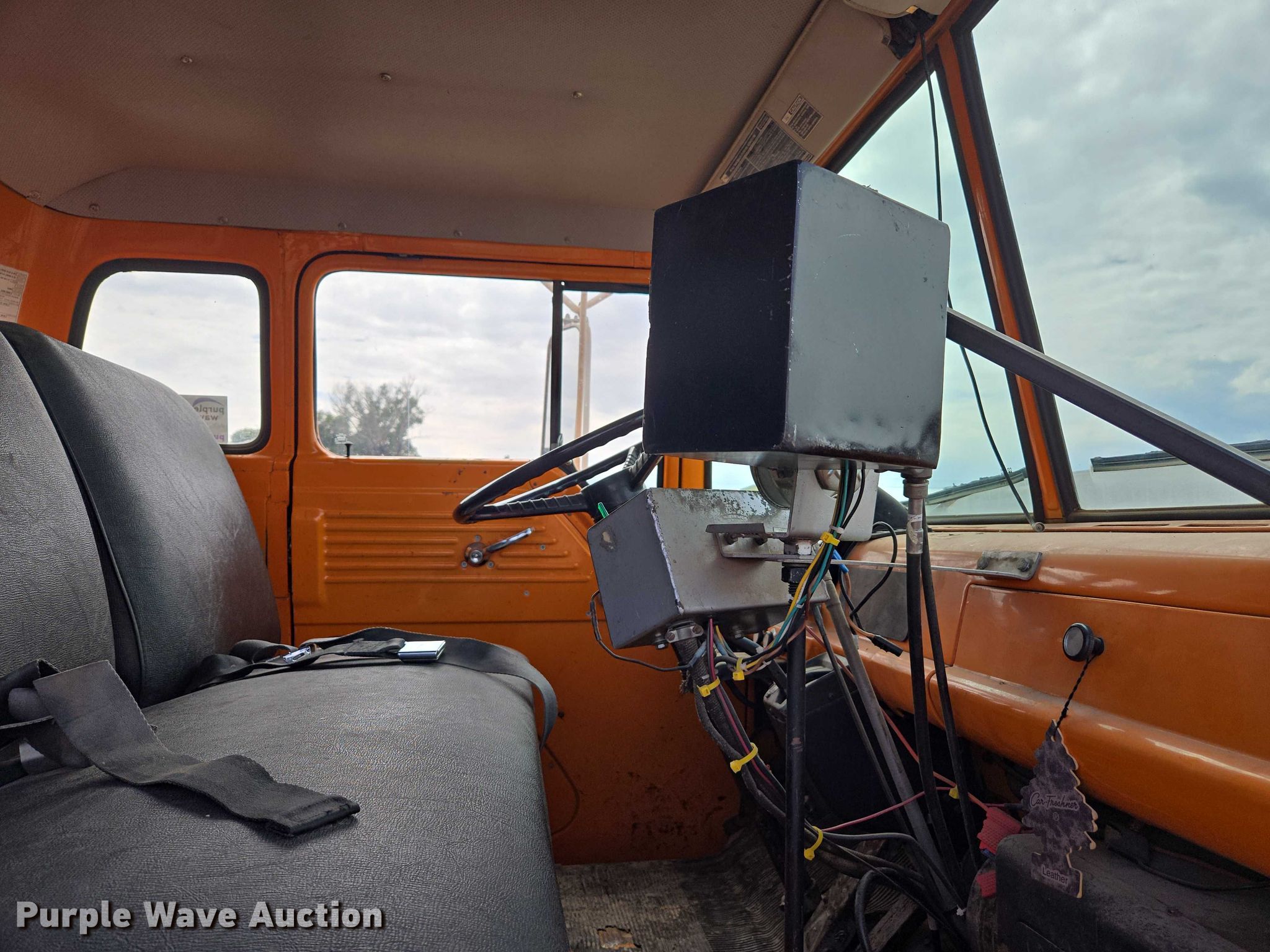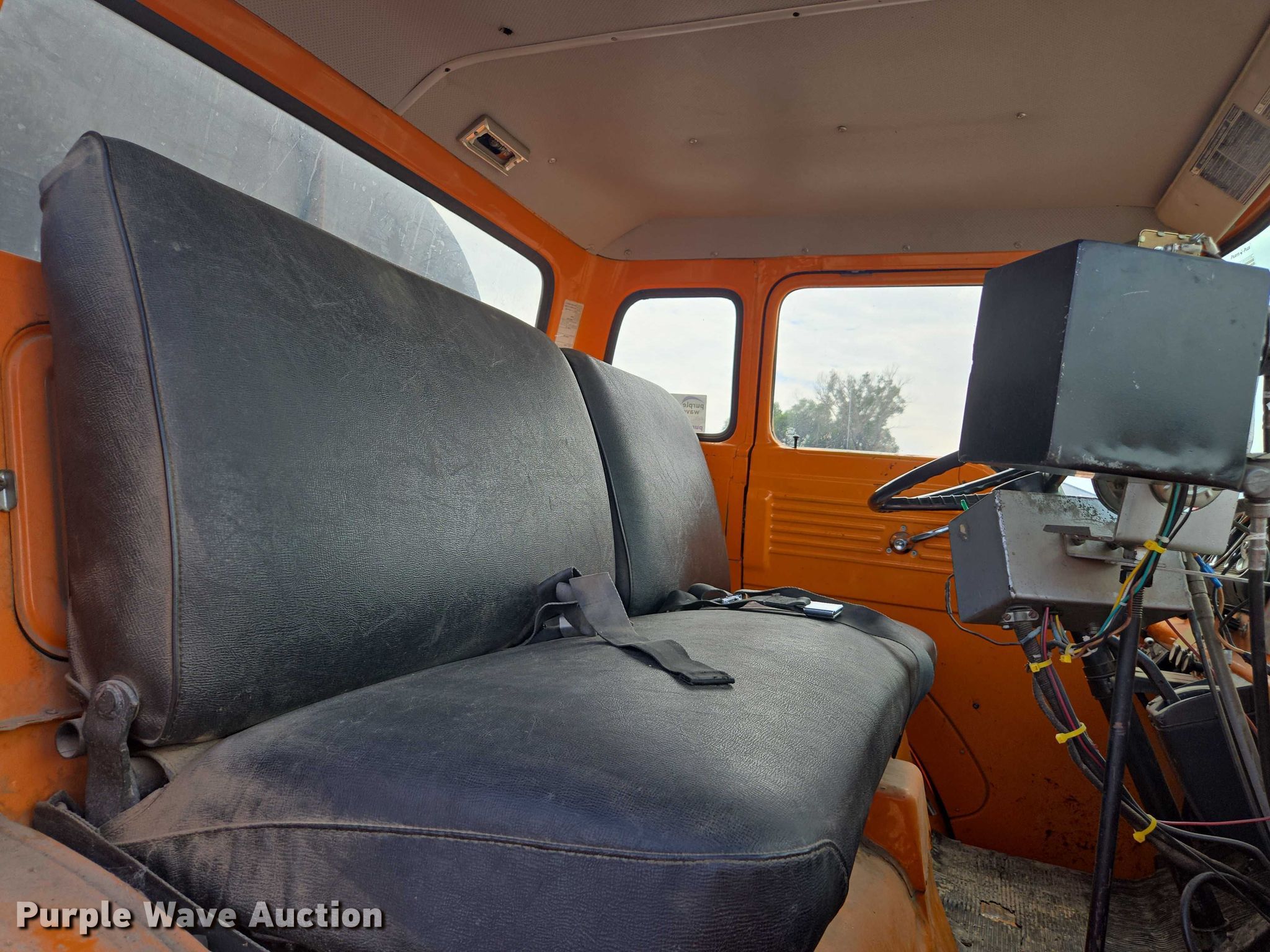 1981 Ford C800 oil distributor truck. Miles: 58,403 on odometer, VIN: 1FDYC80K9BVJ26513. Engine Displacement: 7.0L, Cylinders: 8, Fuel type: Gas. Transmission Manual, Speed: 5. Chassis Axles: Single, Suspension: Spring, Brakes: Air, PTO, GVWR: 35,100 lbs. Interior AC, Heat. Features Bed Tank bed, Etnyre BTHS, Serial: J-7542, Capacity: 2,137 gallons, Burner: LPG, In-cab controls, Spray wand, Width: 12', Folding, Nozzles: 40. Tires Size: 11R20 16PR. Colorado title. Title distribution may be delayed up to 14 days from verification of funds. Rio Grande County. Monte Vista, CO 81144