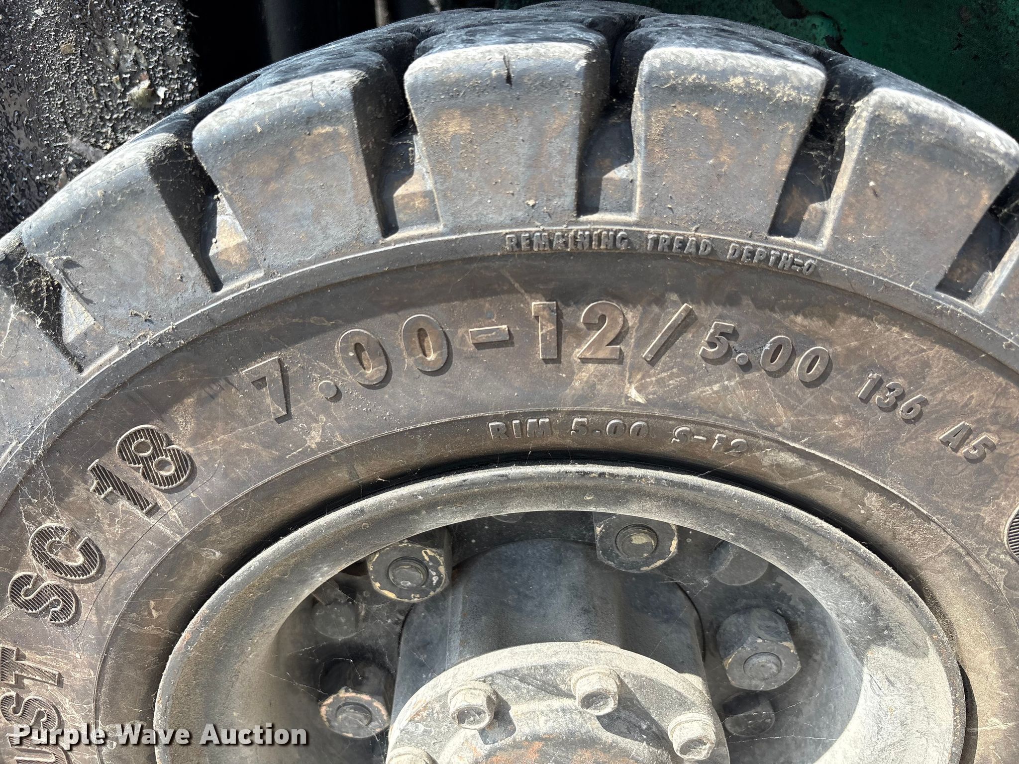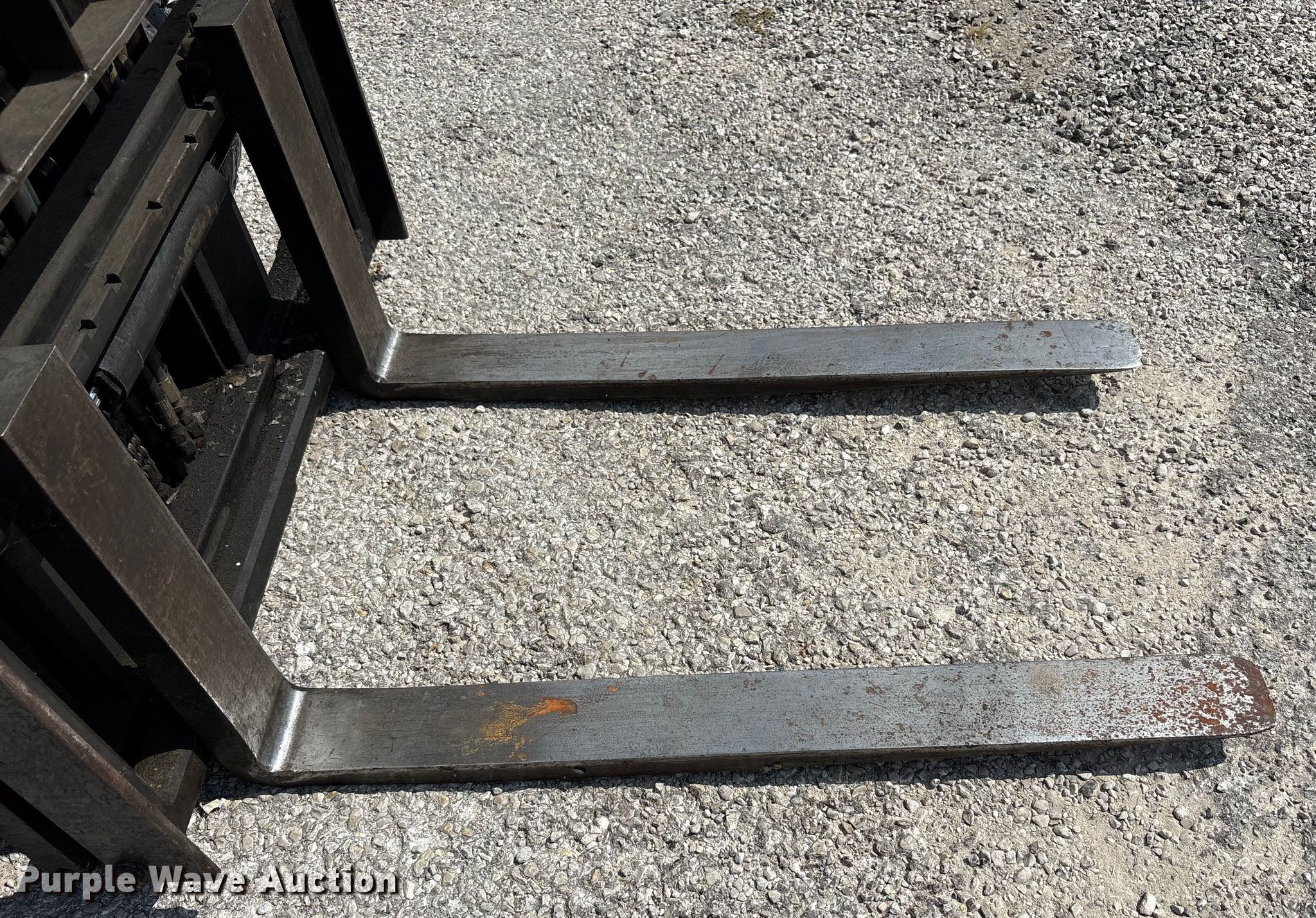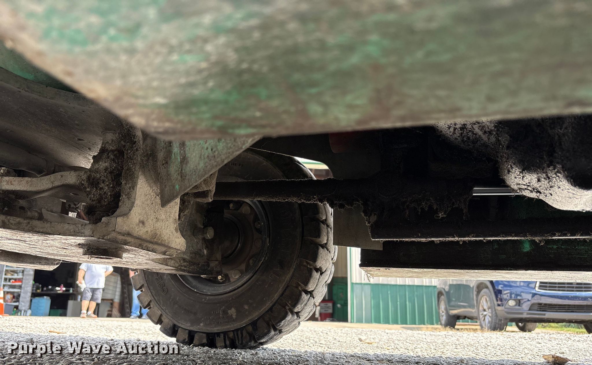 1999 Mitsubishi FG25B forklift. Hours: 13,908 on meter, Serial: AF17B06339. Engine Cylinders: 4, Fuel type: LPG LP bottle: Not included. Transmission Powershift. Operators station Canopy. Features Maximum lift capacity: 4,400 lbs, Maximum lift height: 190", Collapsed mast height: 89", Mast stages: 3, Side shift, Mast tilt, Fork length: 41". Tires Front: 7.00-12, Rear: 6.00-9, Solid. Notes Hydraulic leaks. Martin County Highway. Loogootee, IN 47553