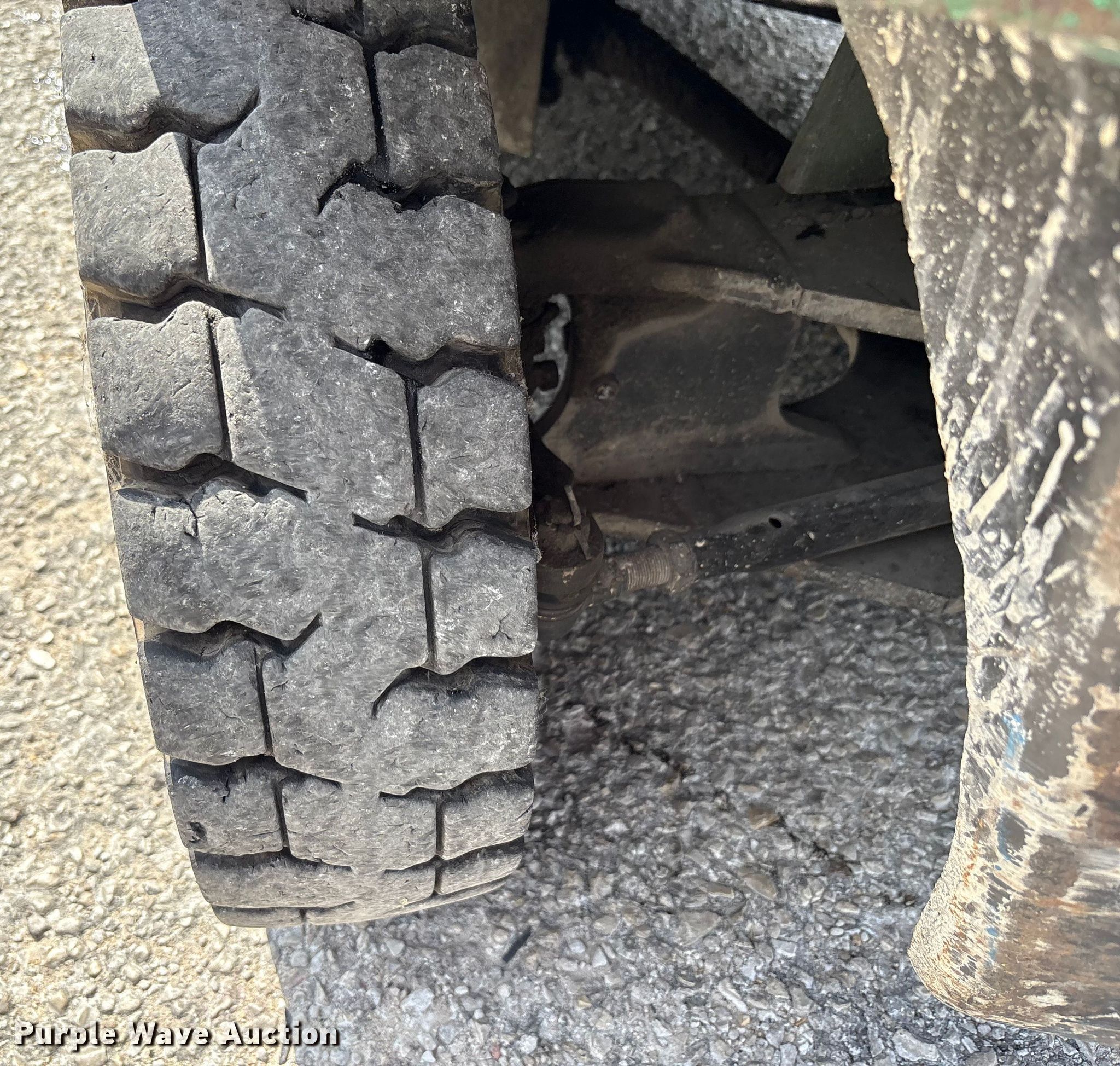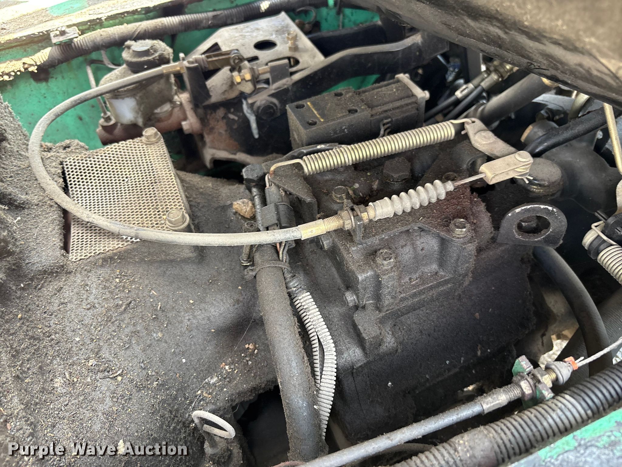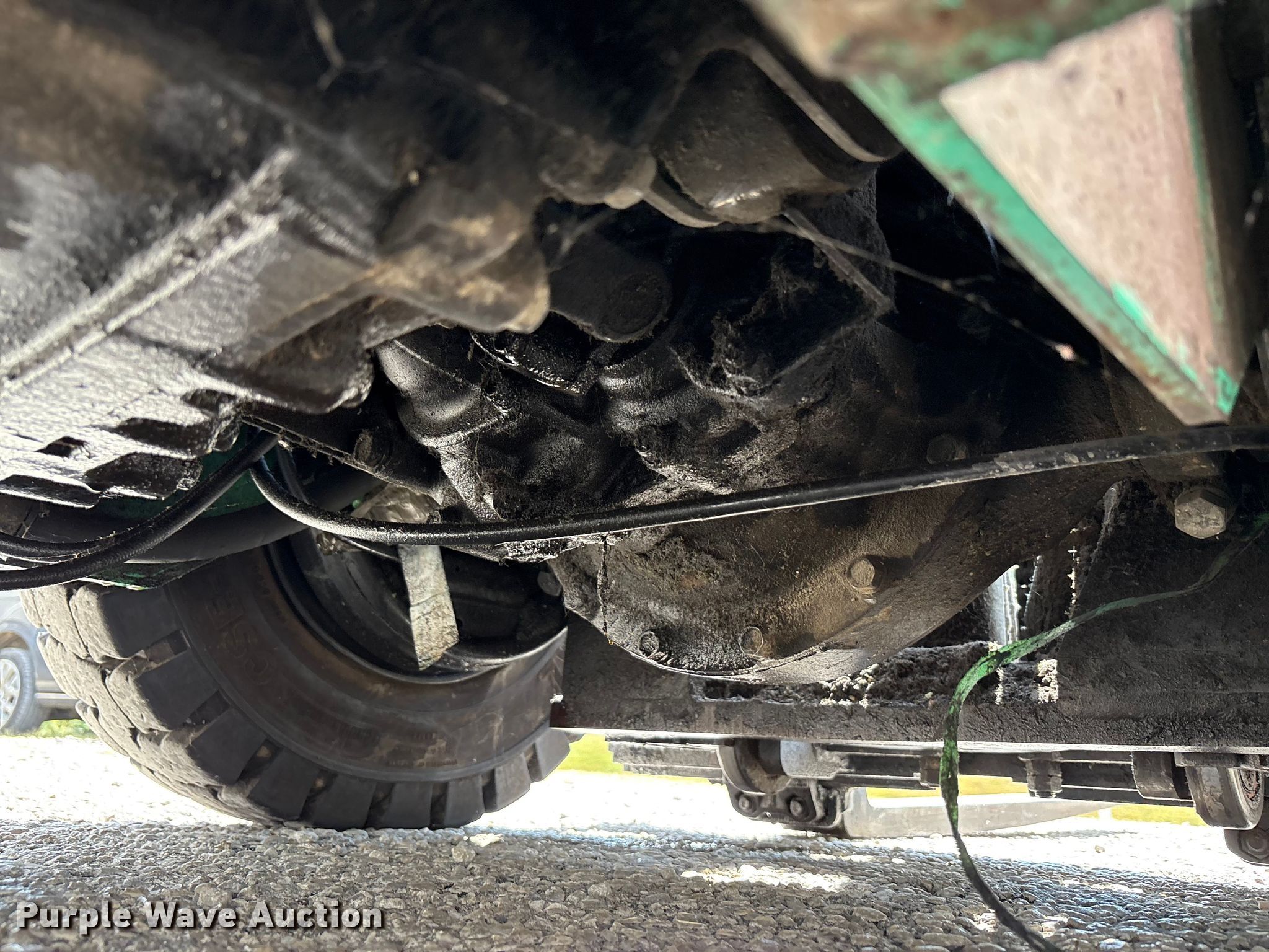 1999 Mitsubishi FG25B forklift. Hours: 13,908 on meter, Serial: AF17B06339. Engine Cylinders: 4, Fuel type: LPG LP bottle: Not included. Transmission Powershift. Operators station Canopy. Features Maximum lift capacity: 4,400 lbs, Maximum lift height: 190", Collapsed mast height: 89", Mast stages: 3, Side shift, Mast tilt, Fork length: 41". Tires Front: 7.00-12, Rear: 6.00-9, Solid. Notes Hydraulic leaks. Martin County Highway. Loogootee, IN 47553
