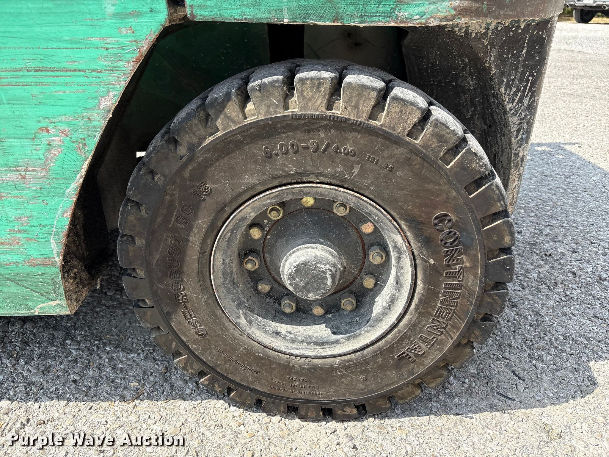 Purple Wave is selling a used Cushion Tire or Pneumatic Forklift in Indiana. This item is a 1999 Mitsubishi FG25B forklift with the following: Hours: 13,908 on meter, Serial: AF17B06339