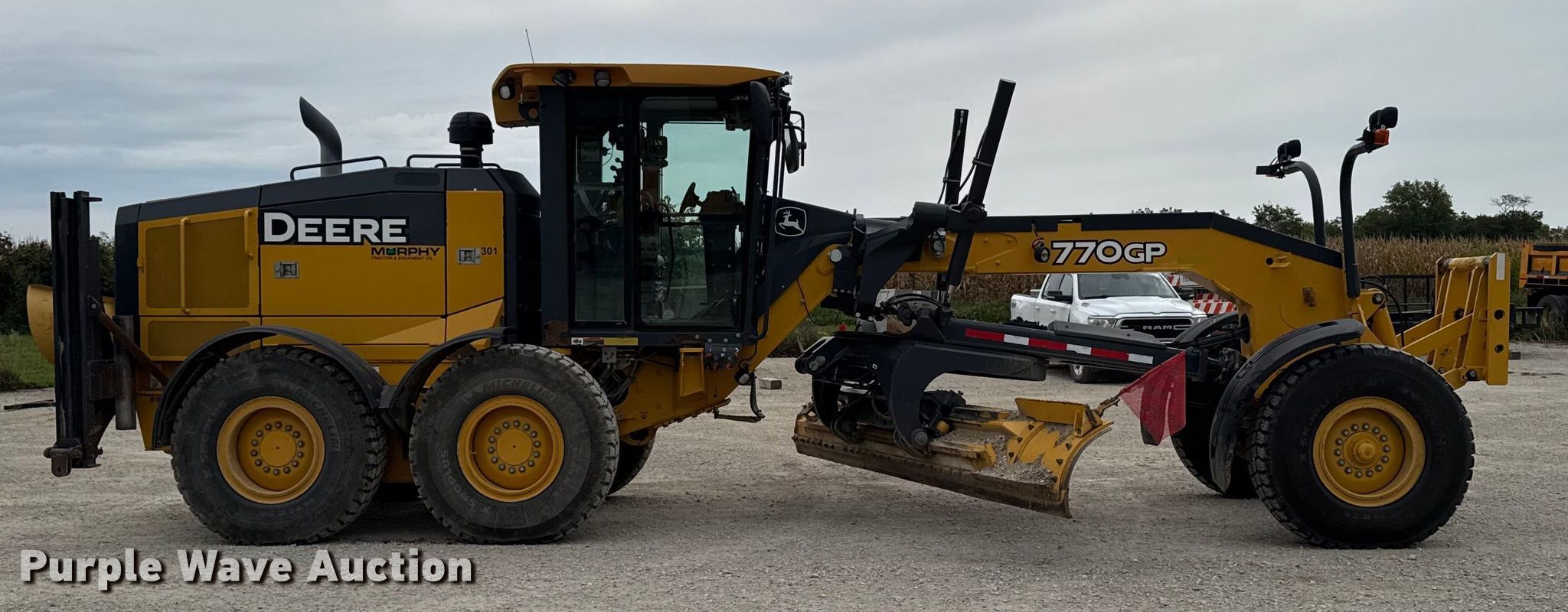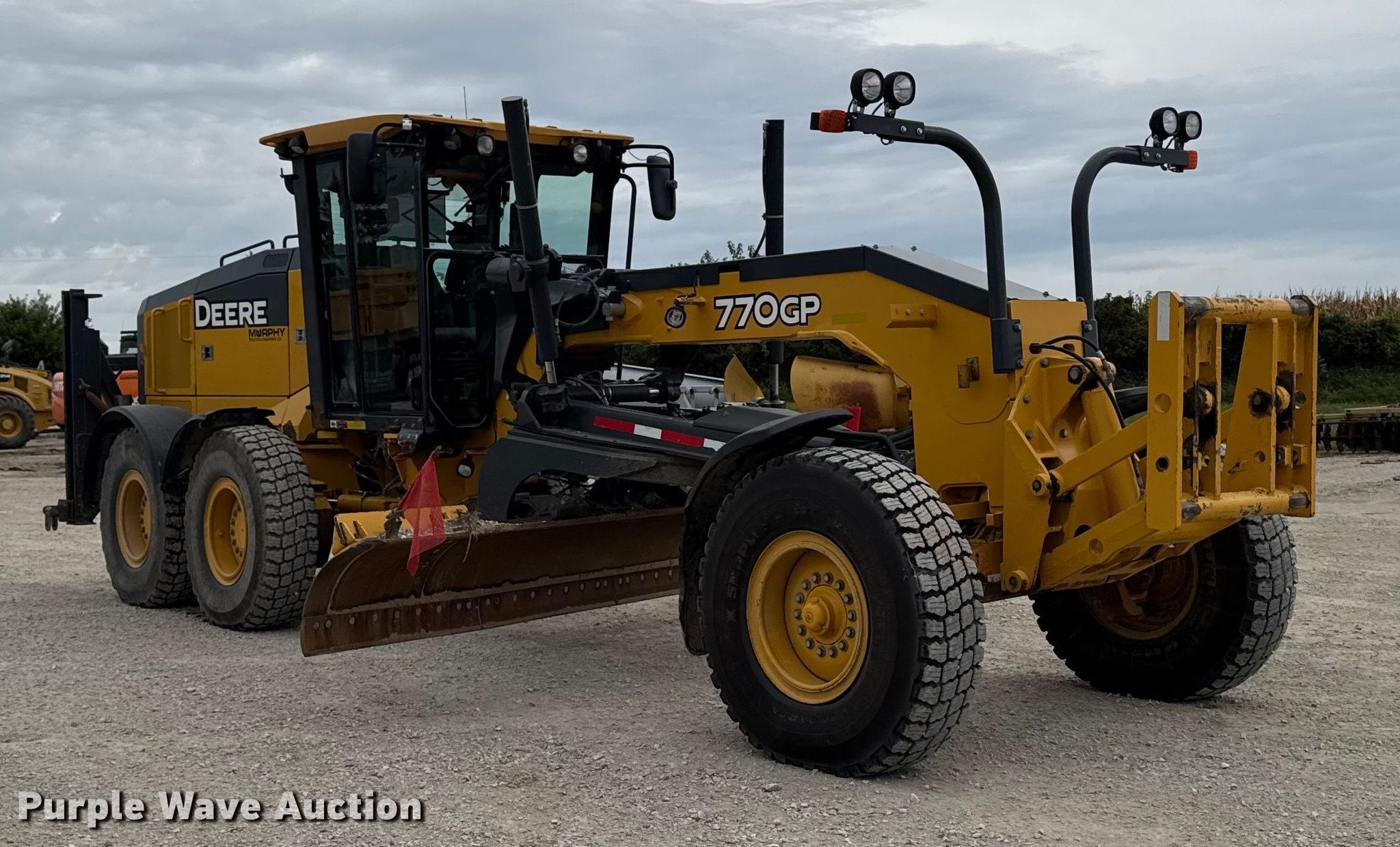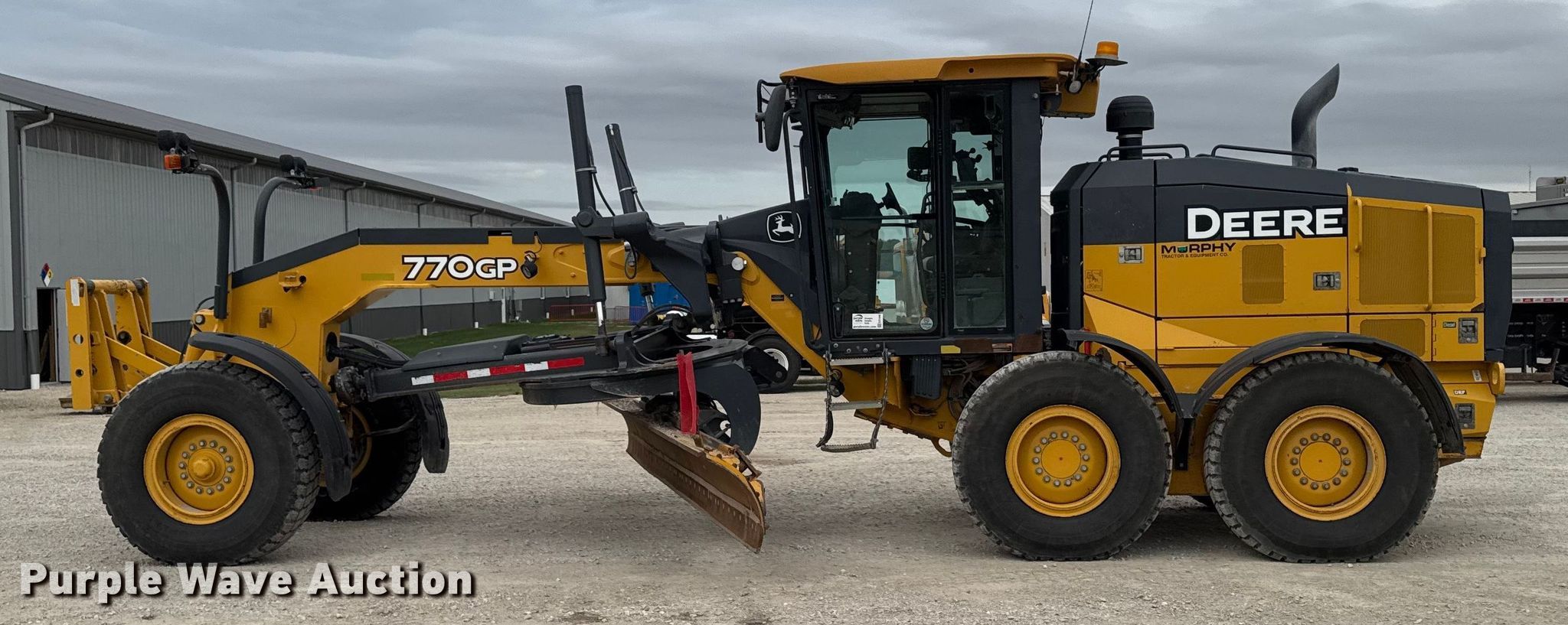 Purple Wave is selling a used Motor Grader in Iowa. This item is a 2015 John Deere 770GP motor grader with the following: Hours: 10,341 on meter, Serial: 1DW770GPKFF672652