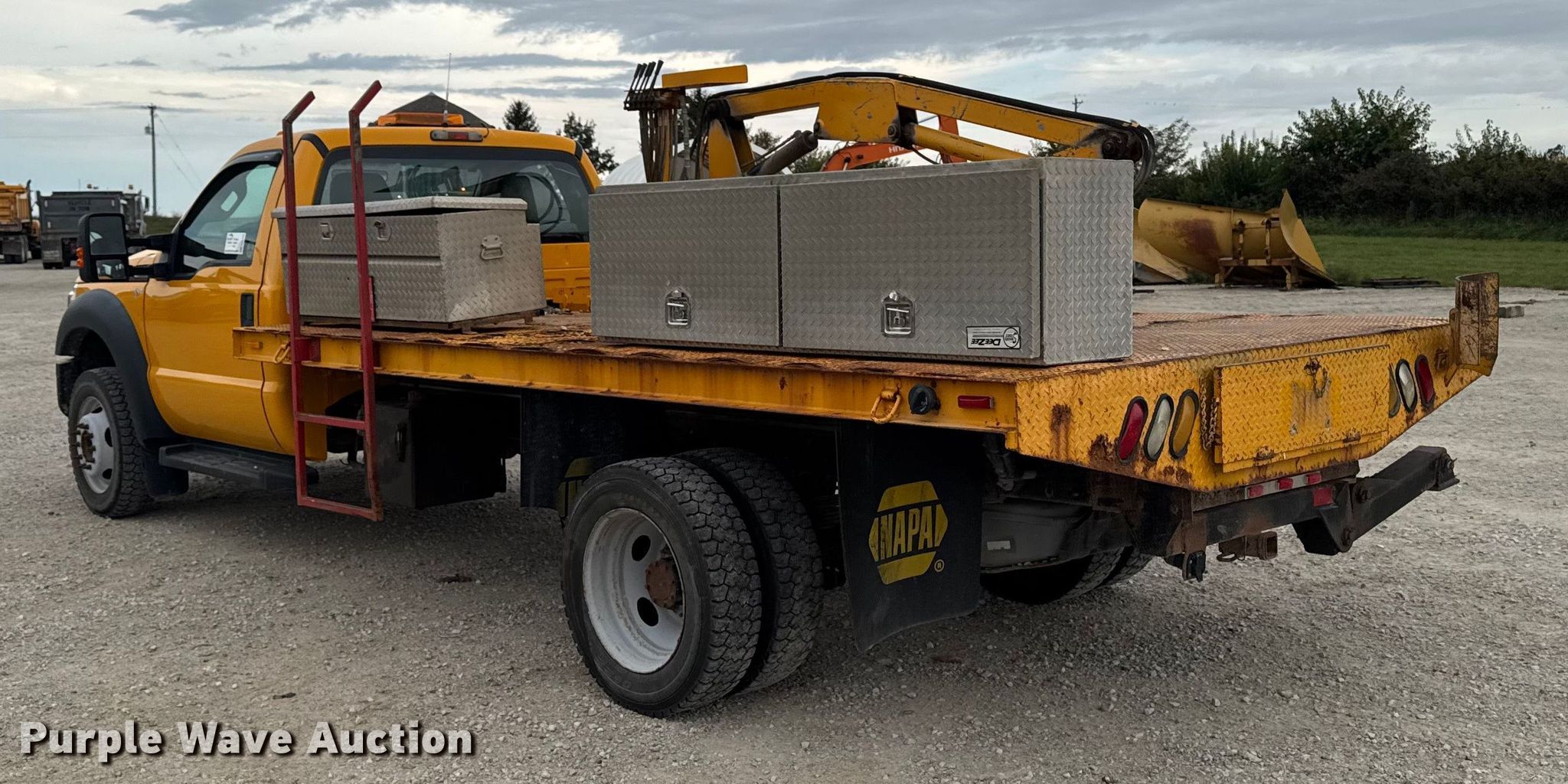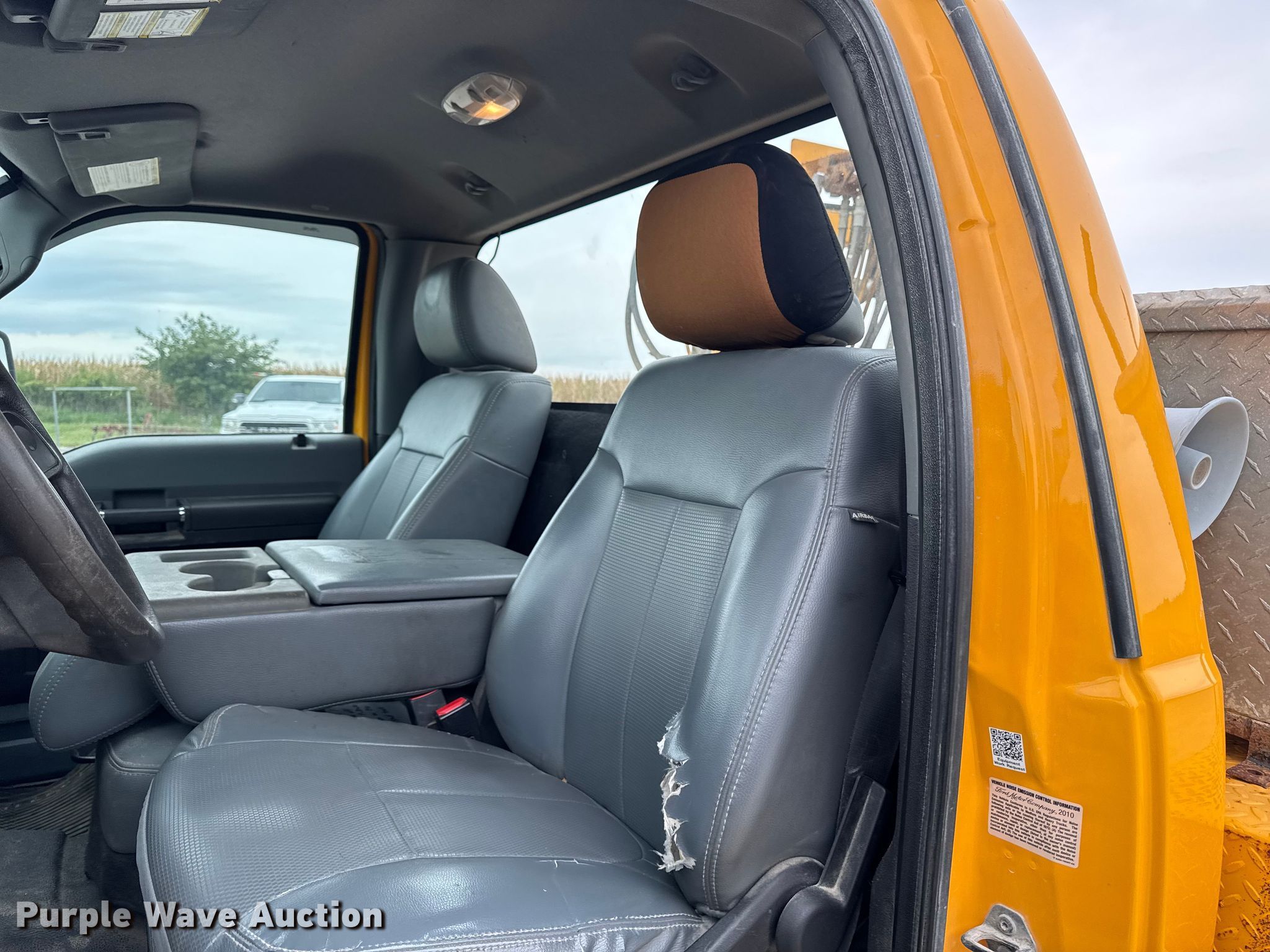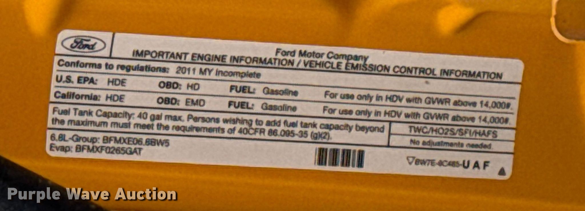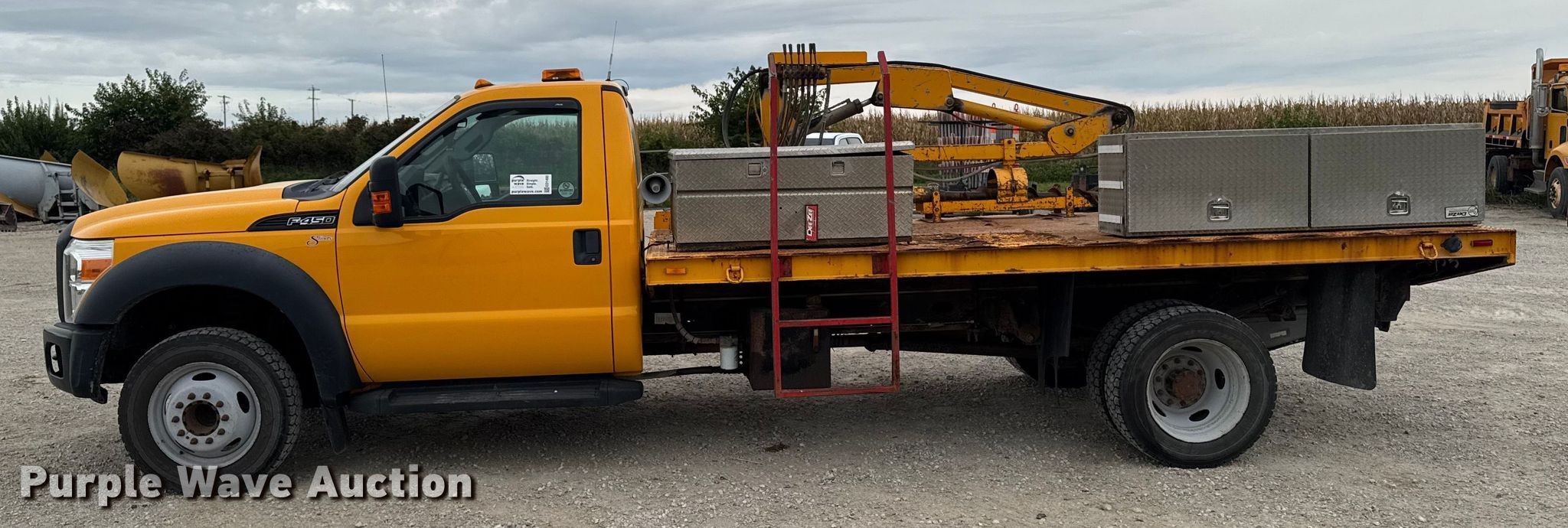 2011 Ford F450 Super Duty flatbed truck. Miles: 200,412 on odometer, VIN: 1FDUF4GY5BEA32303. Engine Ford, Displacement: 6.8L, Cylinders: 10, Fuel type: Gas. Transmission Automatic. Chassis Axles: Single, Suspension: Spring, Brakes: Hydraulic, PTO, GVWR: 16,500 lbs. Interior AC, Heat, Heated mirrors, Power windows, Power locks, Cruise control, Auxiliary controls, Brake controller. Features Bed Flatbed, Length: 14', Width: 96", Hydraulic auger Bit: 8". Tires Size: 225/70R19.5. Notes Toolboxes not attached, One toolbox does not open. Iowa title. Seller is a government entity who will be assigning and distributing the title. Please contact the seller for distribution questions. Title distribution may be delayed up to 14 days from verification of funds. Dallas County Secondary Roads. Dallas Center, IA 50063