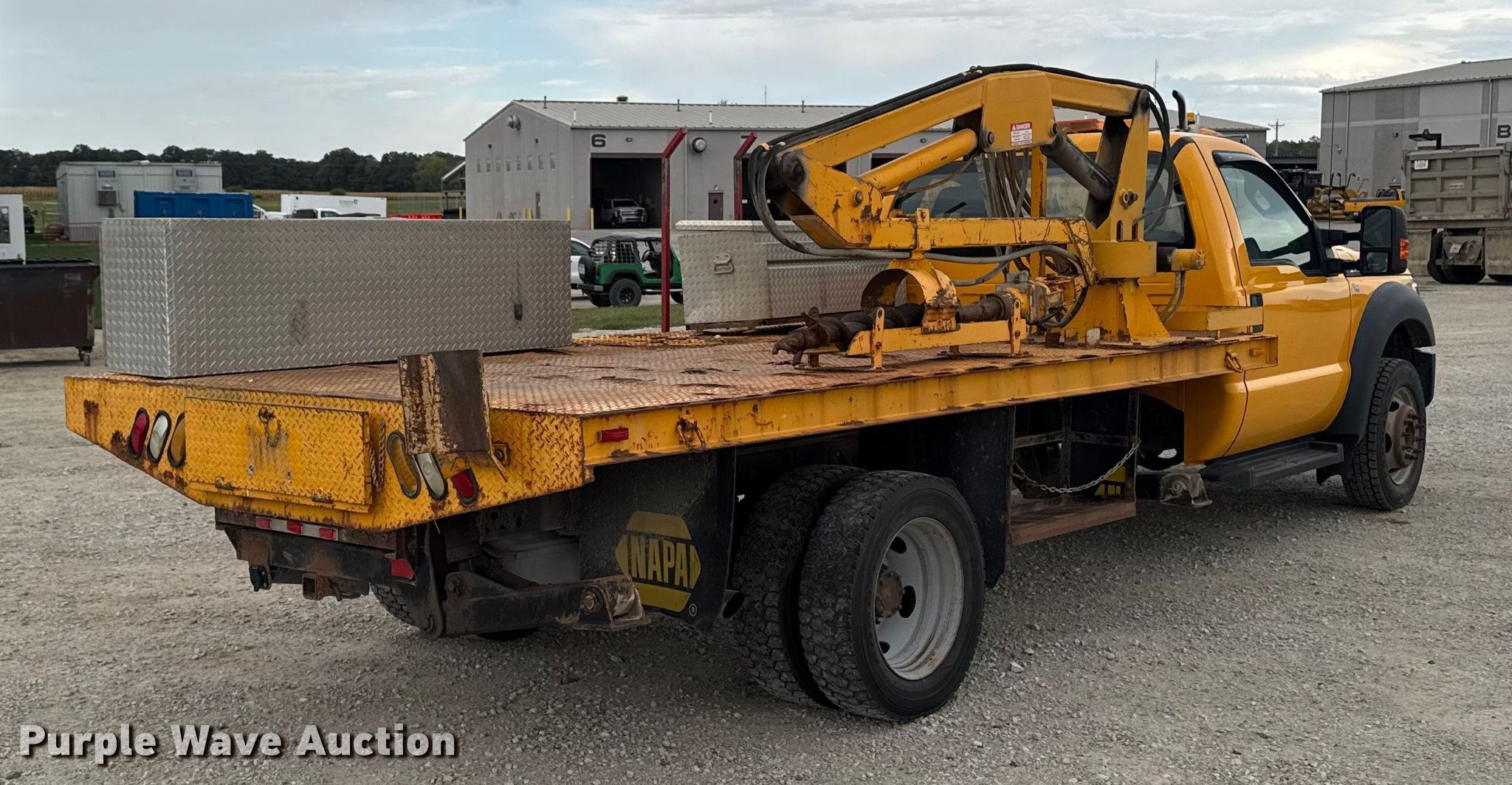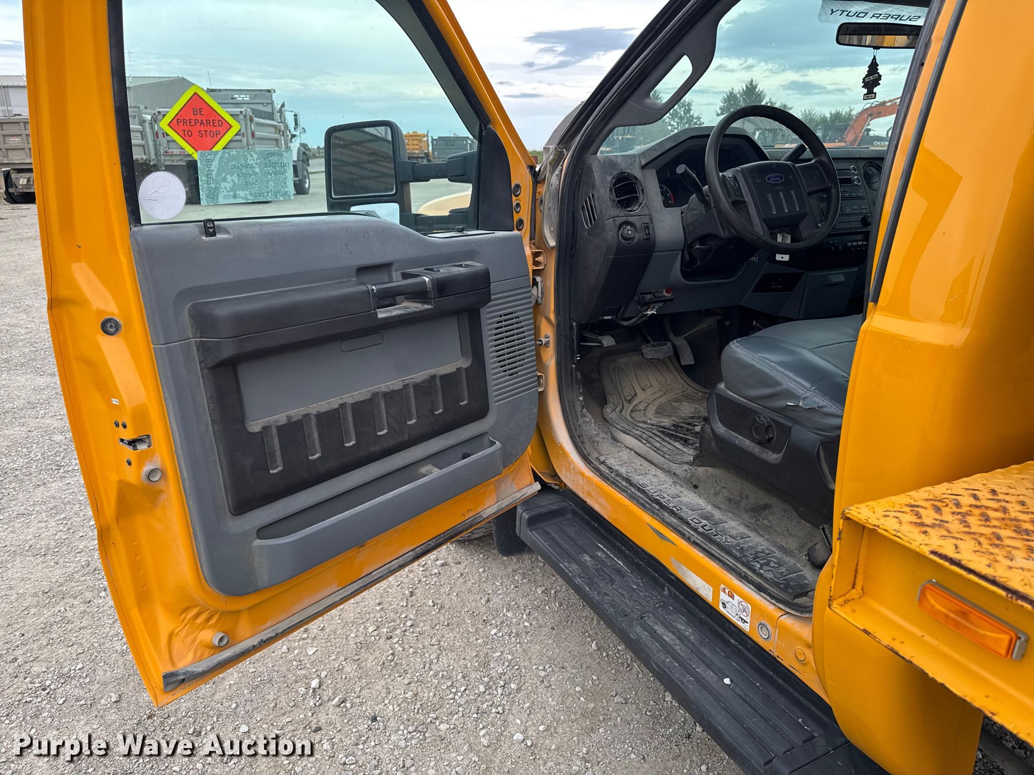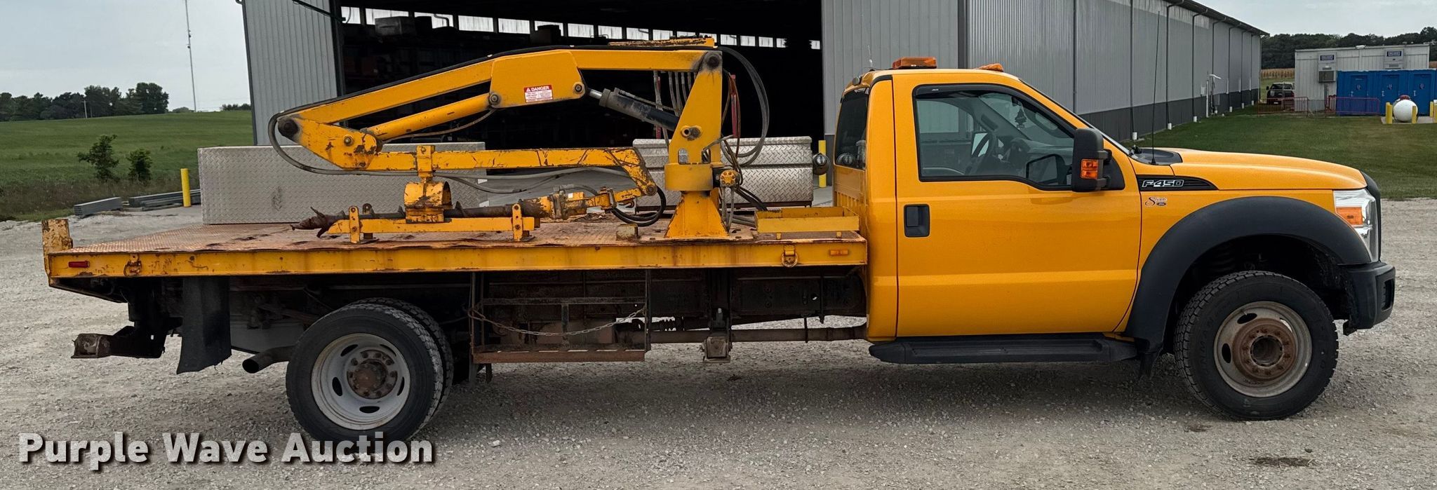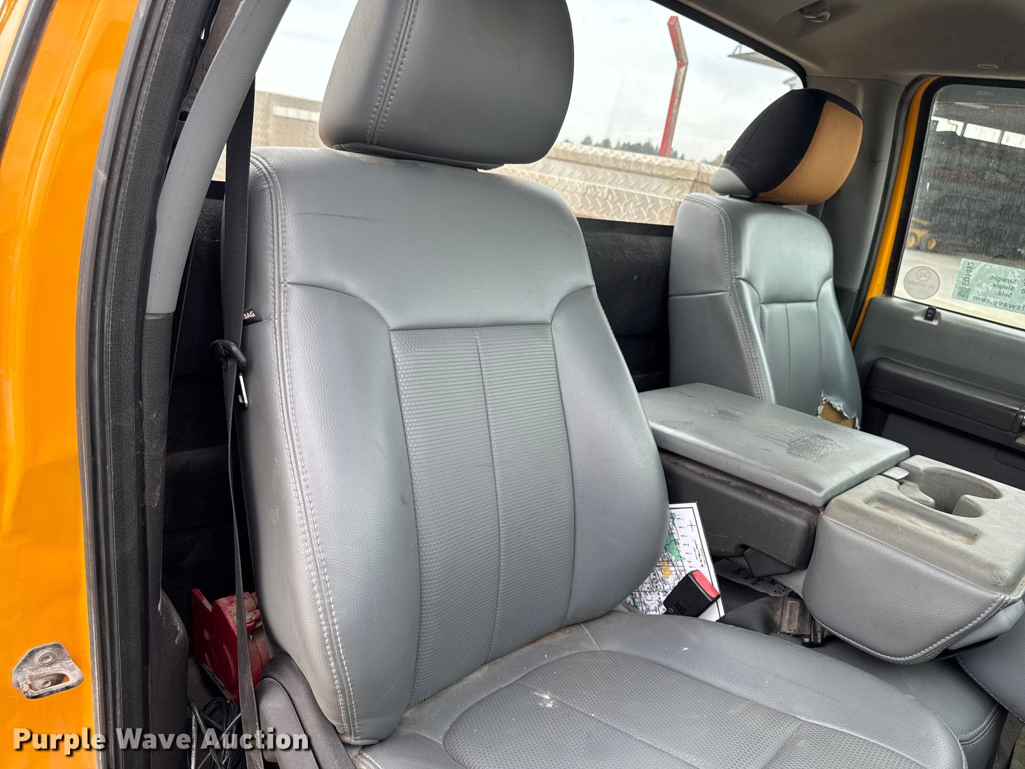 2011 Ford F450 Super Duty flatbed truck. Miles: 200,412 on odometer, VIN: 1FDUF4GY5BEA32303. Engine Ford, Displacement: 6.8L, Cylinders: 10, Fuel type: Gas. Transmission Automatic. Chassis Axles: Single, Suspension: Spring, Brakes: Hydraulic, PTO, GVWR: 16,500 lbs. Interior AC, Heat, Heated mirrors, Power windows, Power locks, Cruise control, Auxiliary controls, Brake controller. Features Bed Flatbed, Length: 14', Width: 96", Hydraulic auger Bit: 8". Tires Size: 225/70R19.5. Notes Toolboxes not attached, One toolbox does not open. Iowa title. Seller is a government entity who will be assigning and distributing the title. Please contact the seller for distribution questions. Title distribution may be delayed up to 14 days from verification of funds. Dallas County Secondary Roads. Dallas Center, IA 50063