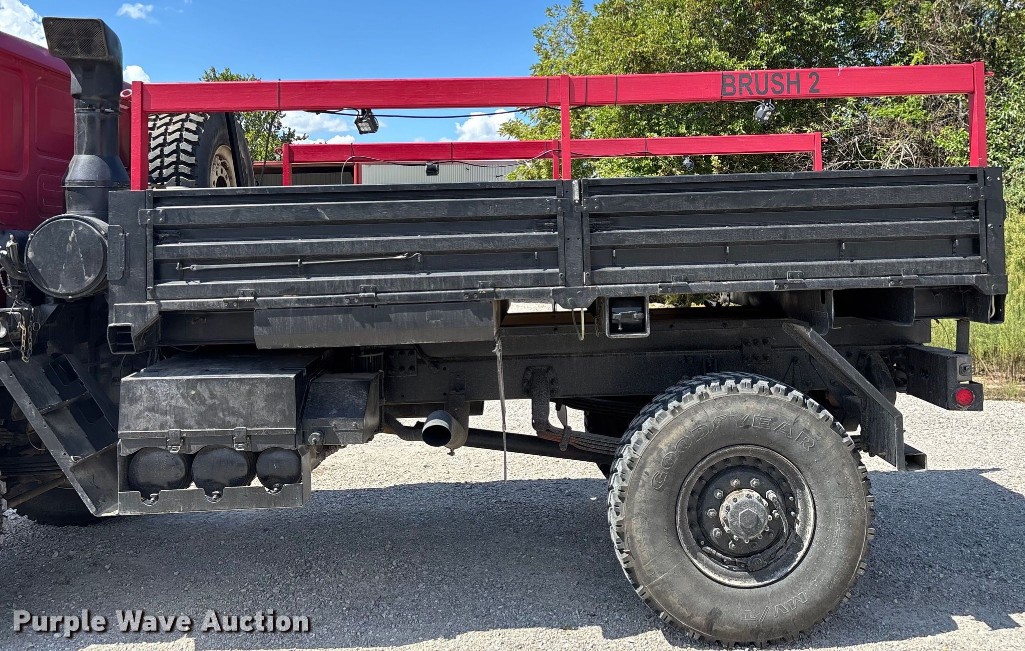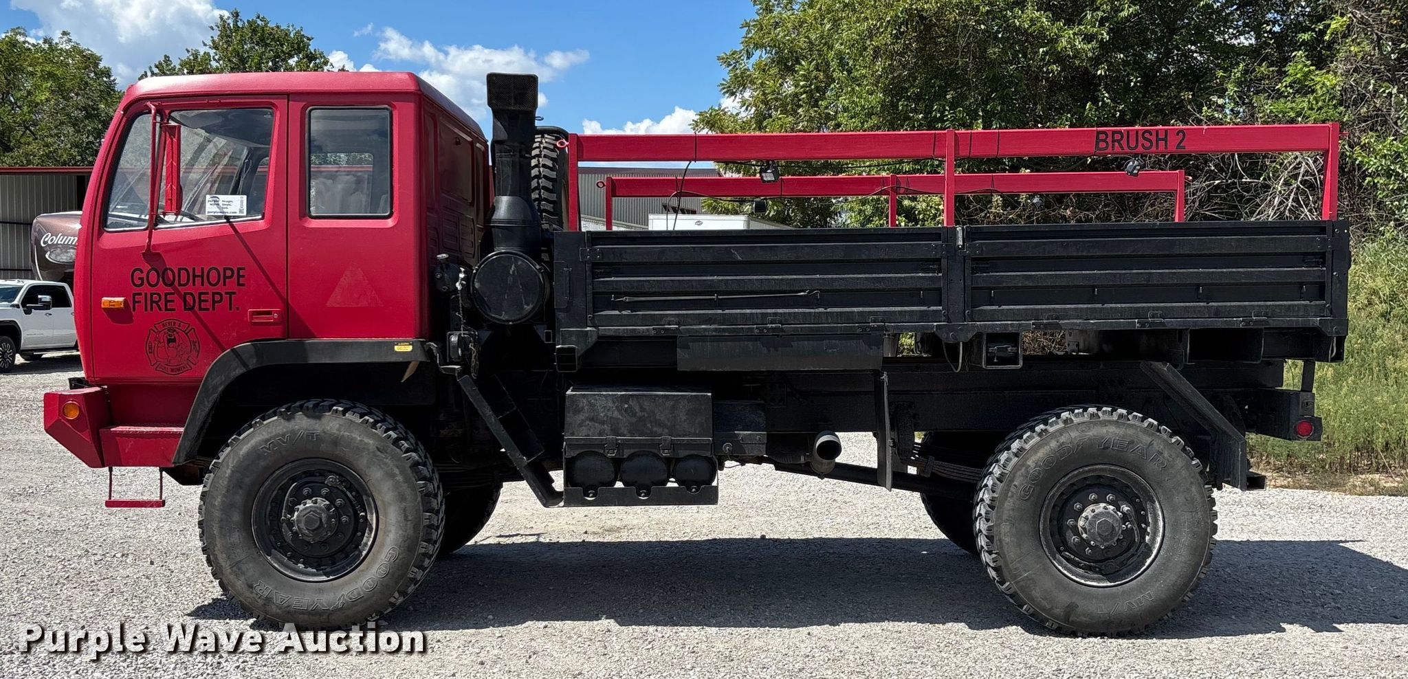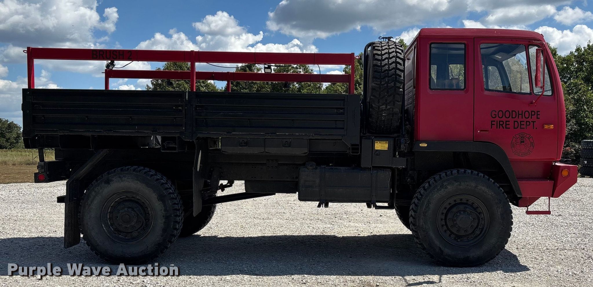 This 2003 Stewart & Stevenson M1078A1 brush fire truck will sell to the highest bidder regardless of price.