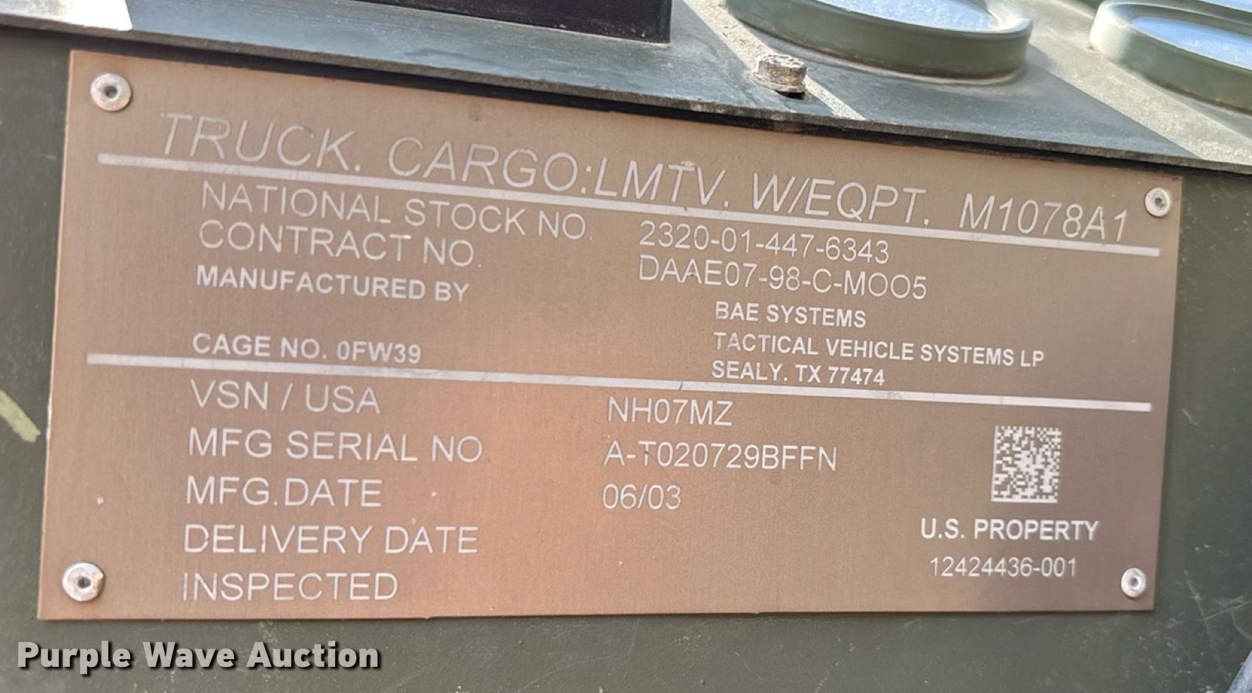 Take a look at this used 2003 Stewart & Stevenson M1078A1 brush fire truck being sold on October 14th, 2025 in the SOLD! October 14 Government Auction made by Stewart & Stevenson. Take a look at all of the item information below or take a look at similar auctions for Trucks.