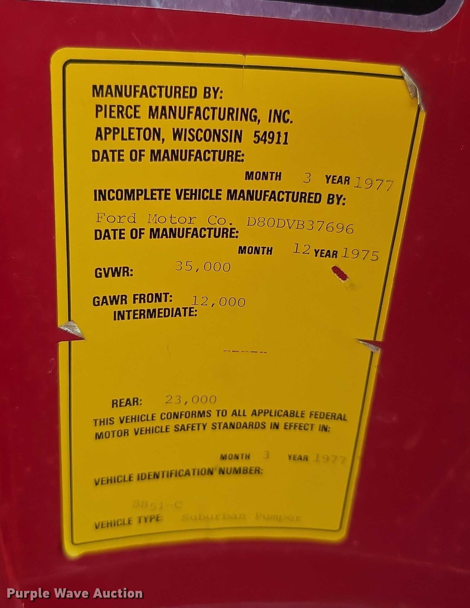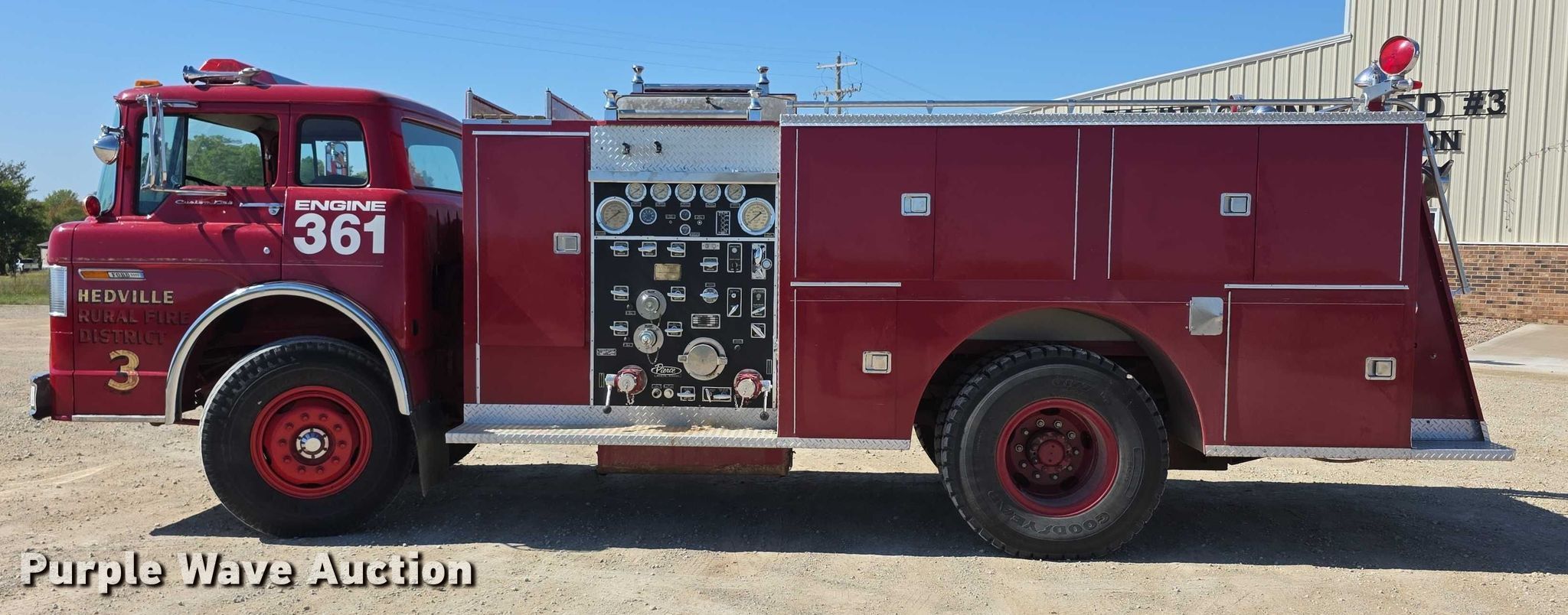 Purple Wave is selling a used Fire Truck or Emergency Vehicle in Kansas. This item is a 1976 Ford 8000 pumper fire truck with the following: Miles: 26,510 on odometer, VIN: D80DVB37696, Unit #: 361
