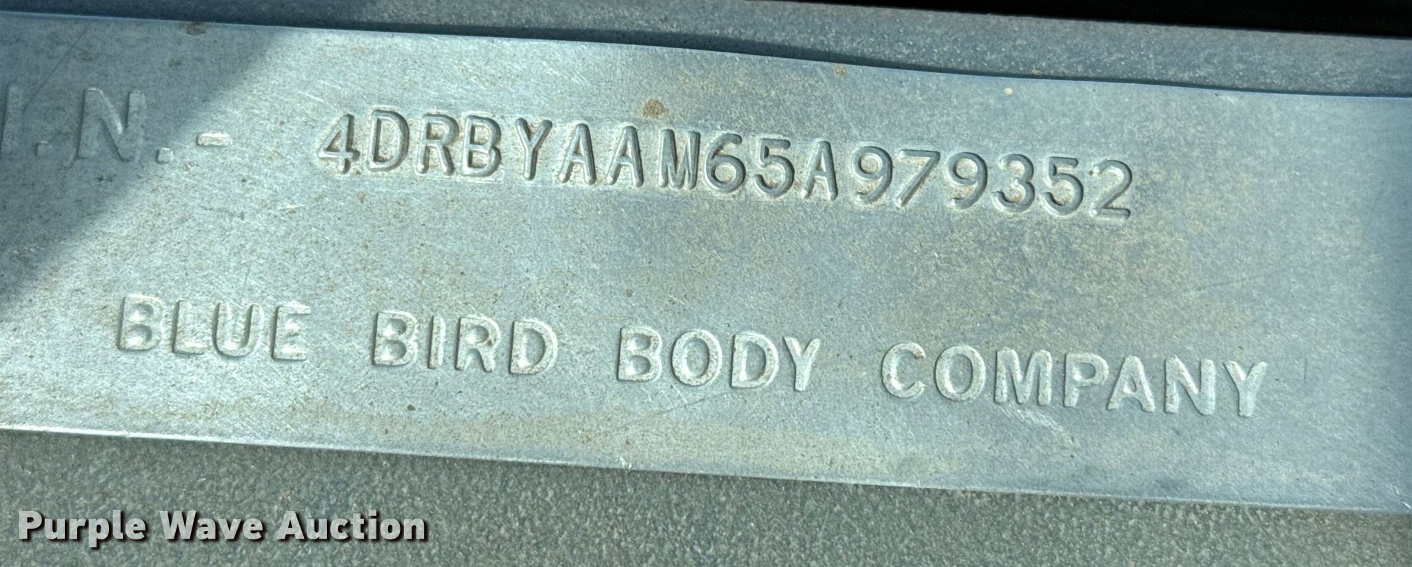 2005 Blue Bird school bus. Miles: 232,050 on odometer, VIN: 4DRBYAAM65A979352. Engine International DT466, Displacement: 7.6L, Cylinders: 6, Fuel type: Diesel. Transmission Automatic. Chassis Axles: Single, Suspension: Spring, Brakes: Air. Interior Heat, Heated mirrors, Cruise control, Passengers: 35. Tires Size: 10R22.5. Notes Fuel rail issues, needs replaced, Unit must be towed or hauled , Non-operational unit. Kansas title. Title distribution may be delayed up to 14 days from verification of funds. USD 467 - Leoti. Leoti, KS 67861