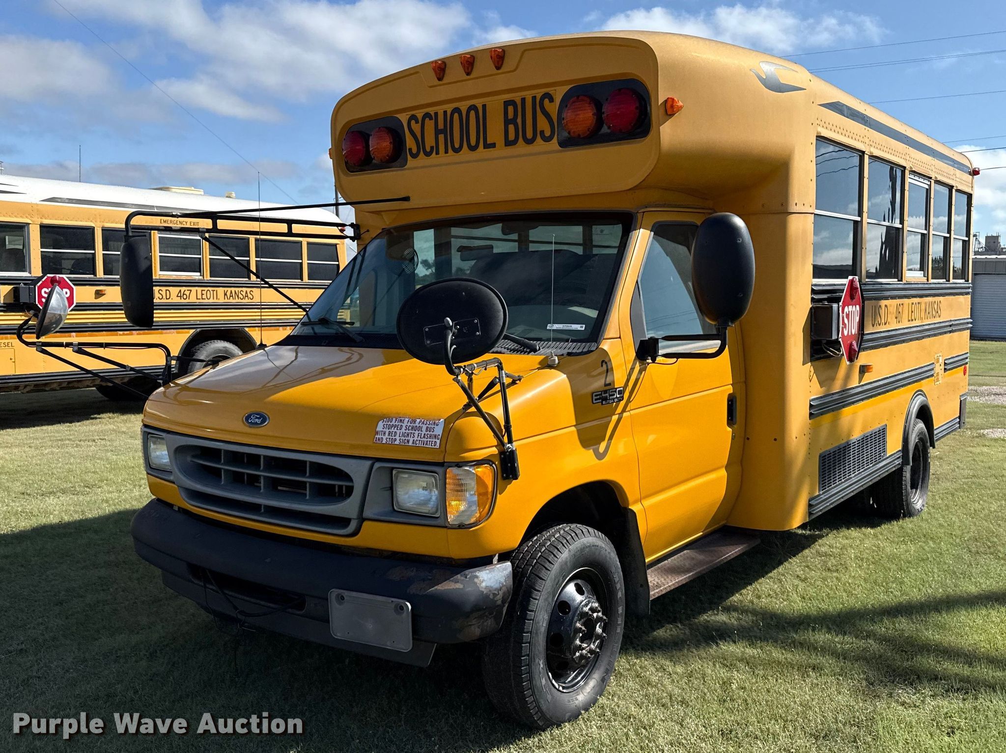 Purple Wave is selling a used Bus in Kansas. This item is a 2001 Ford school bus with the following: Miles: 147,939 on odometer, VIN: 1FDXE45F51HB40791