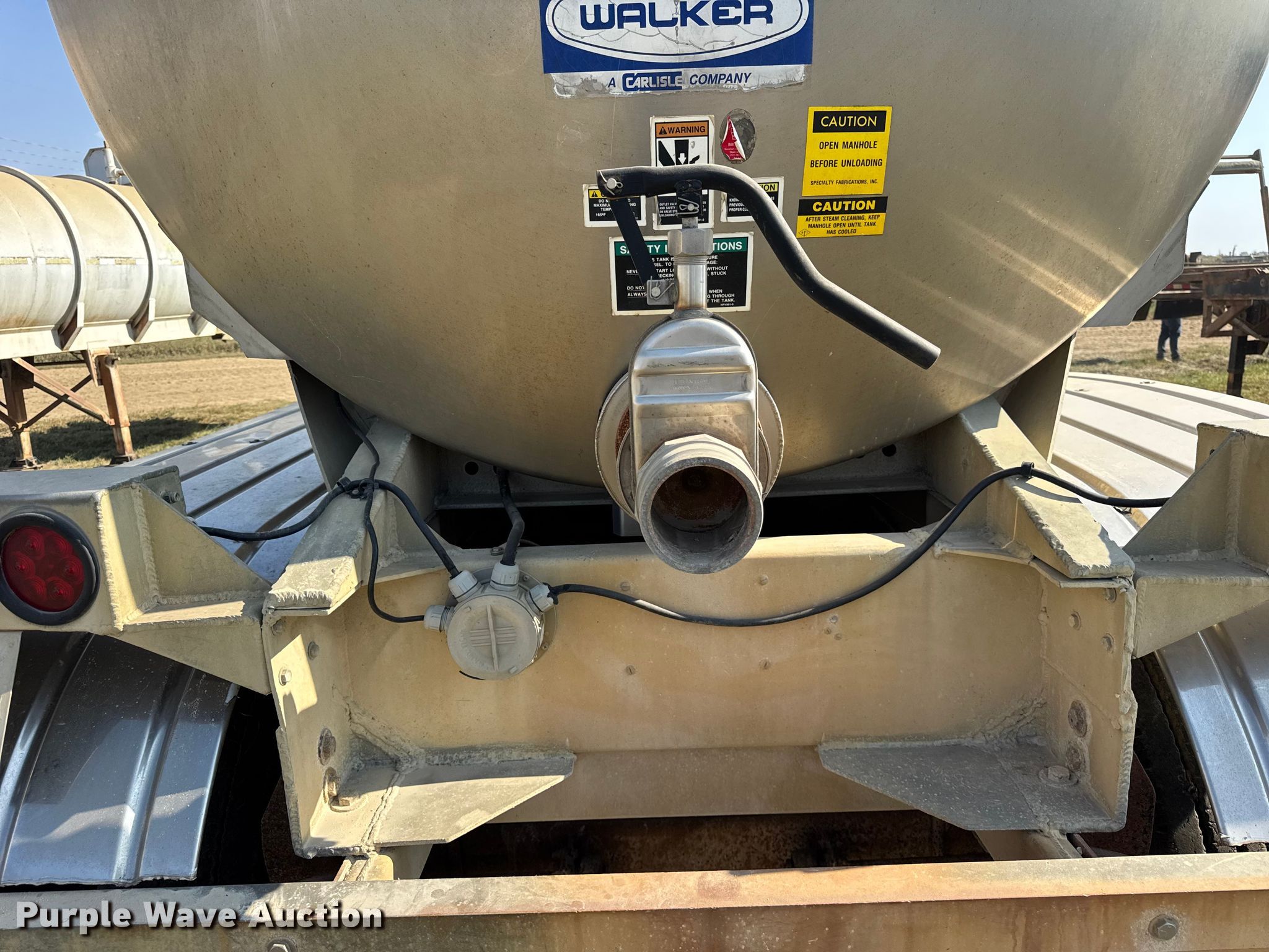 1983 Walker tank trailer. VIN: 1W9S82AU3D0007094. Dimensions Overall Length: 40', Width: 96". Features Tank type: Aluminum Capacity: 6,000 gallons, Compartments: 1, Outlet valves: 1 Size: 4", No. of manways/manholes: 1, Outlet size: 4". Chassis Landing gear: Dual, Suspension: Spring, Brakes: Air, Axles: Tandem. Tires Steel wheels, Size: 11R22.5. Notes Frame issues, cracked. Illinois title. Title distribution may be delayed up to 14 days from verification of funds. Knox County Landfill. Oneida, IL 61467