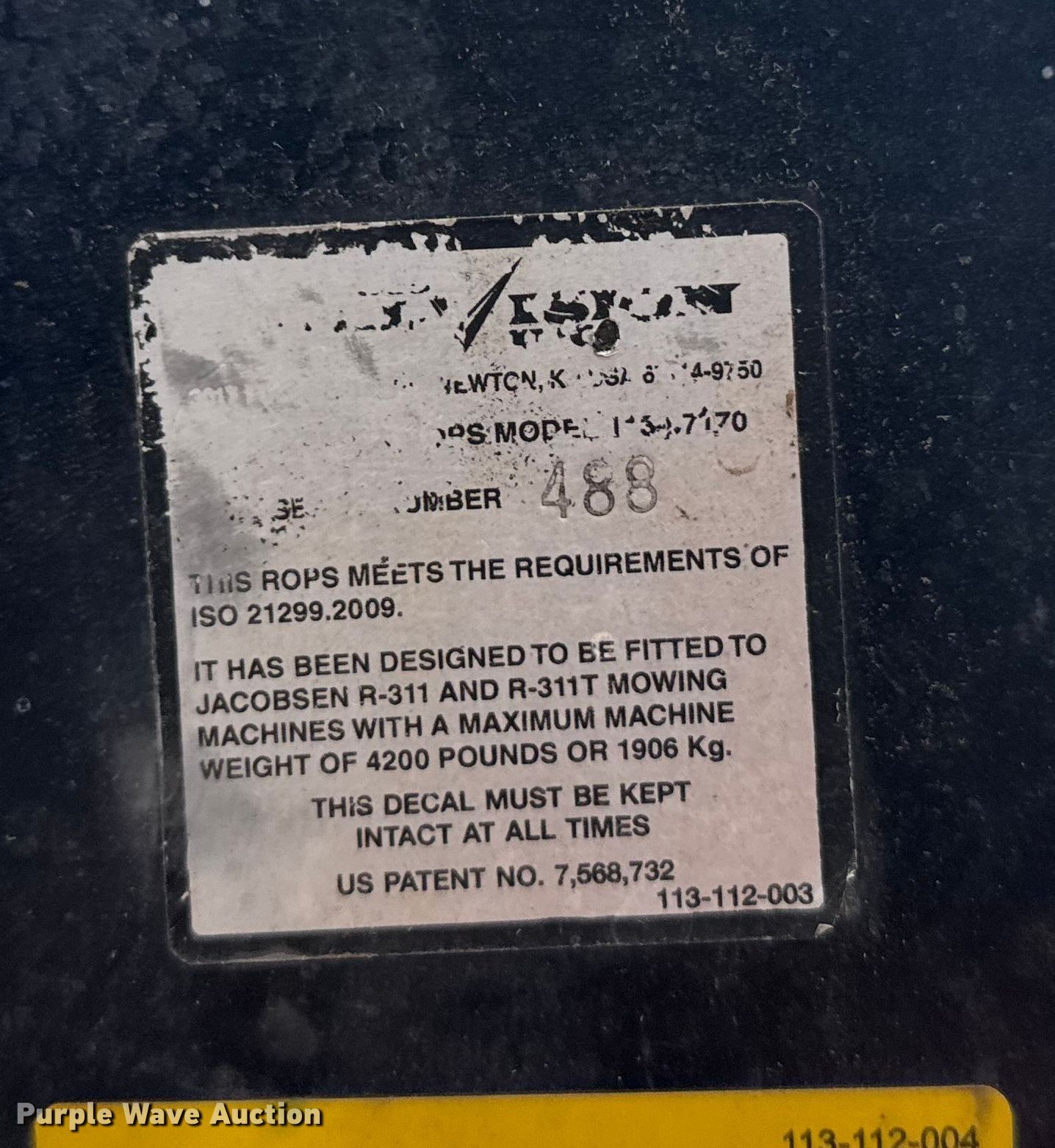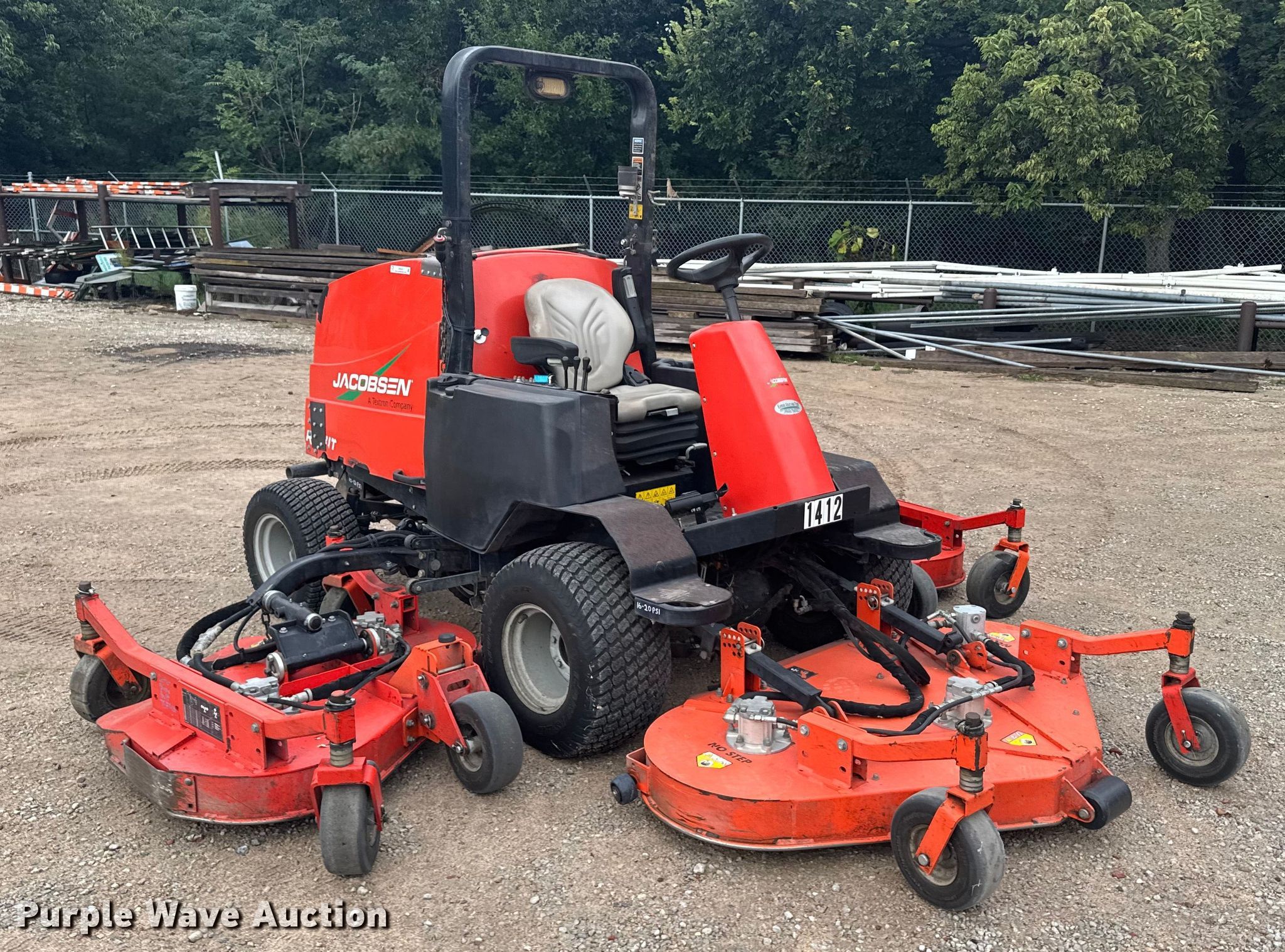 Purple Wave is selling a used Commercial Turf Mower in Kansas. This item is a Jacobsen lawn mower with the following: Hours: 3,296 on meter, Cutting width: 131", Serial: 06917101852