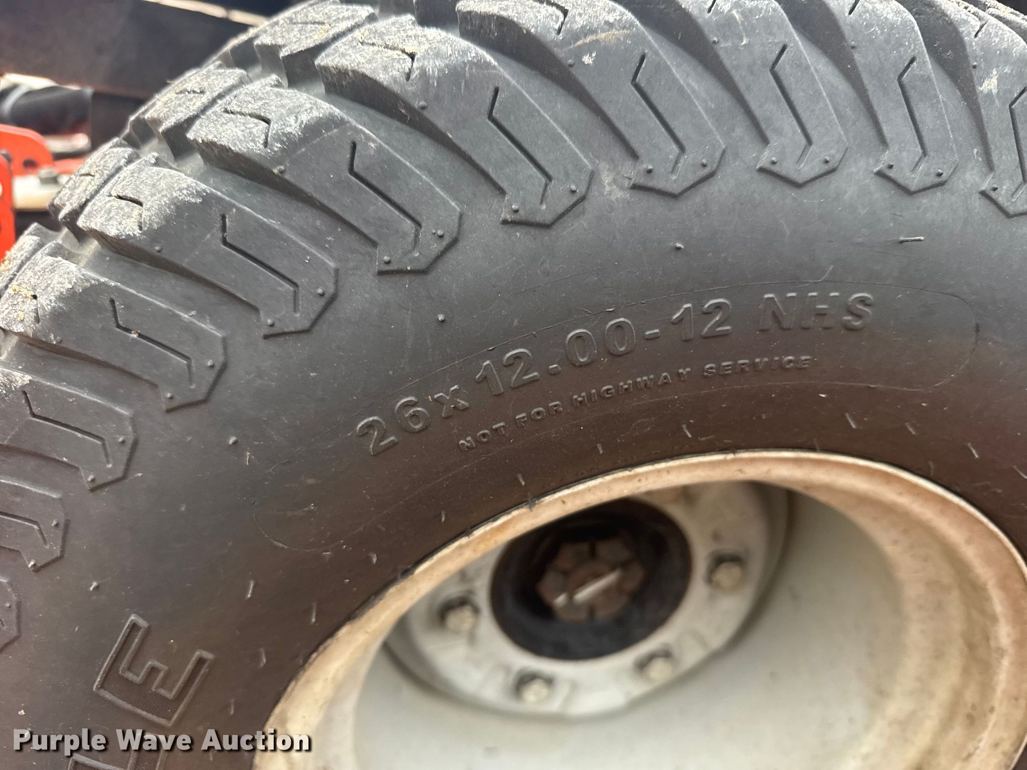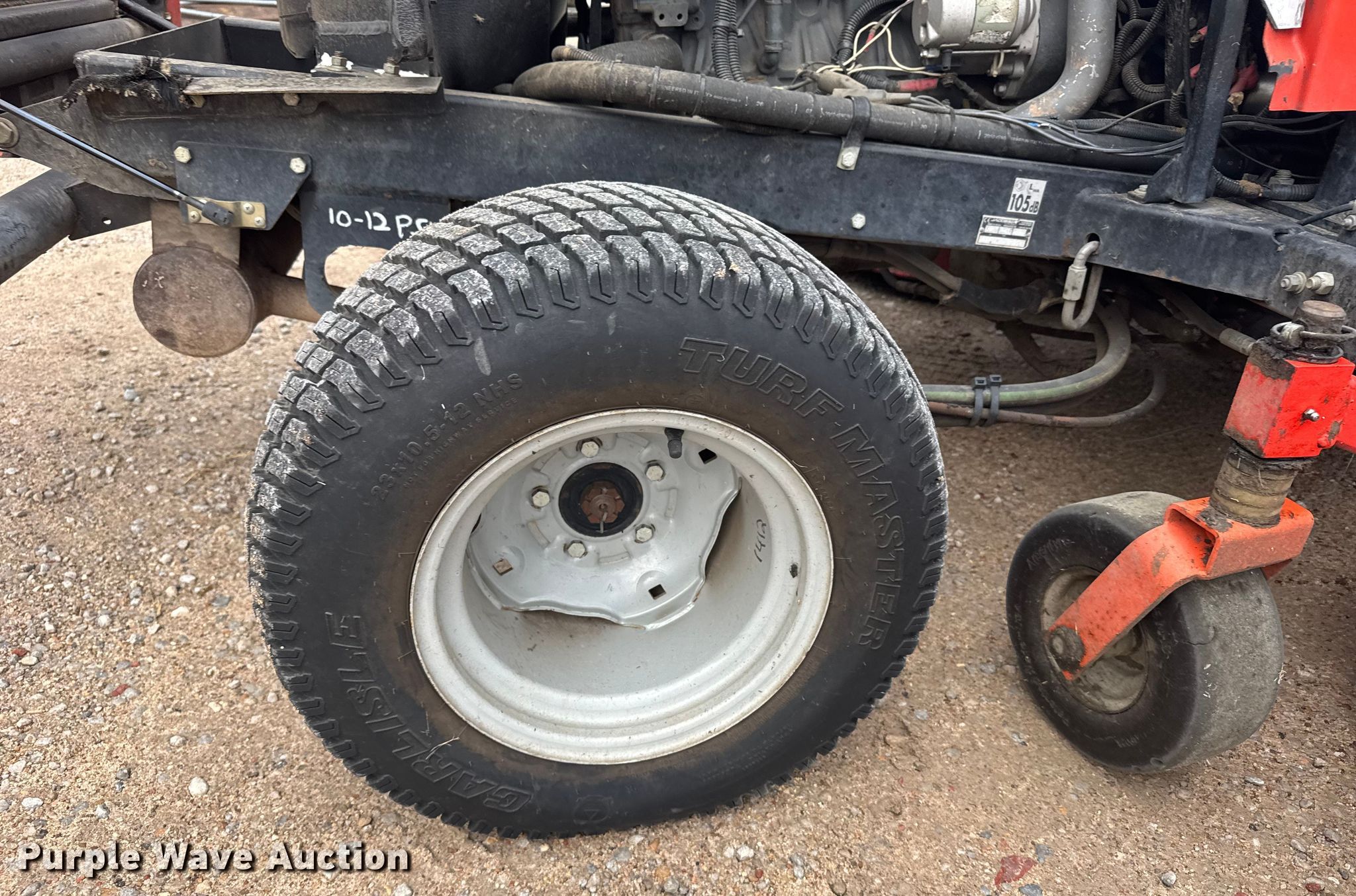 Jacobsen lawn mower. Hours: 3,296 on meter, Cutting width: 131", Serial: 06917101852. Engine Kubota V2403-M-T-ET06, Serial: AW0364, Displacement: 2.4L, Cylinders: 4, Fuel type: Diesel, kW: 41.7. Transmission Hydrostatic. Chassis Four wheel drive. Operators station OROPS. Features Hydraulic fold decks, Hydraulic front deck lift. Tires Front: 26x12.00-12, Rear: 23x10.5-12. Notes Additional tires, wheels, and parts. Hays, KS 67601