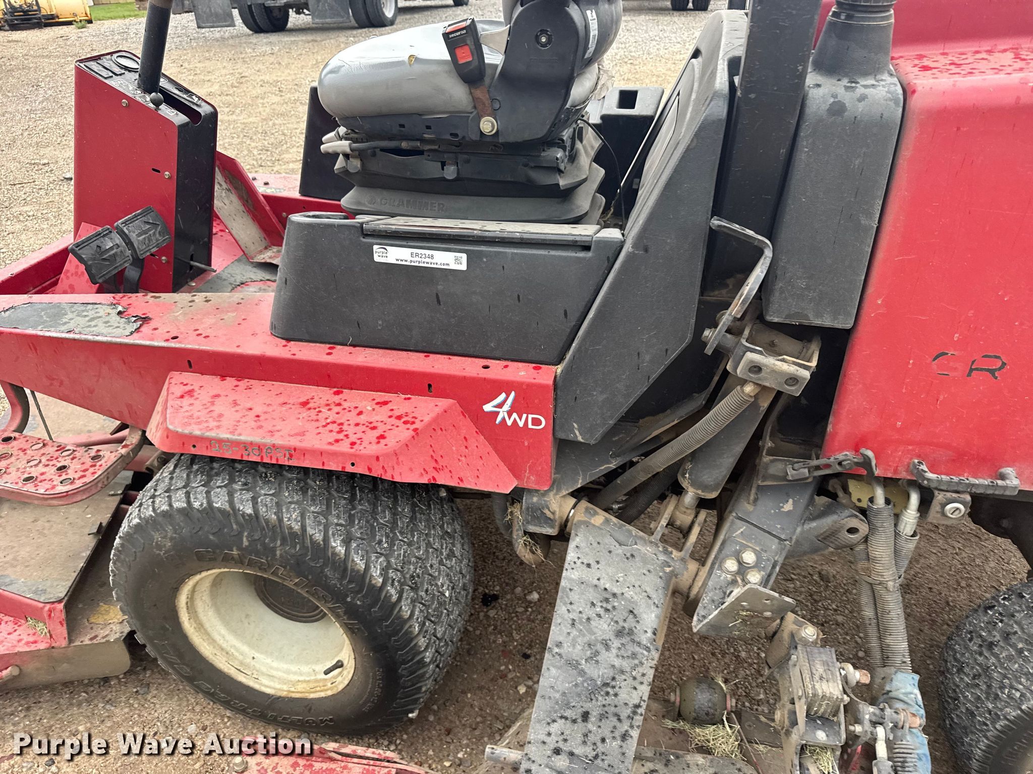 Toro Groundsmaster 4000-D lawn mower. Hours: 4,762 on meter, Cutting width: 131", Serial: 30412-290000337. Engine Cylinders: 4, Fuel type: Diesel. Transmission Hydrostatic. Chassis Four wheel drive. Features Hydraulic fold decks, Hydraulic front deck lift. Tires Front: 20x10.00-10, Rear: 26x12.00-10. Hays, KS 67601