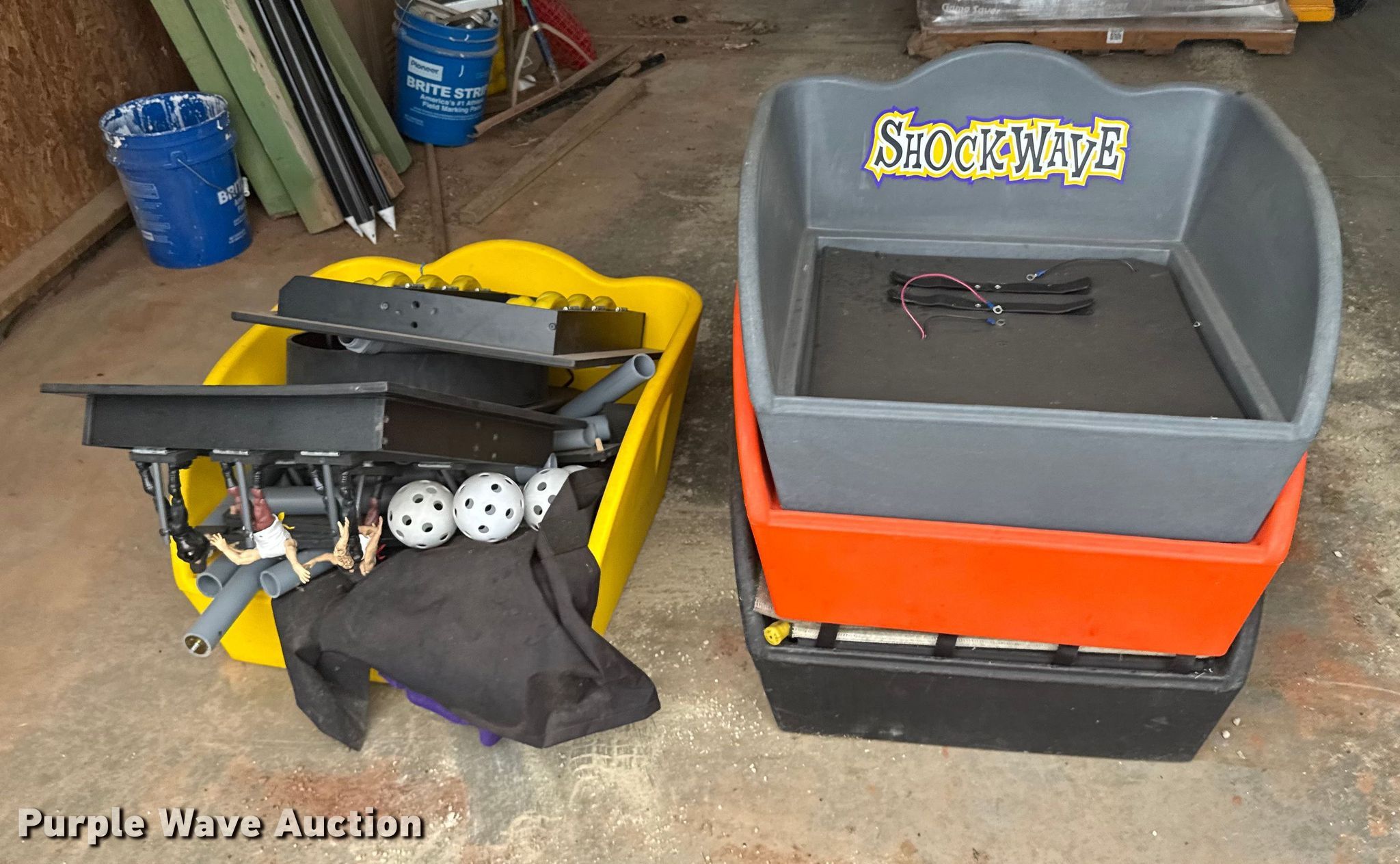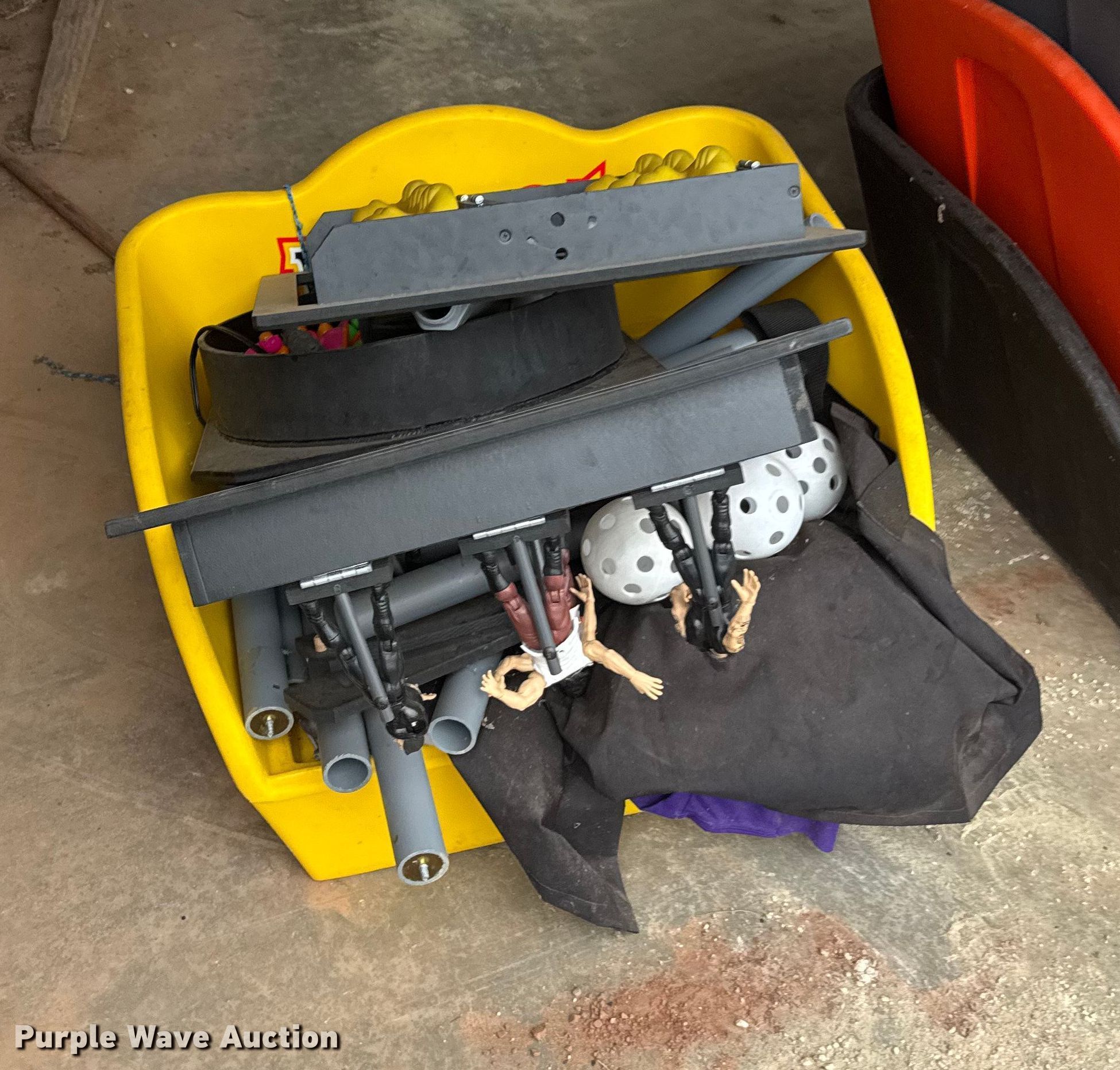 Purple Wave is selling a used Sporting Goods in Kansas. This item is a Sporting goods with the following: Pitching machine, Non-operational LCD screen, Outdoors tub games