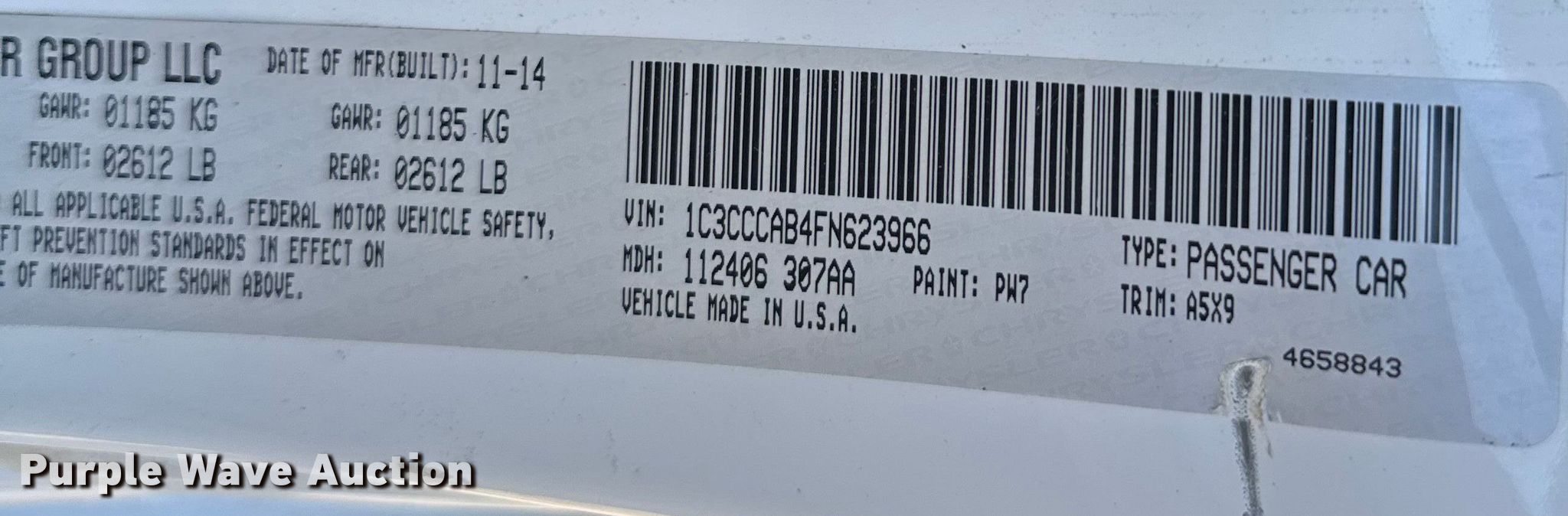 - VIN: 1C3CCCAB4FN623966