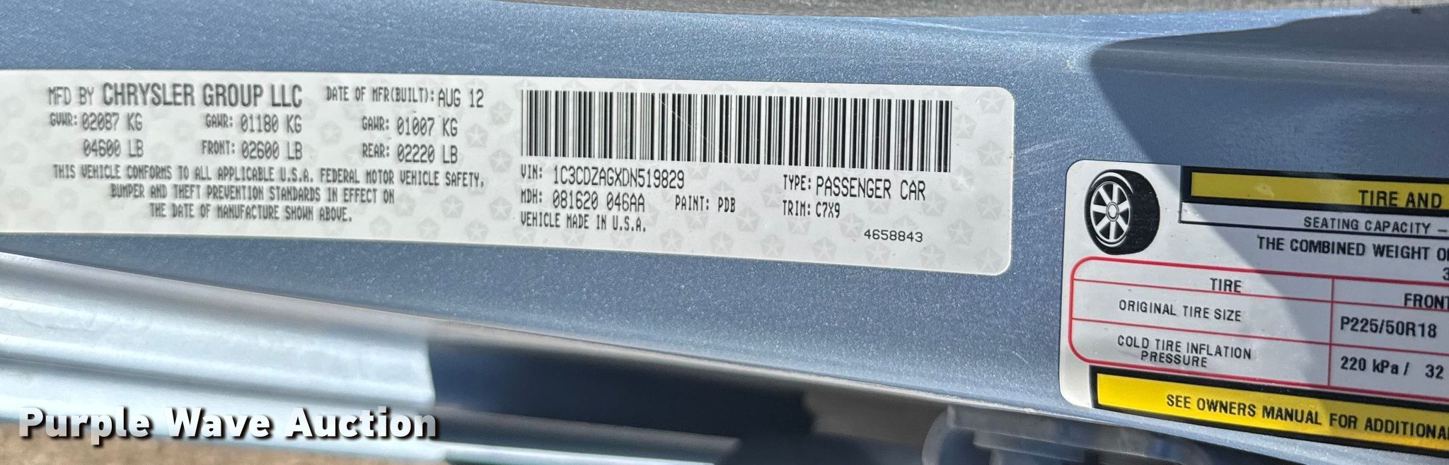 Purple Wave is selling a used Passenger Vehicle in Kansas. This item is a 2013 Dodge Avenger with the following: Miles: Actual unknown, VIN: 1C3CDZAGXDN519829