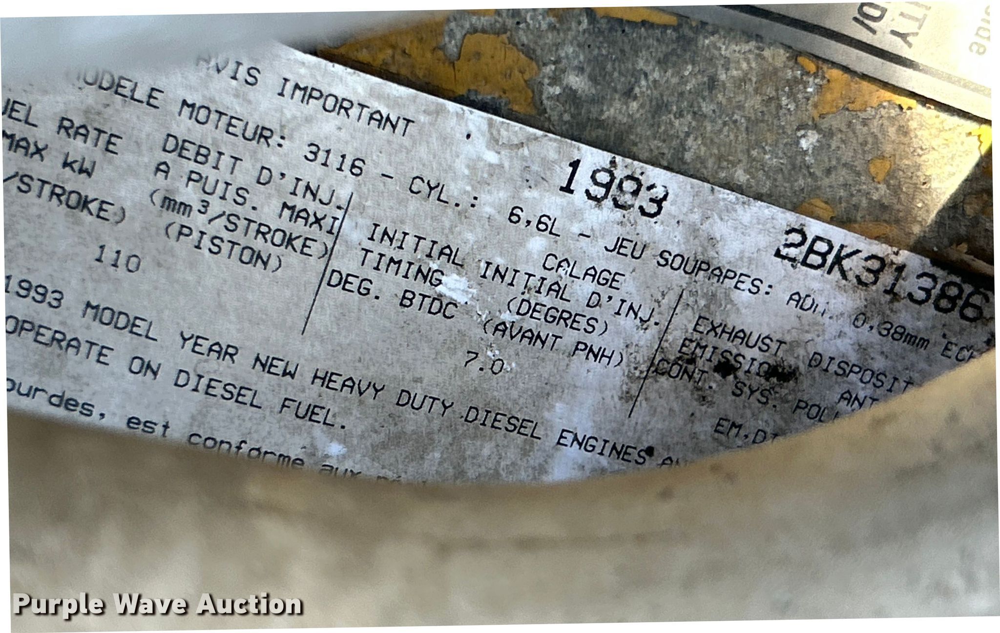 1993 Chevrolet Kodiak C6500 dump truck. Miles: 54,763 on odometer, VIN: 1GBM7H1J1PJ107800. Engine Caterpillar 3116, Serial: 2BK31386, Displacement: 6.6L, Cylinders: 6, Fuel type: Diesel. Transmission Automatic. Chassis Axles: Single, Suspension: Spring, Brakes: Air, PTO, GVWR: 29,900 lbs FAWR: 10,860 lbs, RAWR: 19,040 lbs. Interior AC, Heat. Features Bed Dump bed, Length: 10', Width: 95", Side height: 27", Side board height: 18", Bed type: Steel, Ram: Single, End gate: Manual. Tires Front: 10R20, Rear: 11R22.5. Notes Possible injector issues, Possible engine issues, turns over but will not start , Unit must be towed or hauled , Non-operational unit. Missouri title. Seller is a government entity who will be assigning and distributing the title. Please contact the seller for distribution questions. Title distribution may be delayed up to 14 days from verification of funds. City of Washington, MO. Washington, MO 63090