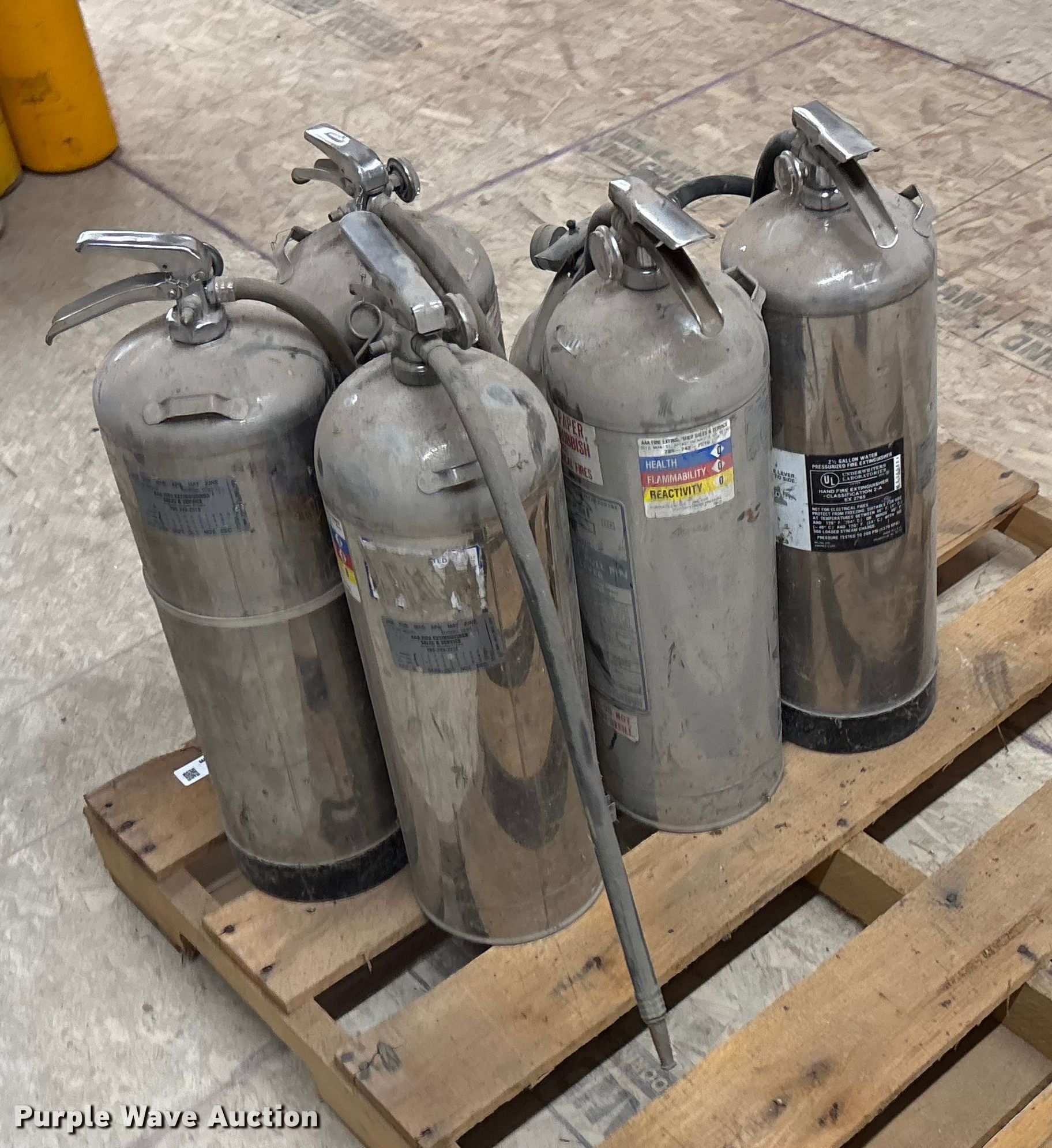Purple Wave is selling a used Tools in Kansas. This item is a Fire Extinguishers (6) fire extinguishers with the following: (5) 2.5 gallons, 1 gallon, Class A