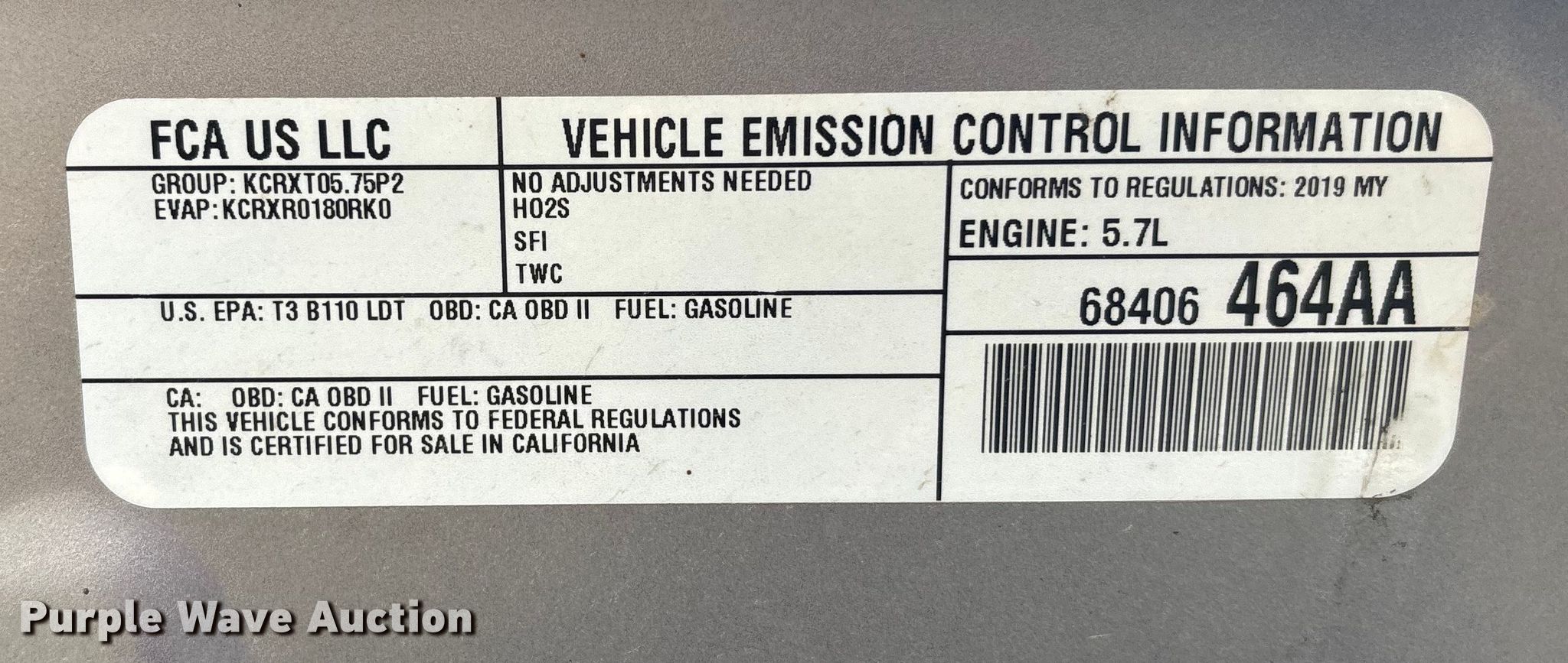 2019 Dodge Durango SSV SUV. Miles: 120,985 on odometer, VIN: 1C4SDJFT8KC705716. Engine Displacement: 5.7L V8 SOHC, Cylinders: 8, Fuel type: Gas, HP: 360. Transmission Automatic, All wheel drive. Interior AC, Heat, Seat: Power driver, Power windows, Power locks, Cruise control, Backup camera. Tires Size: 265/65R18. Notes Engine issues, knocking , Possible electrical issues Passenger window issues, rolls down randomly, Dash warning indicator: Traction control, Service AWD, Jump start required during on-site data collection. Kansas title. Title distribution may be delayed up to 14 days from verification of funds. Rice County Sheriff's Office. Lyons, KS 67554