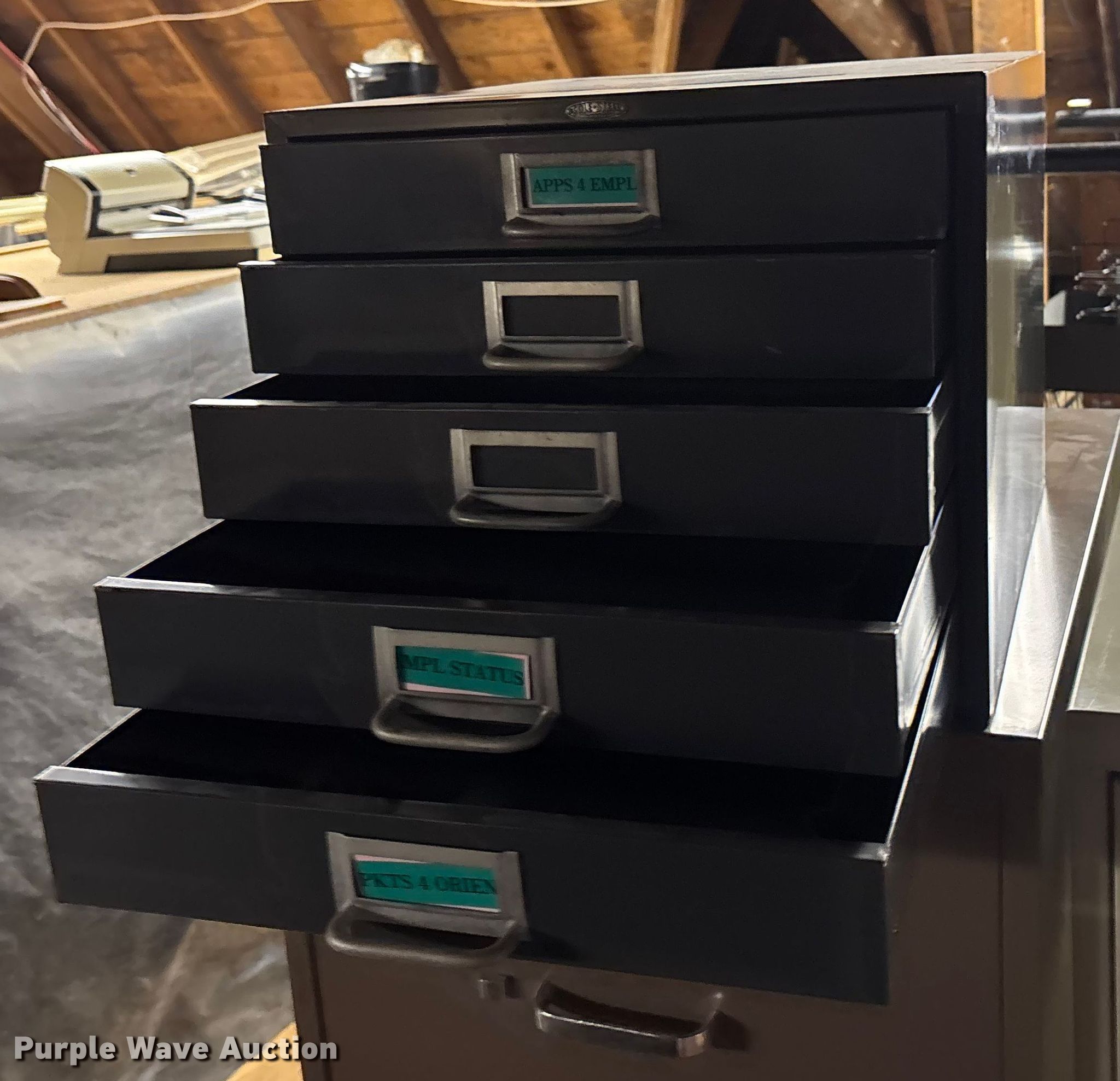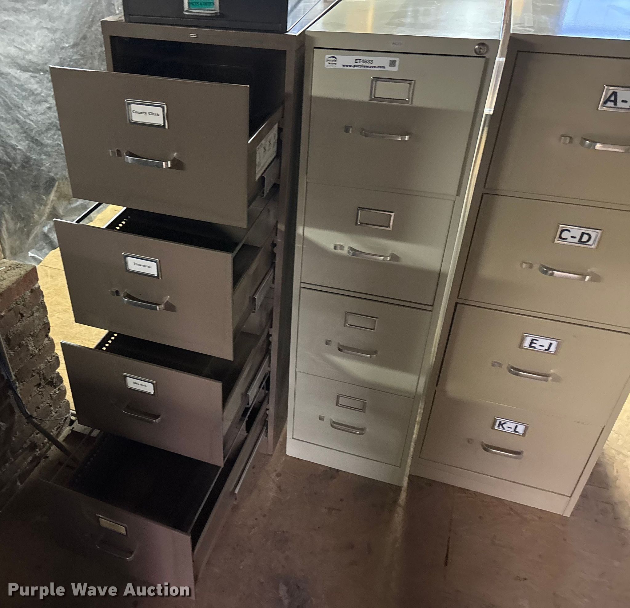 Purple Wave is selling a used Office Supplies and Equip. in Kansas. This item is a (4) filing cabinets with the following: (4) filing cabinets. Rice County Courthouse. Lyons, KS 67554