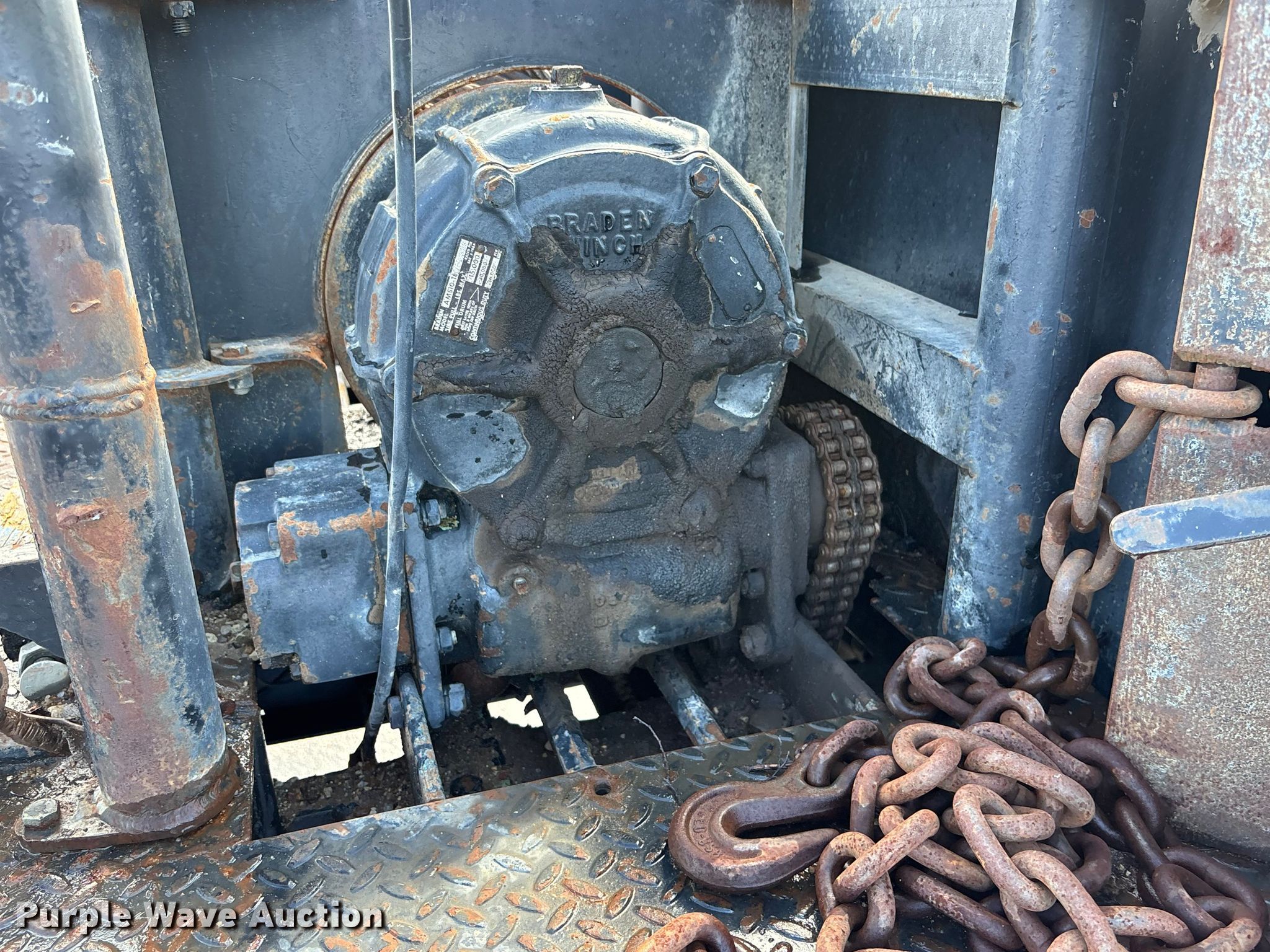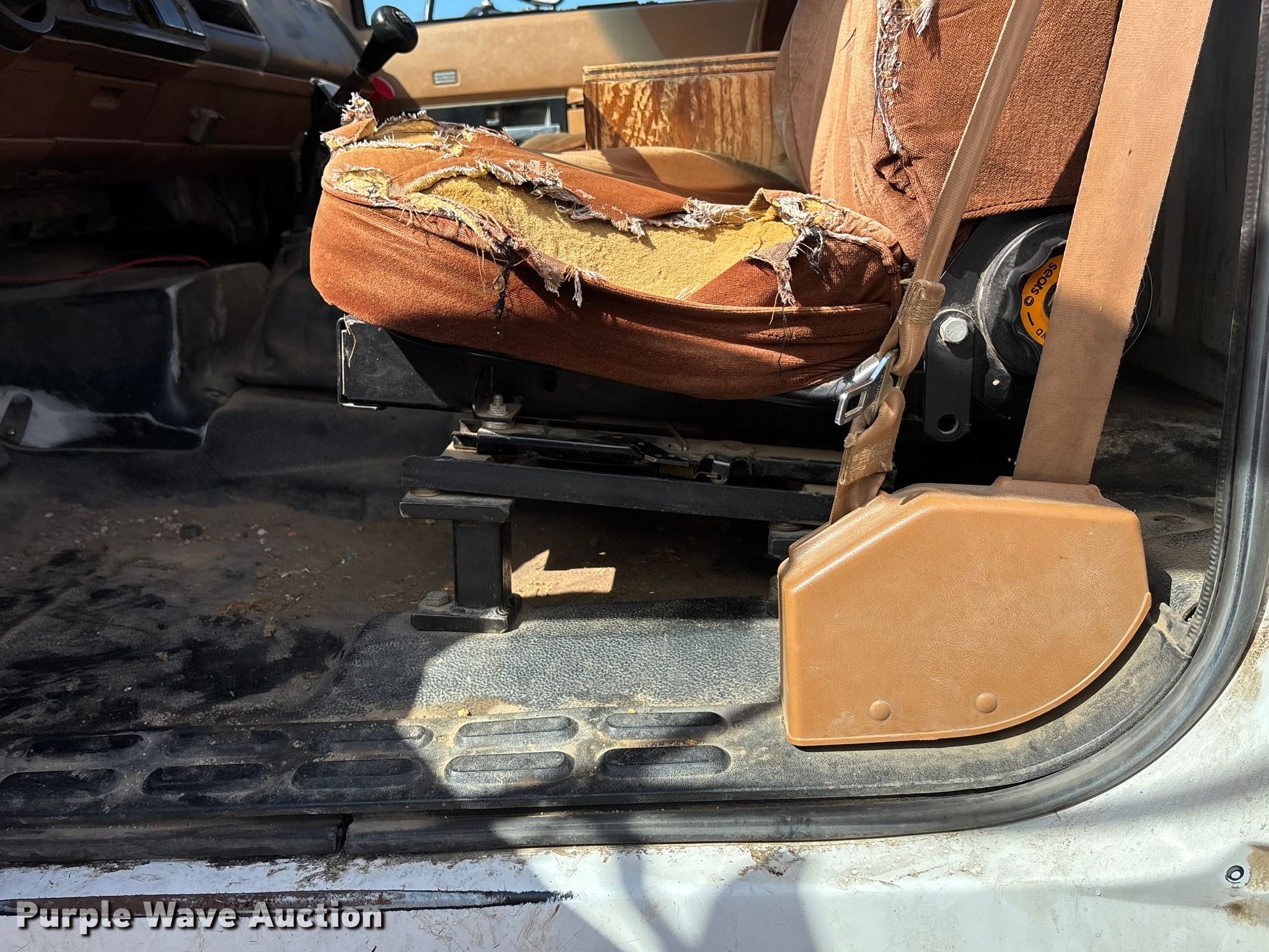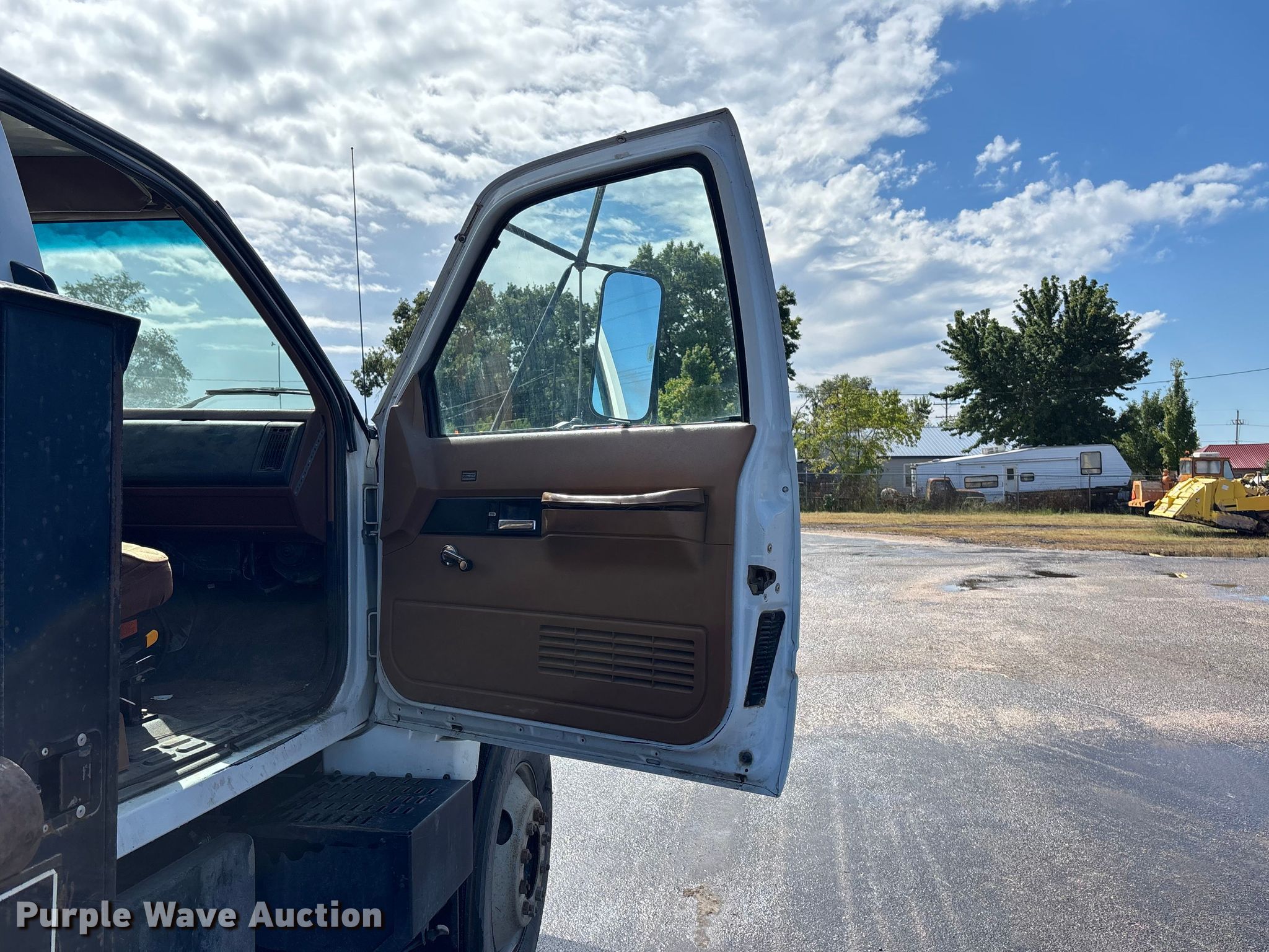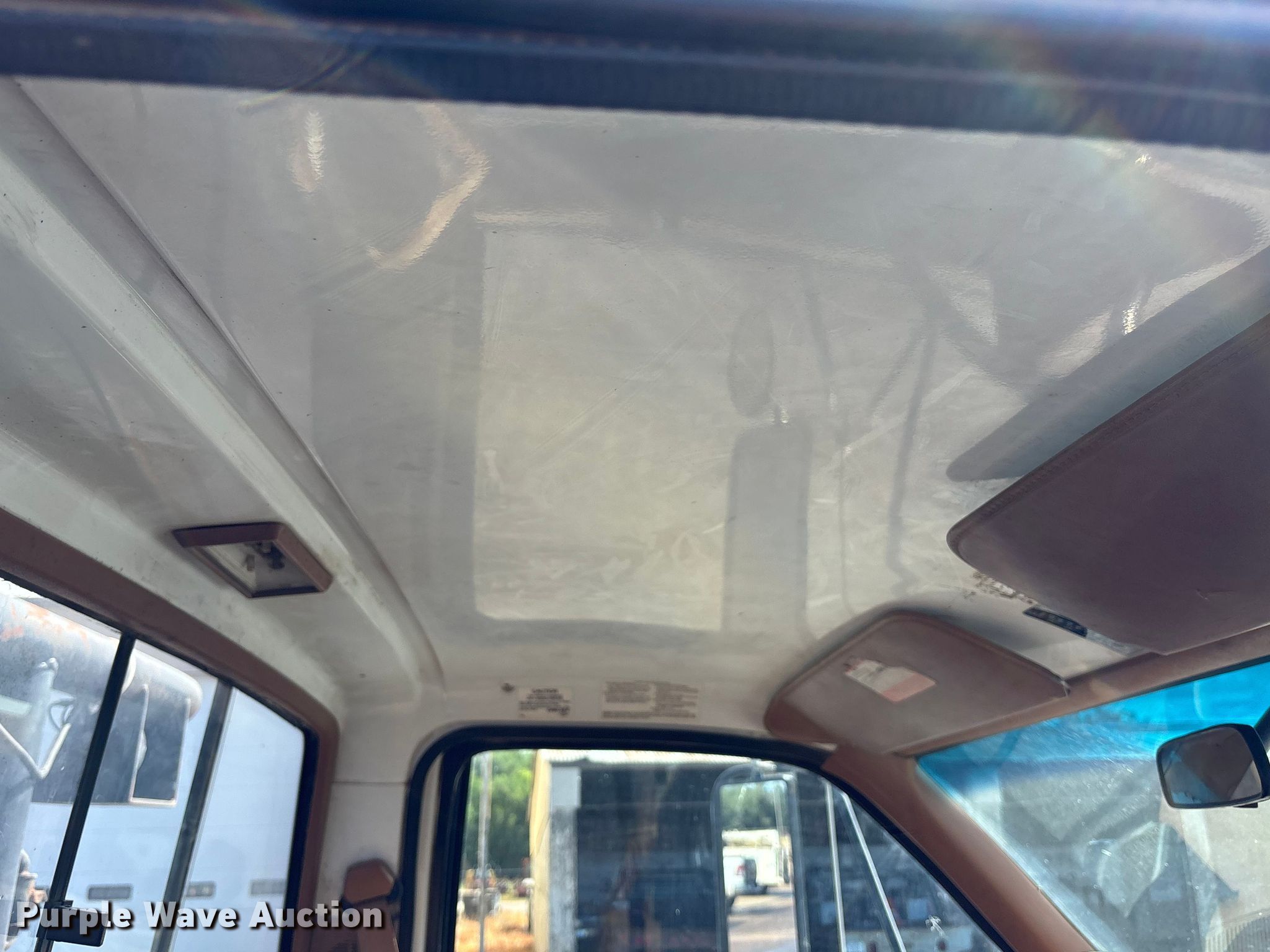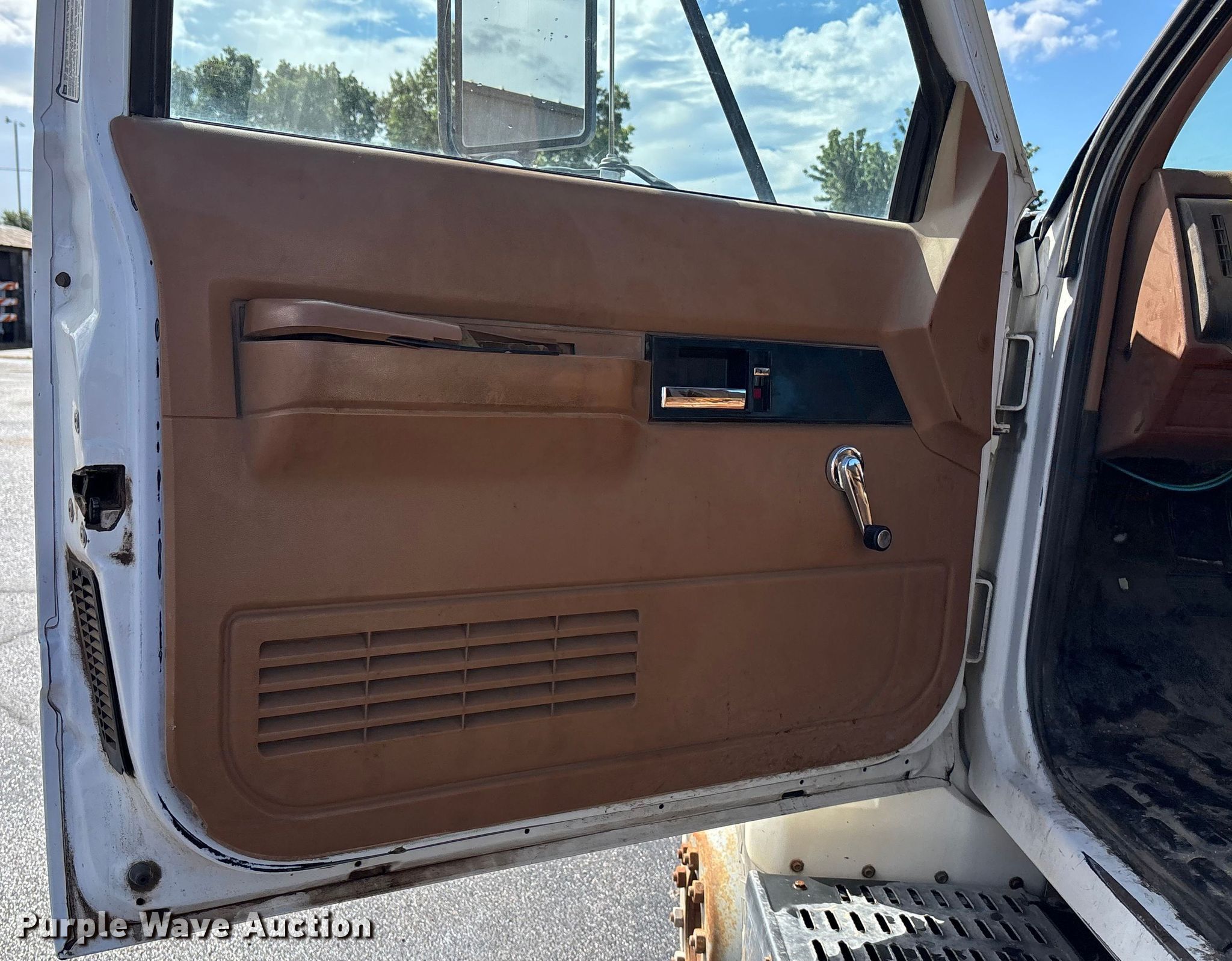 1992 CHEV Flatbed Winch Truck winch truck. Miles: 176,841 on odometer, VIN: 1GBM7H1P1NJ101027. Engine Displacement: 6.0L, Cylinders: 8, Fuel type: Gas. Transmission Manual, Speed: 10. Chassis Axles: Single, Suspension: Spring, Brakes: Air, PTO, Wheelbase: 192". Interior AC, Heat, Cruise control. Features Bed Flatbed, Length: 12' 6", Width: 8', Winch Capacity: 15,000 lbs, Rolling tailboard, Gin poles. Tires Size: 11R22.5. Kansas title. Title distribution may be delayed up to 14 days from verification of funds. Rice County Highway Department. Lyons, KS 67554