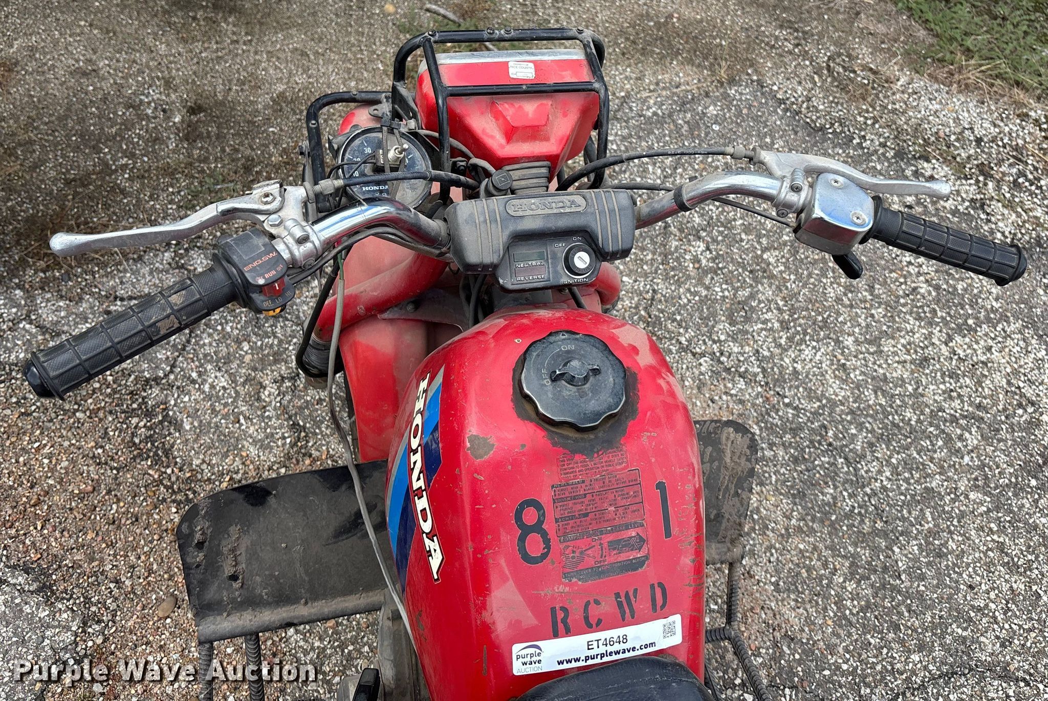 Purple Wave is selling a used ATV in Kansas. This item is a 1984 Honda All terrain ATC 200 ES ATV with the following: Miles: 3,886 on odometer, Hours: 620 on meter, Serial: JH3TB0559EC333351
