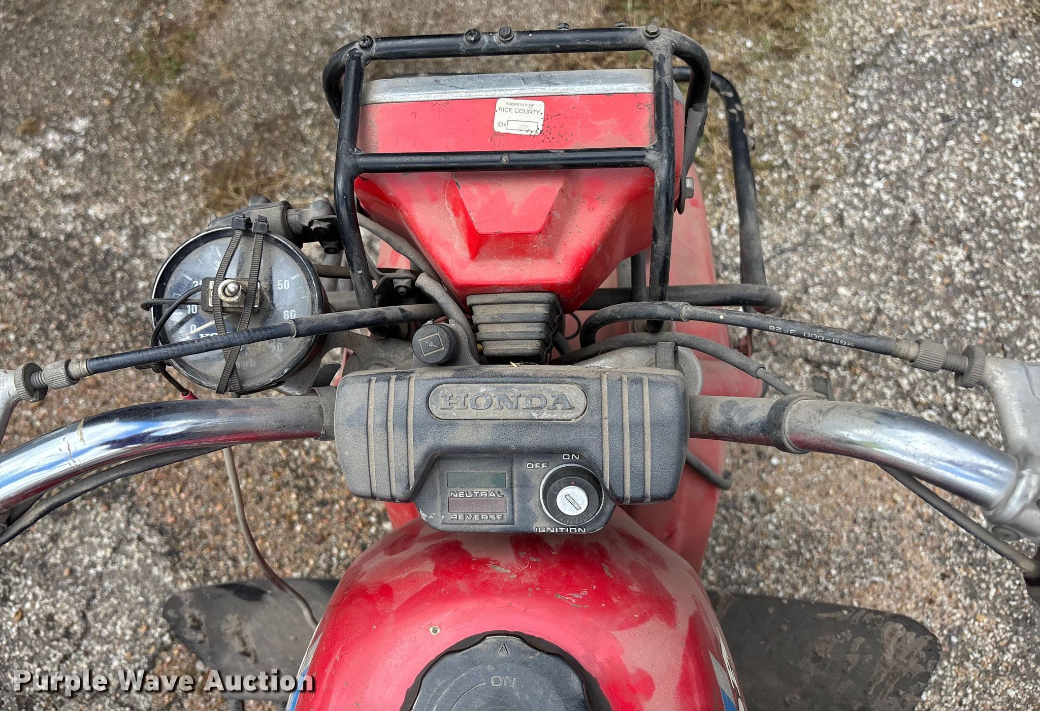 1984 Honda All terrain ATC 200 ES ATV. Miles: 3,886 on odometer, Hours: 620 on meter, Serial: JH3TB0559EC333351. Engine Honda, Cylinders: 1, Fuel type: Gas, Recoil start. Transmission Manual. Features Grille guard. Tires Size: 25x12x9. Notes Key not included, Unknown operating condition. Transfer of ownership documentation will be a bill of sale. Rice County Noxious Weed Department. Lyons, KS 67554