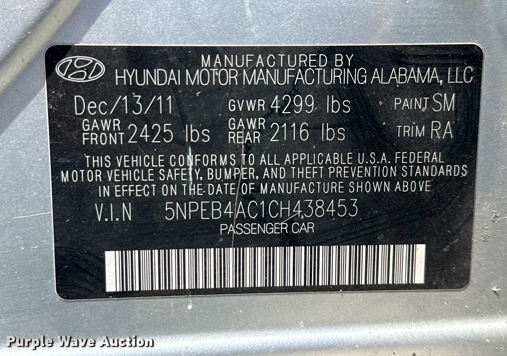 - VIN: 5NPEB4AC1CH438453