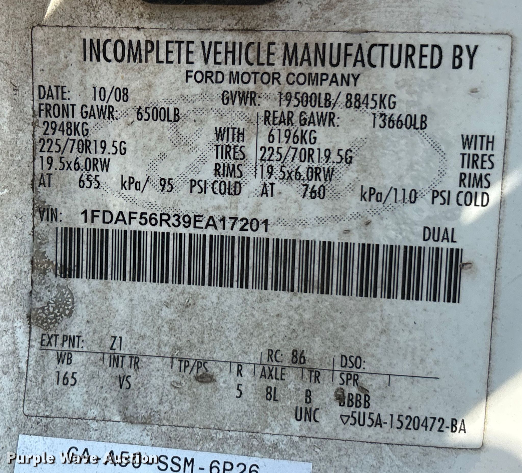 - VIN: 1FDAF56R39EA17201