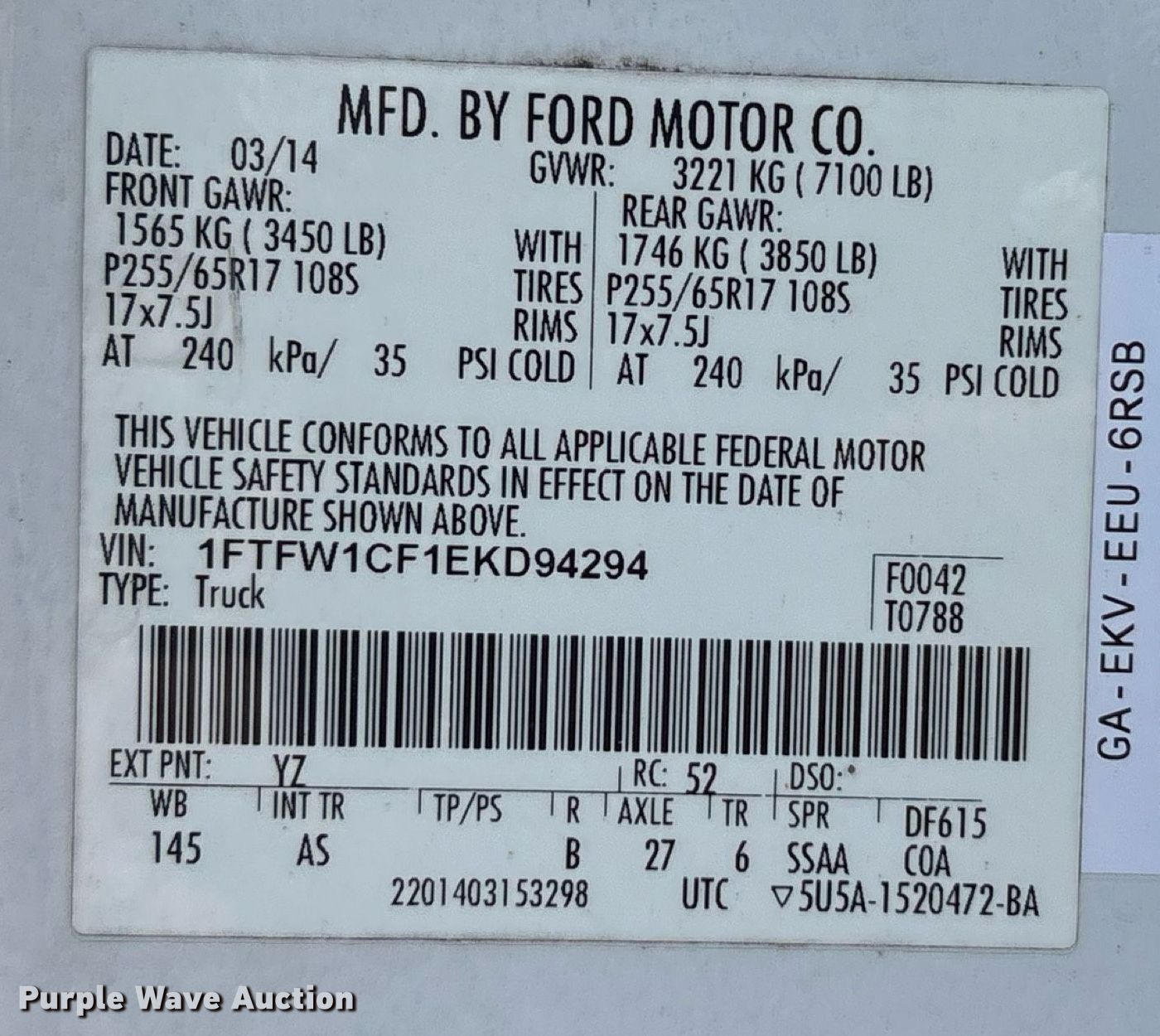 • EU0058 image for item EU0058 2014 Ford F150 SuperCrew pickup truck