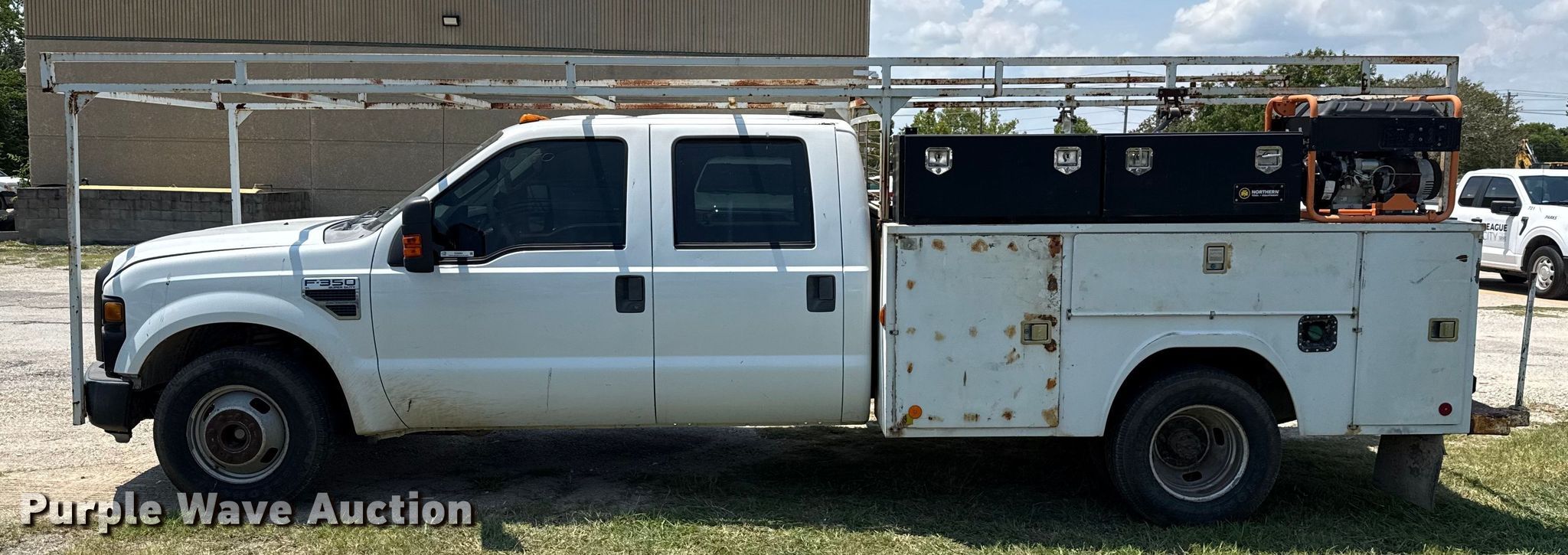 2010 Ford F350 Super Duty Crew Cab utility bed pickup truck has sold in League City, Texas for $2200. Item EU0064 sold on October 14th, 2025.
