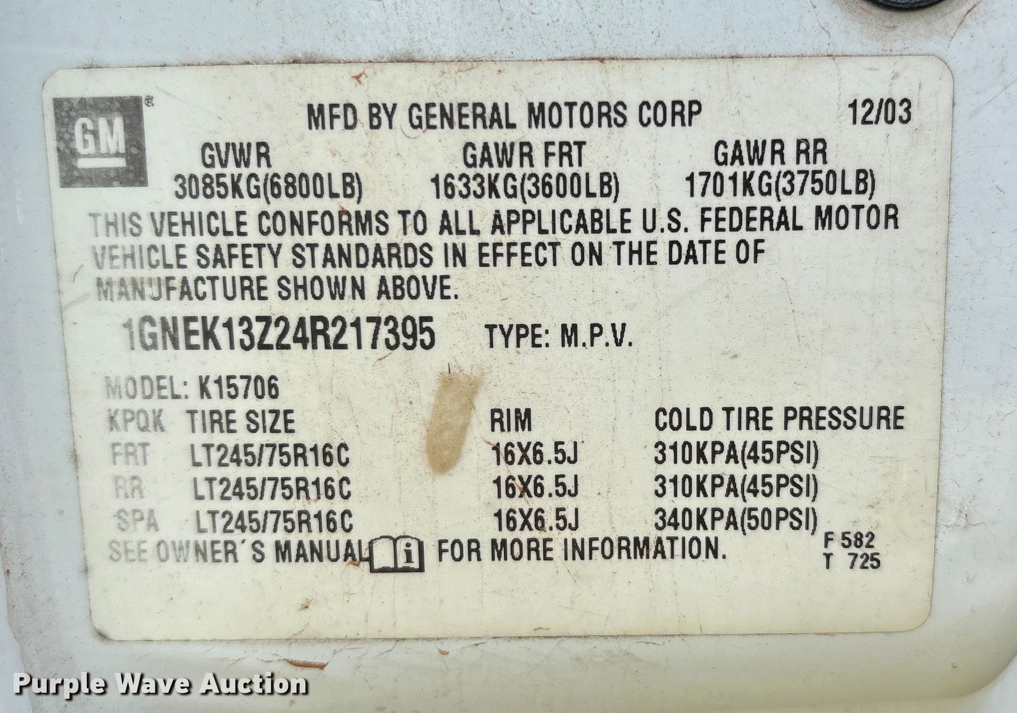 2004 Chevrolet Tahoe SUV for sale in Choctaw, Oklahoma. Item EU3675 will sell on October 14th, 2025.