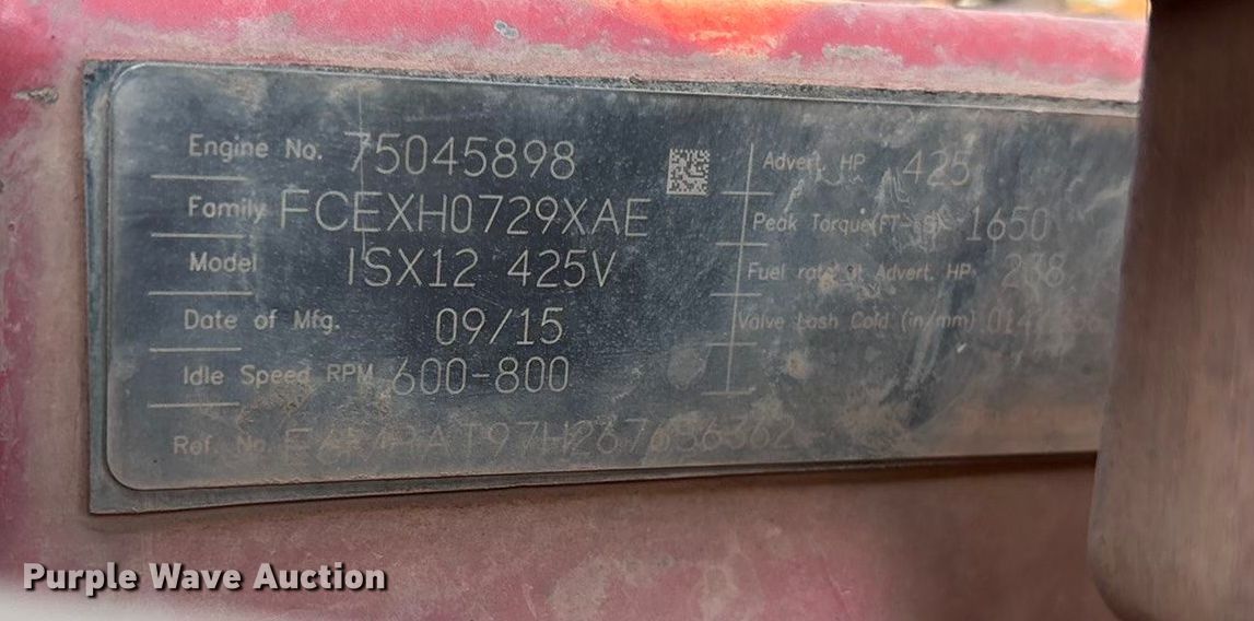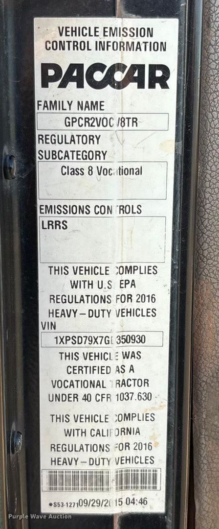 2016 Peterbilt 365 semi truck. Miles: 334,619 on odometer, Hours: 15,320 on meter, VIN: 1XPSD79X7GD350930, Unit #: 295. Engine Cummins ISX12, Displacement: 11.9L, Cylinders: 6, Fuel type: Diesel, HP: 425. Transmission Automatic. Chassis Axles: Tandem, Differential lock: Inter-axle, Suspension: Air Dump valves, Brakes: Air, GVWR: 53,200 lbs FAWR: 13,200 lbs, IAWR: 20,000 lbs, RAWR: 20,000 lbs. Interior AC, Heat, Heated mirrors, Power windows, Power locks, Cruise control, Air ride cab. Features Deck plate: Aluminum, Fifth wheel type: Air operated, Sliding, Fuel tank: Single. Tires Size: 11R22.5. Notes Dash warning indicator: ABS, Traction control, Jump start required during on-site data collection. Oklahoma title. Title distribution may be delayed up to 14 days from verification of funds. City of Norman - Open inspection October 10th from 8:00 a.m. to 1:00 p.m.. Norman, OK 73069