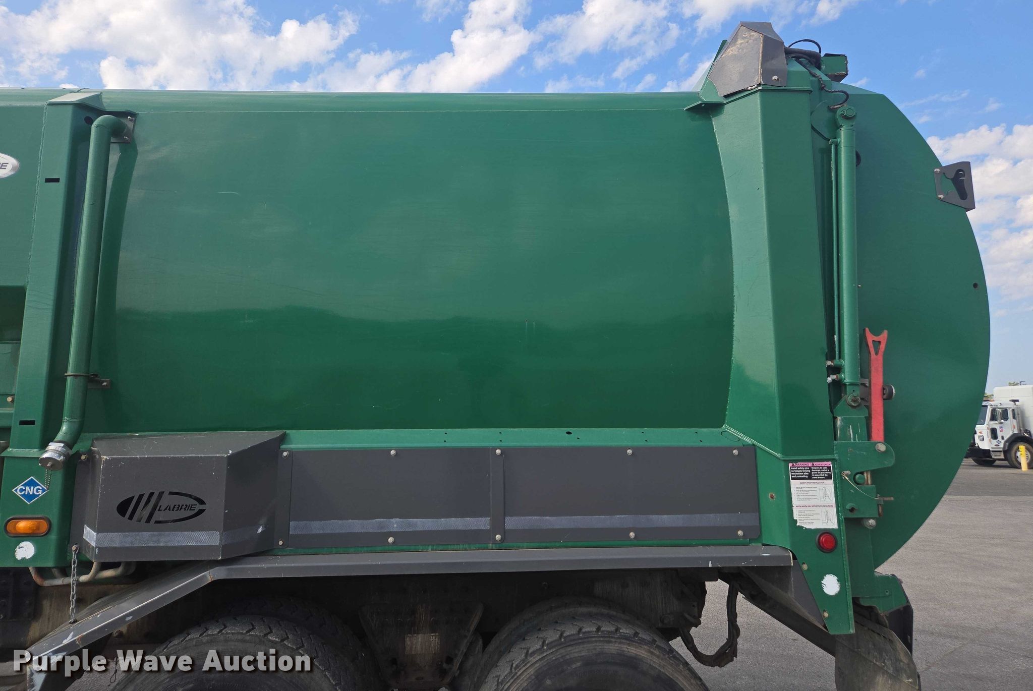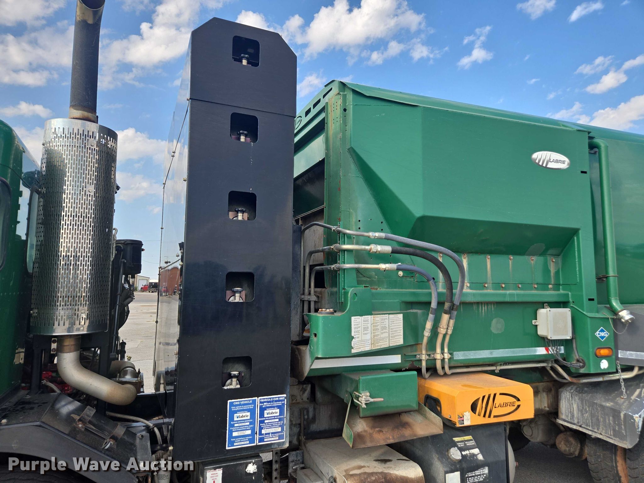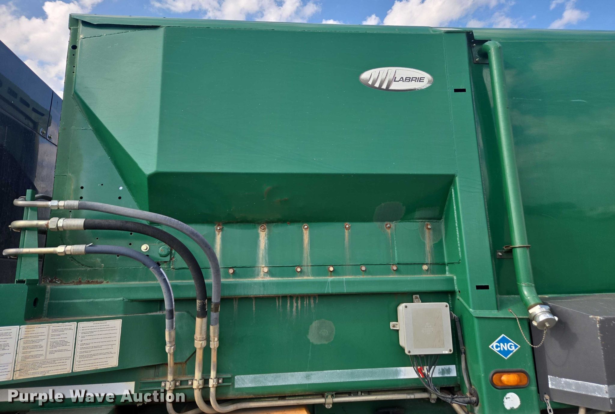 2015 Peterbilt 320 refuse truck. Miles: 131,187 on odometer, Hours: 17,638 on meter, VIN: 3BPZL20X9FF100065. Engine Cummins ISL G, Displacement: 10.0L, Cylinders: 6, Fuel type: CNG. Transmission Automatic. Chassis Double frame, Axles: Tandem, Suspension: Spring over walking beam, Brakes: Air, GVWR: 60,000 lbs. Interior AC, Heat, Heated mirrors, Power windows, Cruise control. Features Refuse bed Labrie, Load: Side, Cart tipper. Tires Front: 315/80R22.5, Rear: 11R22.5. Notes Dash warning indicator: Check engine, ABS, Traction control, Windshield chipped or cracked, Jump start required during on-site data collection, Hydraulic pump missing, Unknown operating condition of bed. Oklahoma title. Title distribution may be delayed up to 14 days from verification of funds. City of Norman - Open inspection October 10th from 8:00 a.m. to 1:00 p.m.. Norman, OK 73069