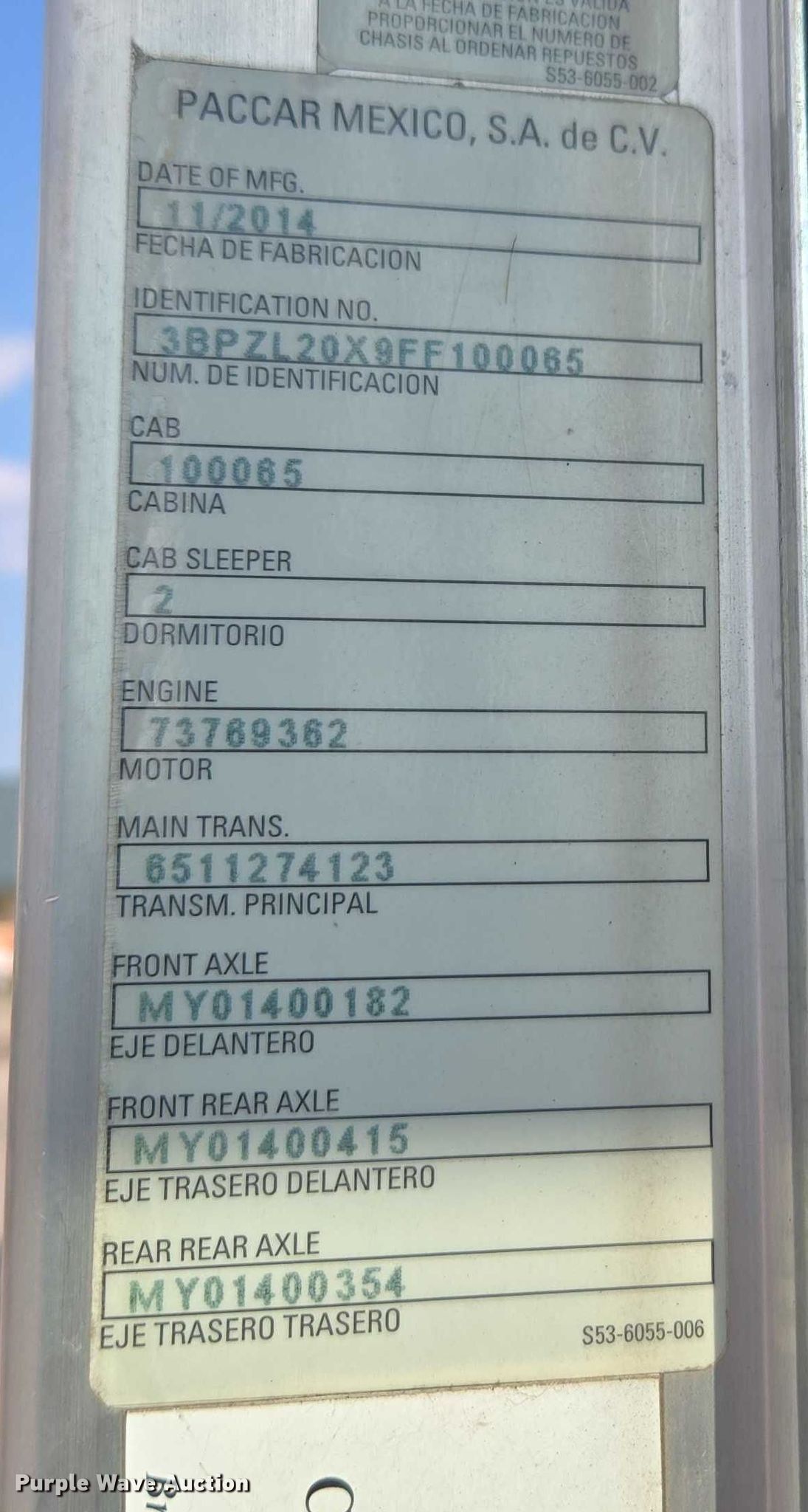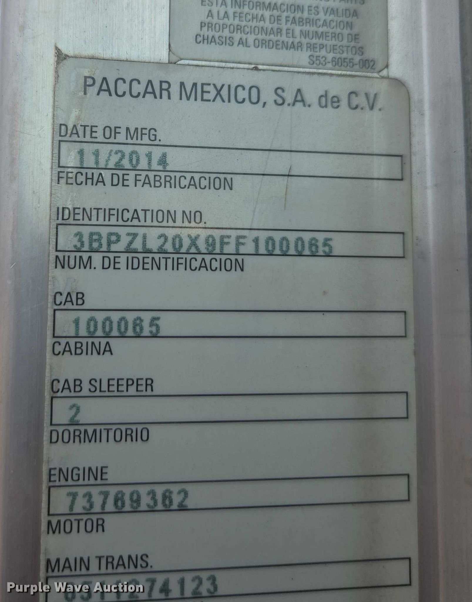 - VIN: 3BPZL20X9FF100065
