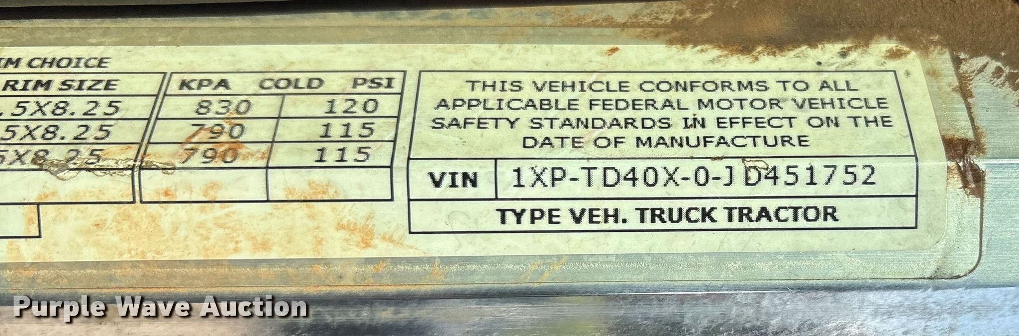 Purple Wave is selling a used Truck Tractor in Oklahoma. This item is a 2018 Peterbilt 367 semi truck with the following: Miles: 258,141 on odometer, Hours: 11,795 on meter, VIN: 1XPTD40X0JD451752, Unit #: 297