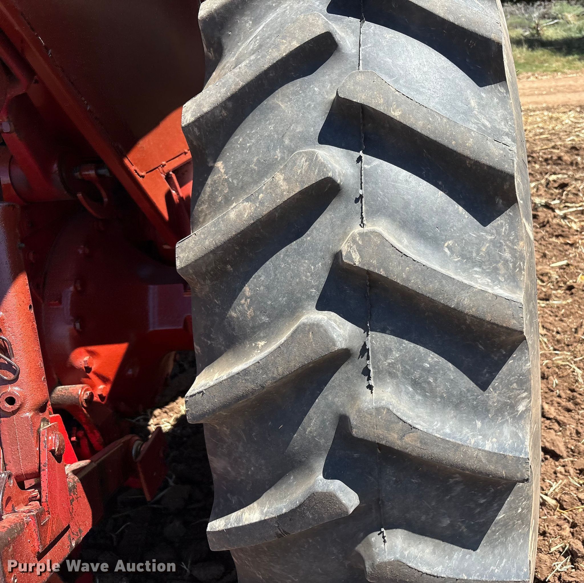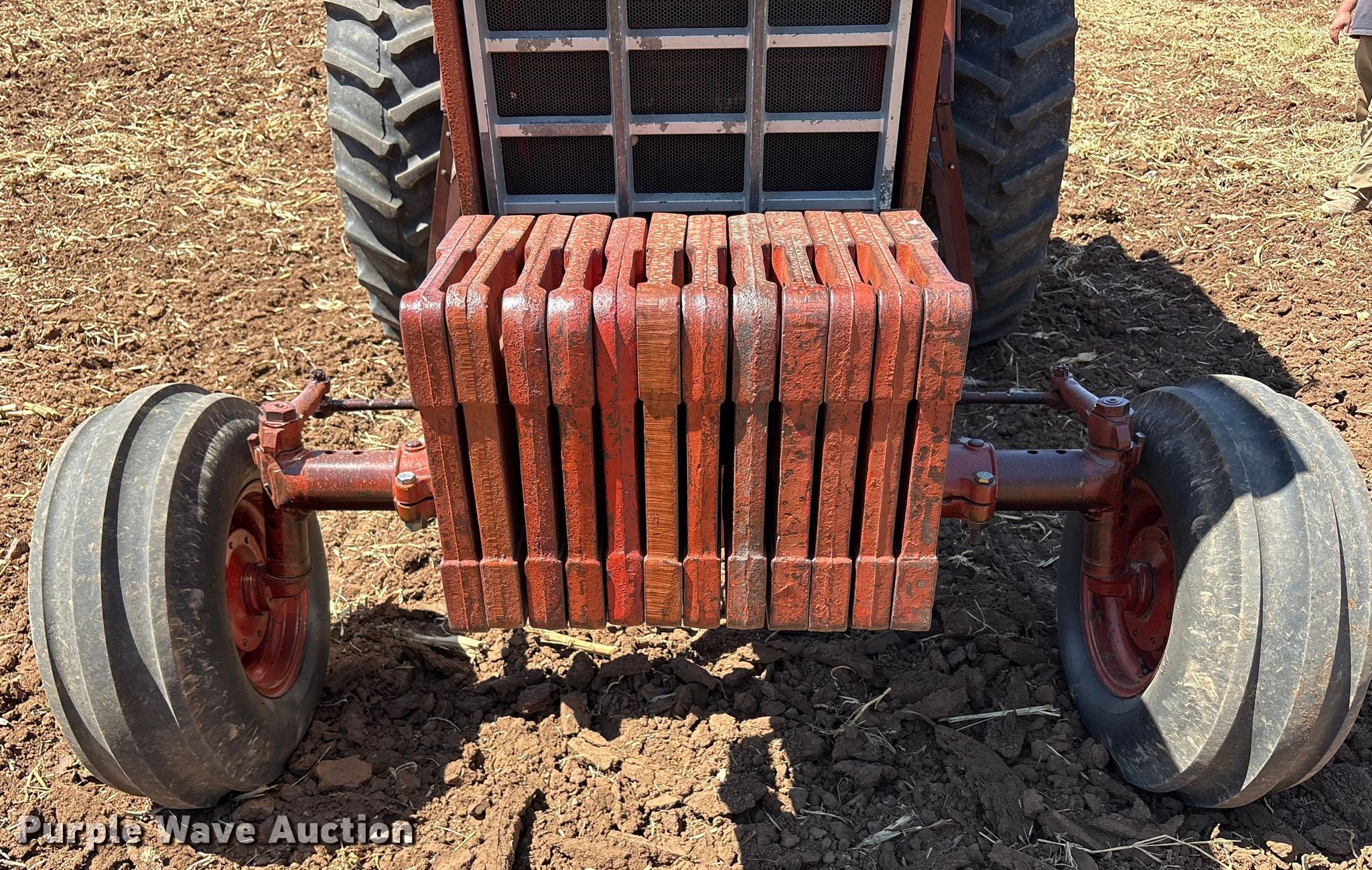 1975 International Harvester F1066 tractor. Hours: 4,262 on meter, Miles or hours may vary, unit still in use, Serial: 2610175U050281. Engine International Harvester, Cylinders: 6, Fuel type: Diesel. Transmission Manual, 8F - 4R. Operators station AC, Heat. Features PTO: 540, 1000, Three point Top link, Hydraulic remote sets Rear: 2, Suitcase weights: 12. Tires Front: 11L-15, Rear: 18.4-38, Wheel weights: 6. Shallowater, TX 79363
